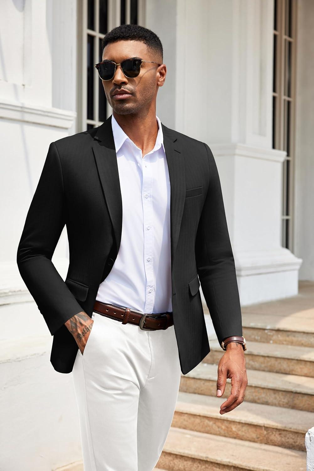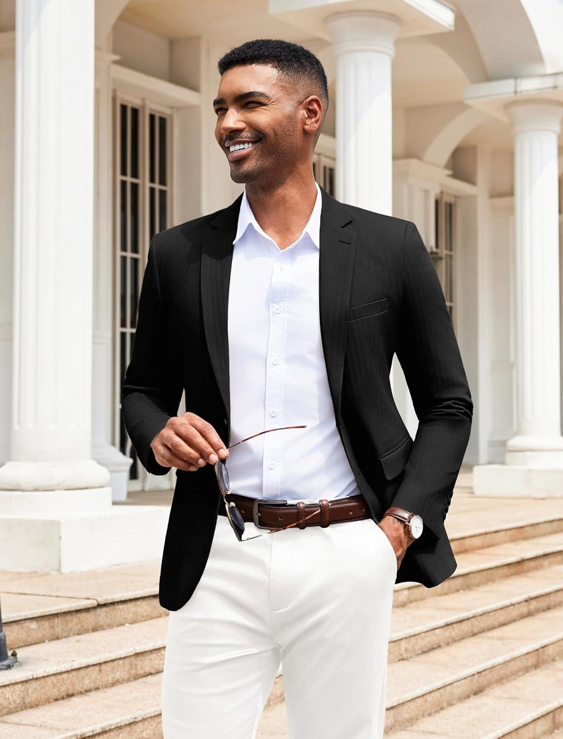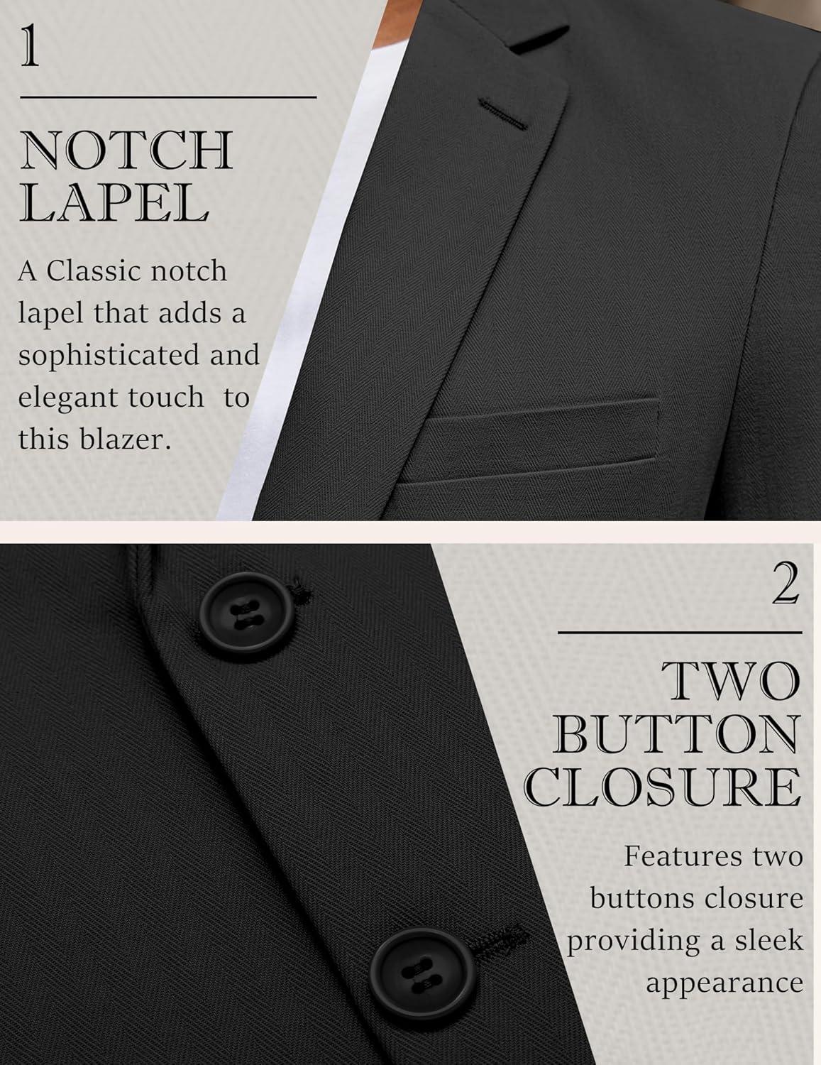 COOFANDY Men's Herringbone Blazer Slim Fit Cotton Sport Coats Two Buttons Casual Suit Jacket(Black)