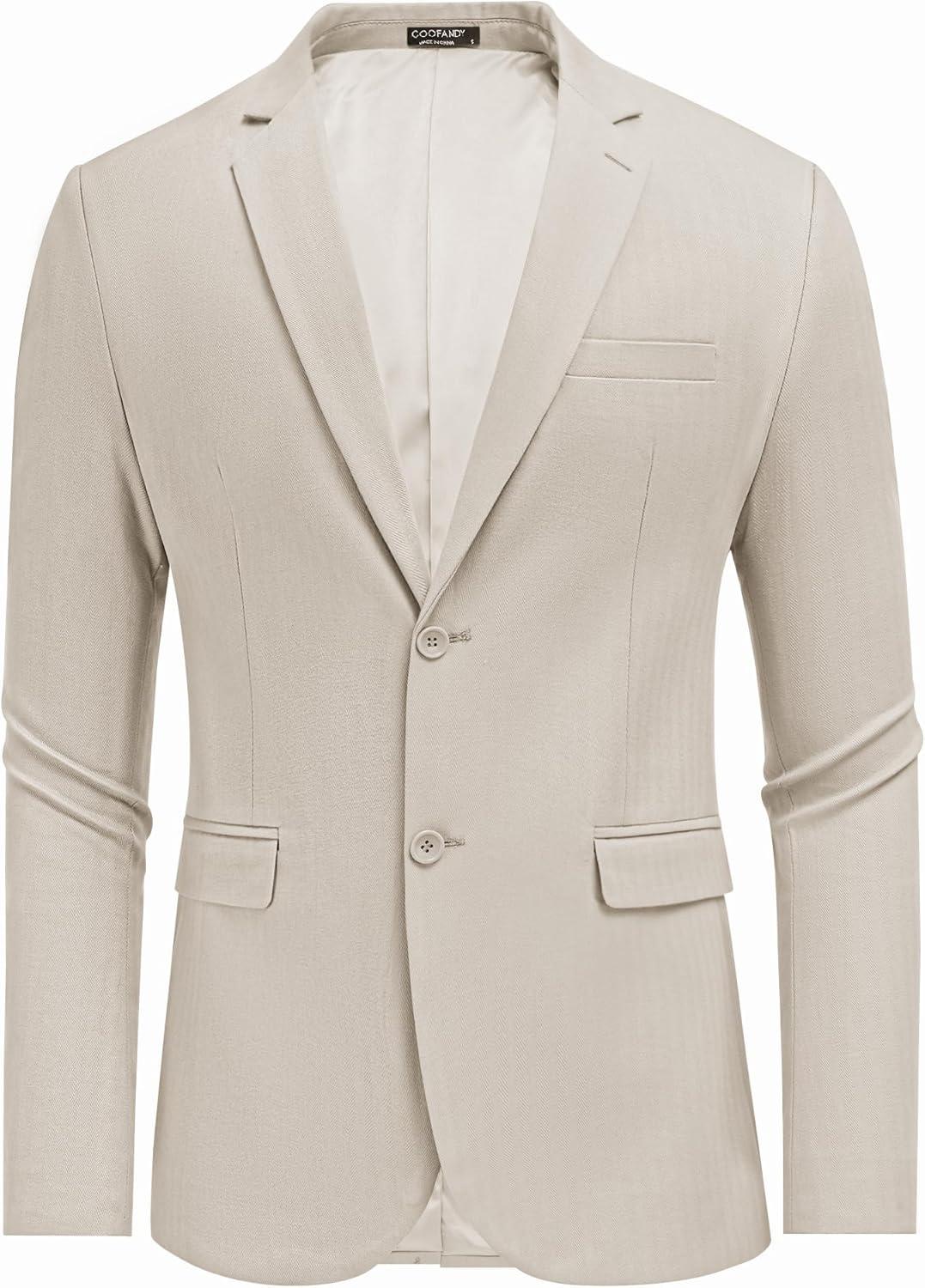 COOFANDY Men's Herringbone Blazer Slim Fit Cotton Sport Coats Two Buttons Casual Suit Jacket(Light Khaki)