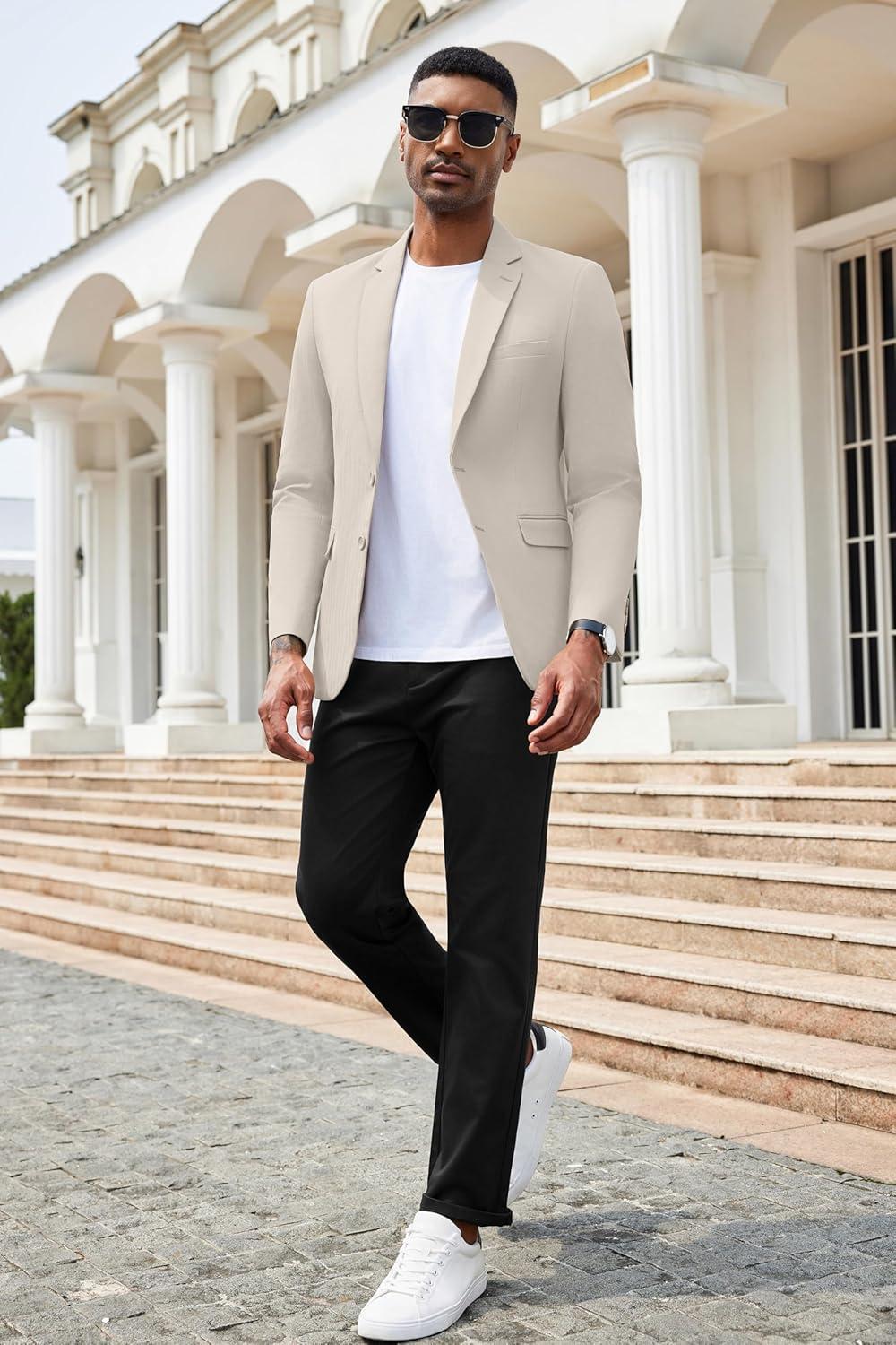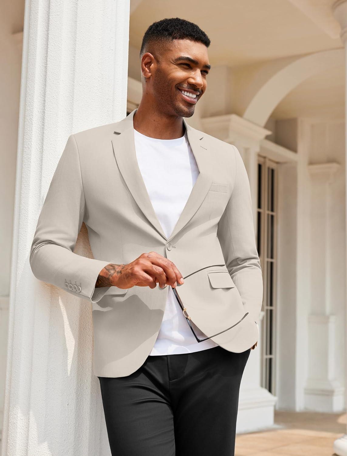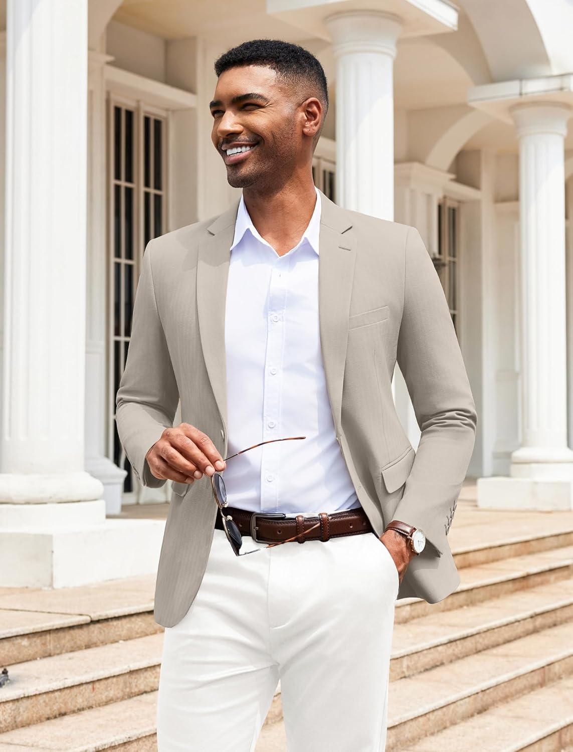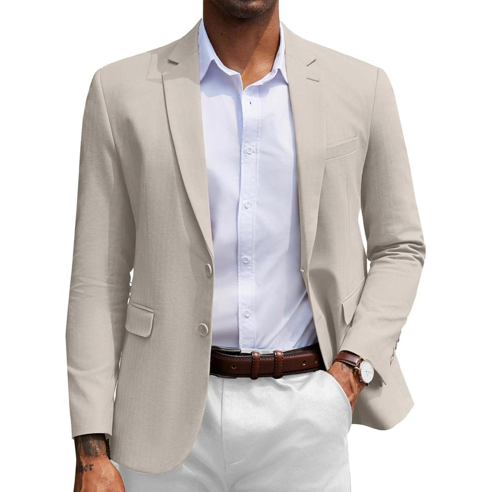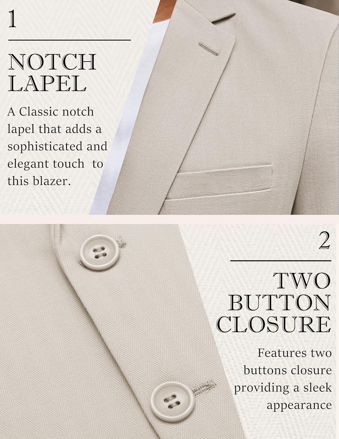 COOFANDY Men’s Herringbone Blazer Slim Fit Cotton Sport Coats Two Buttons Casual Suit Jacket(Light Khaki)