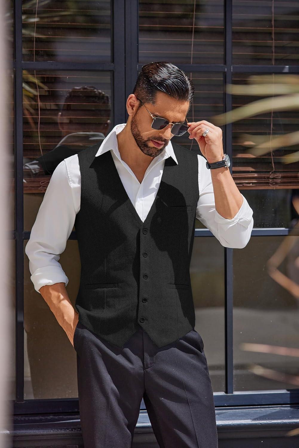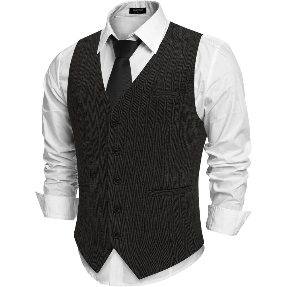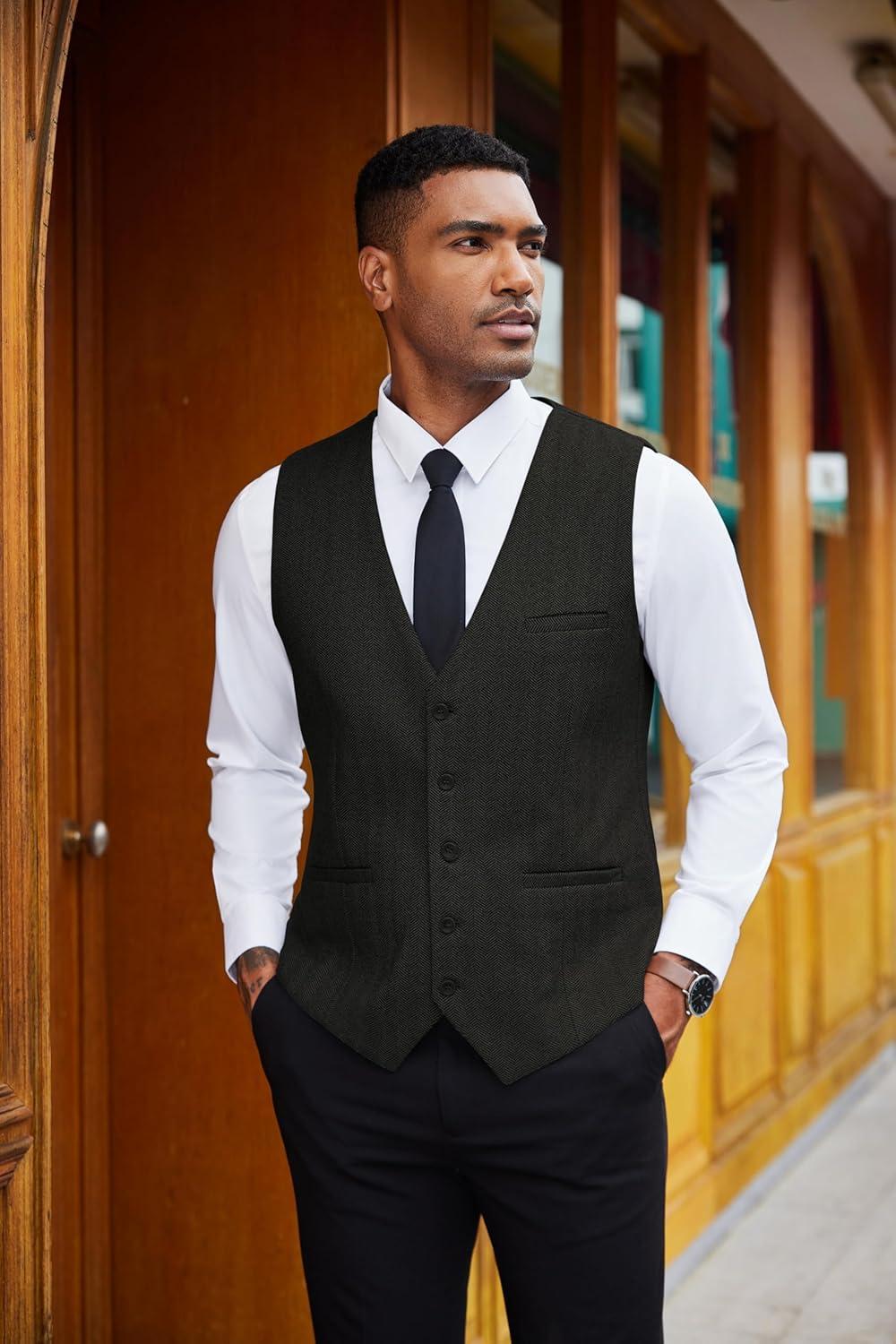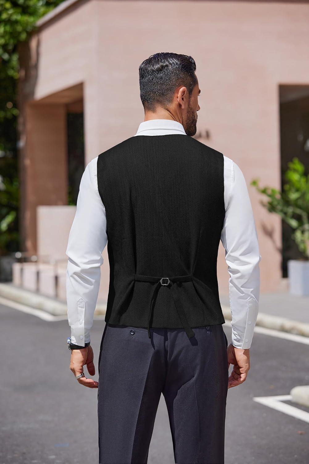 COOFANDY Men's Herringbone Tweed Suit Vests Slim Fit Waistcoat Casual Business Dress Vest(Black)