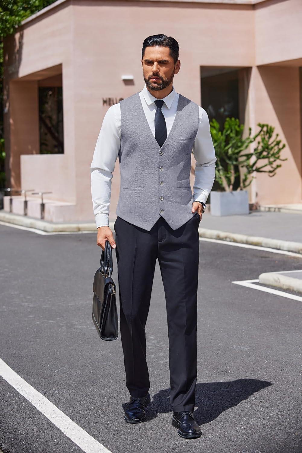 COOFANDY Mens Dress Vest Casual Business Waistcoat Formal Wedding 3 Button Suit Vest(Light Grey)