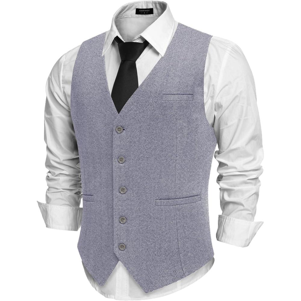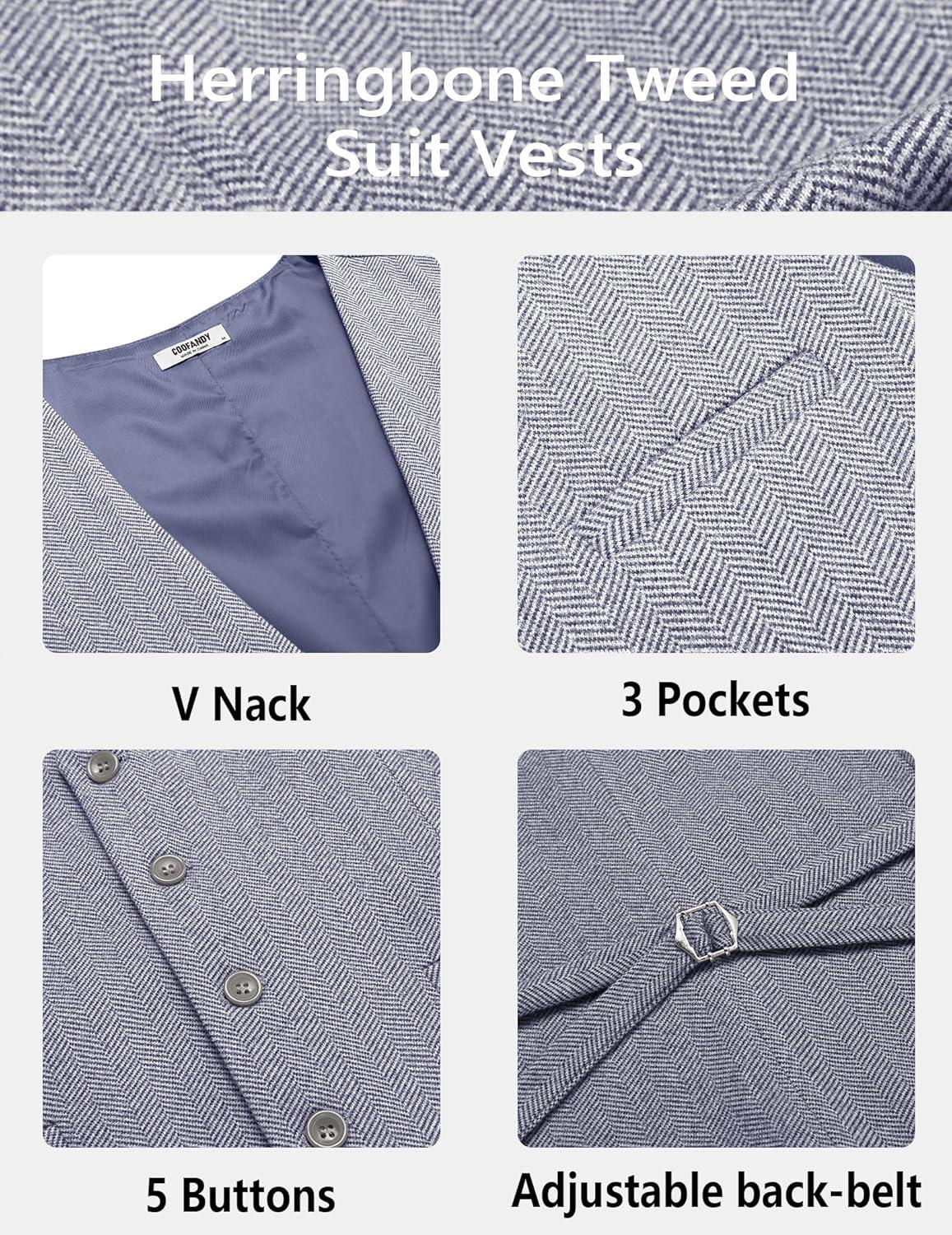 COOFANDY Men's Herringbone Tweed Suit Vests Slim Fit Waistcoat Casual Business Dress Vest(Blue)