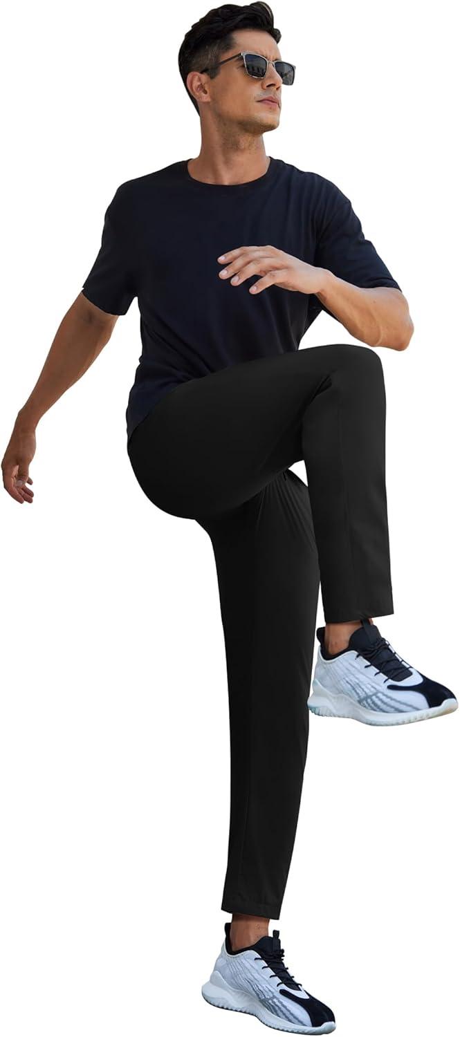 COOFANDY Men's Hiking Pants Lightweight Athletic Pants Quick Dry Active Running Joggers with Zipper Pockets(Black)
