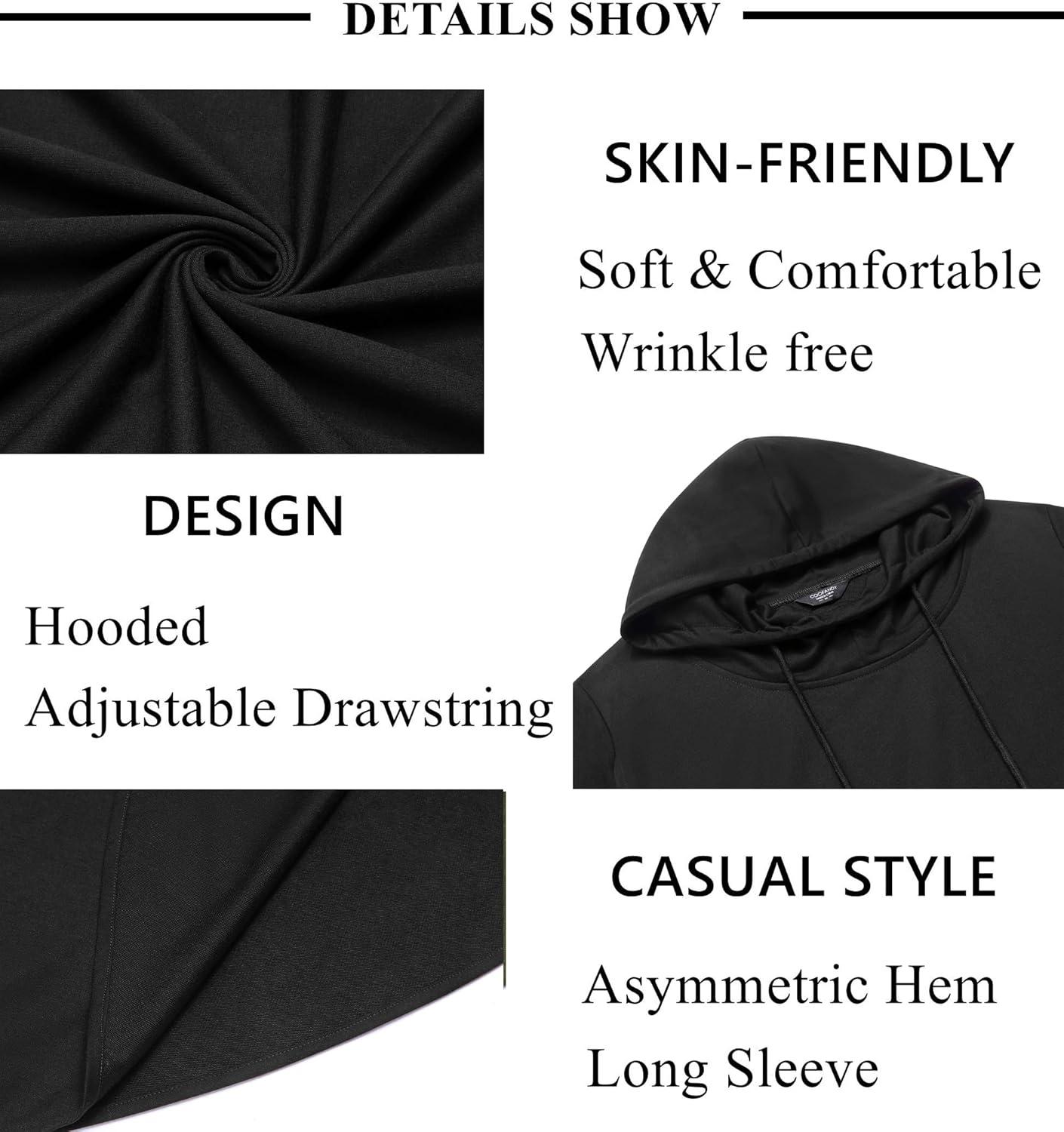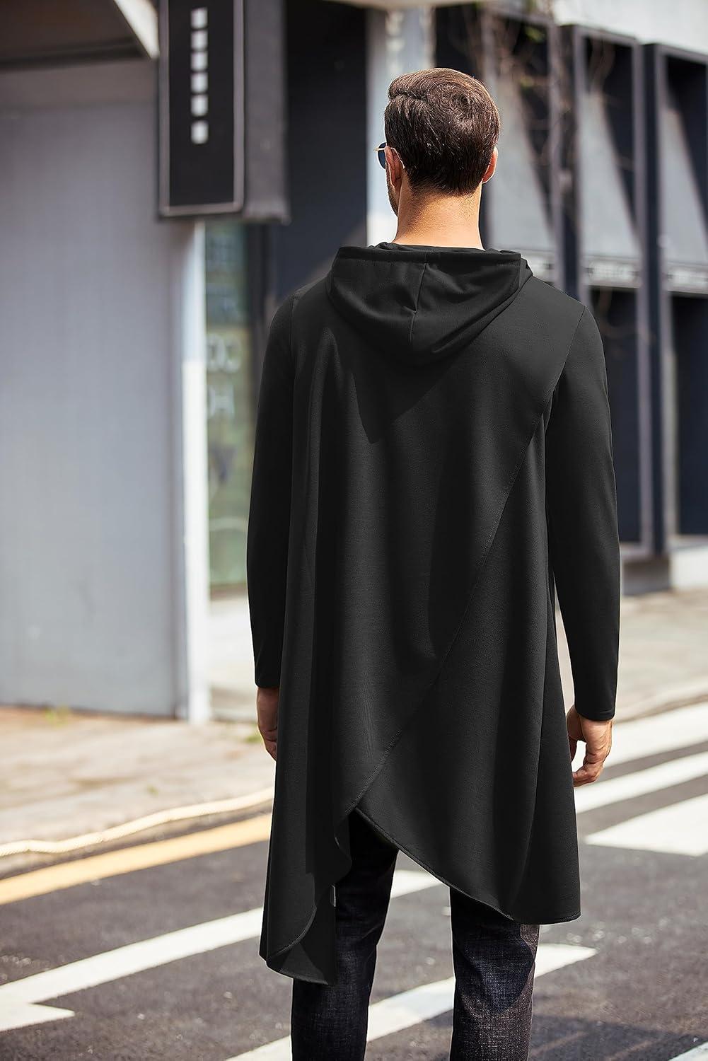 COOFANDY Men's Hooded Poncho Cape Cloak Casual Asymmetric Hem Hoodie Sweatshirts(Black)