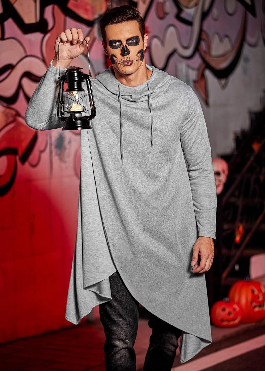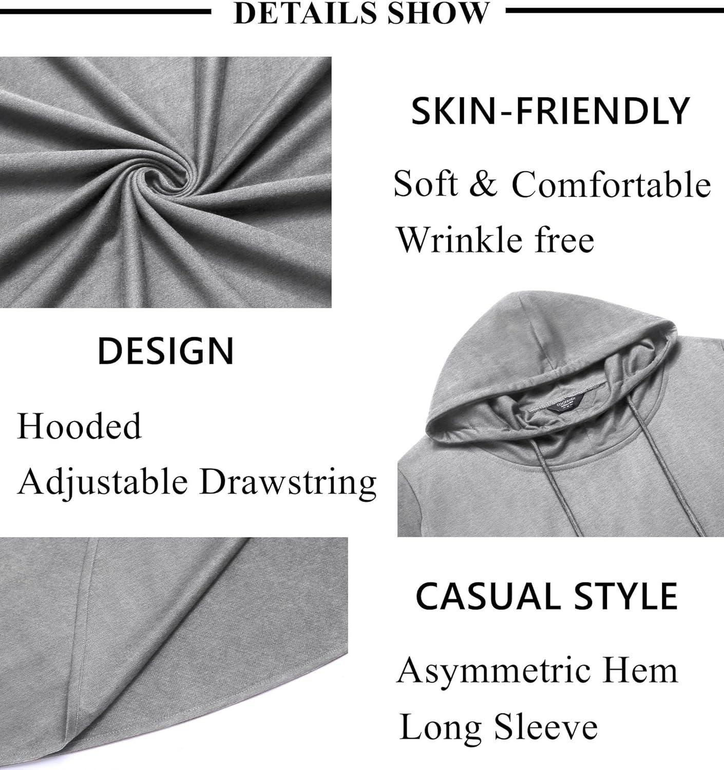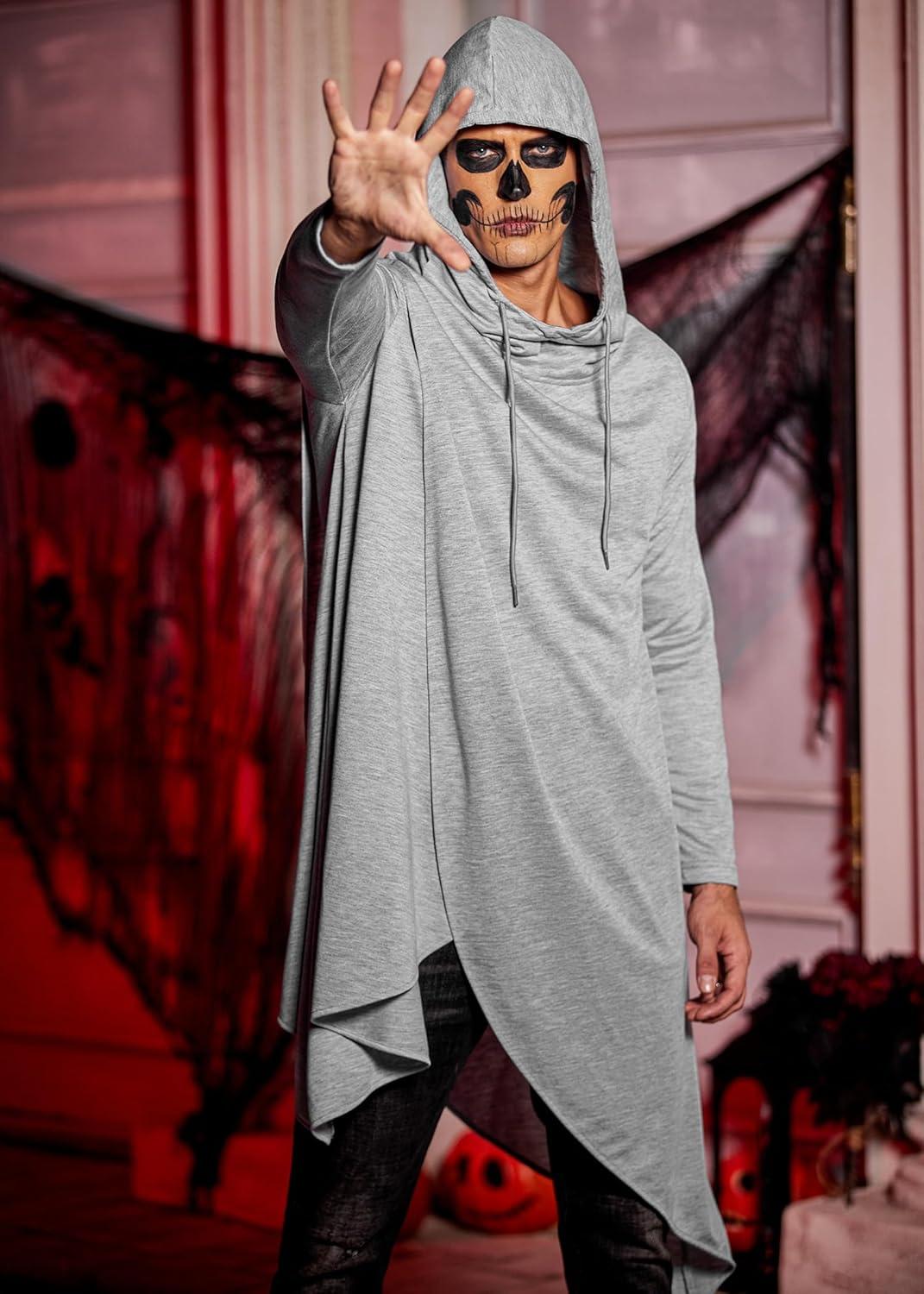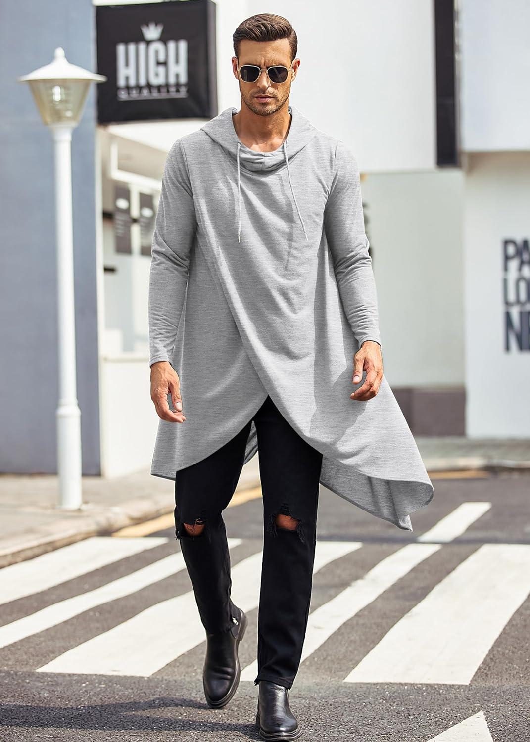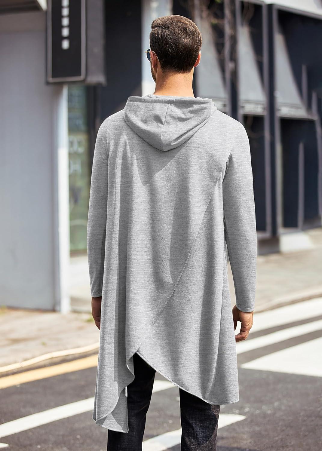 COOFANDY Men's Hooded Poncho Cape Cloak Casual Asymmetric Hem Hoodie Sweatshirts(Gray)