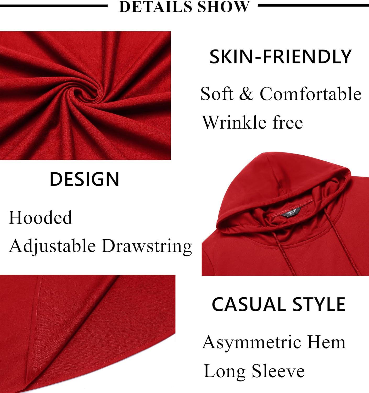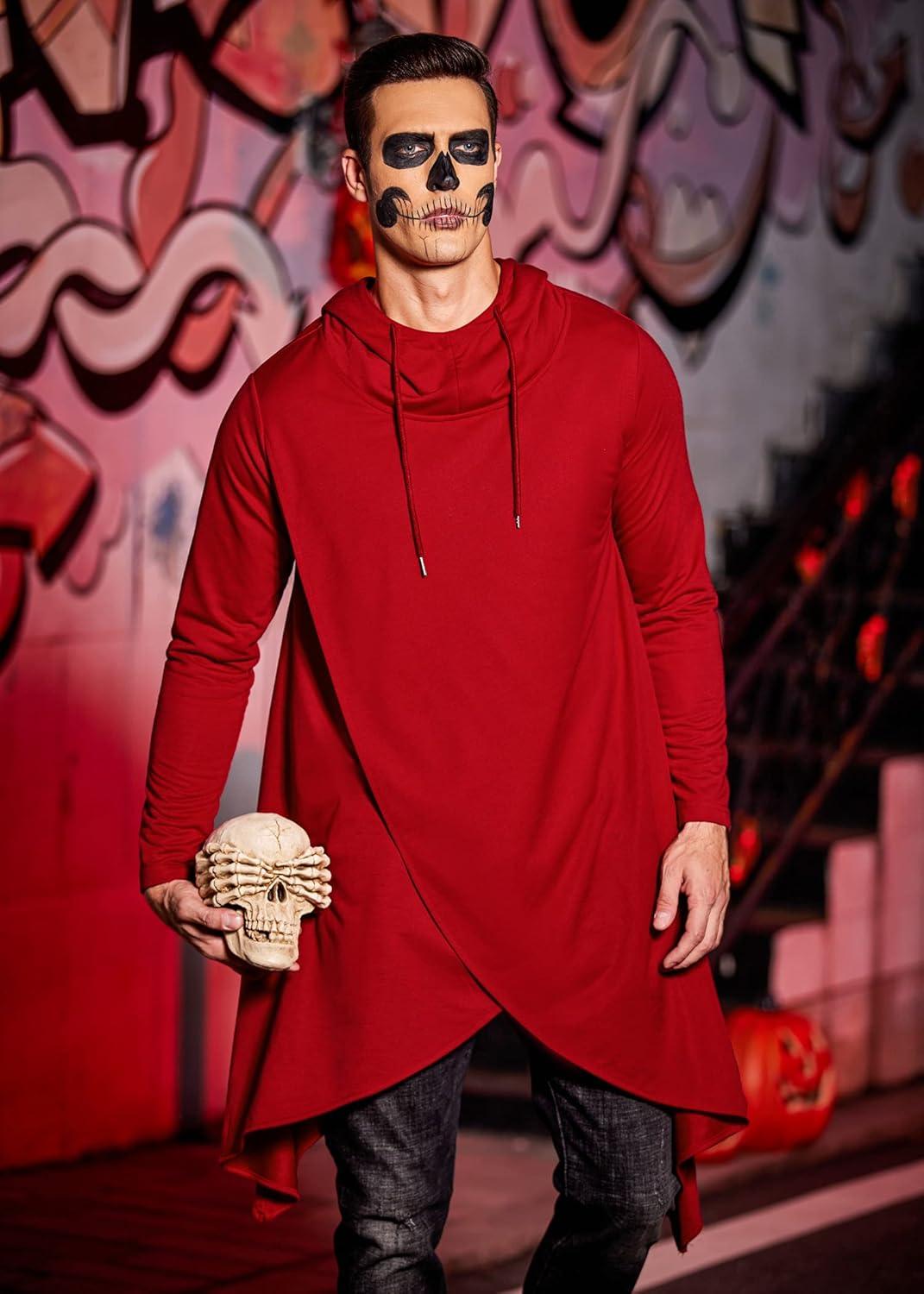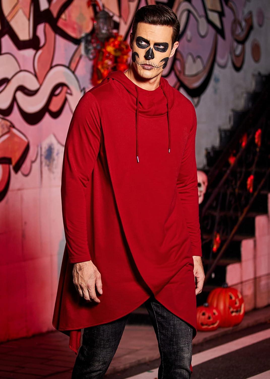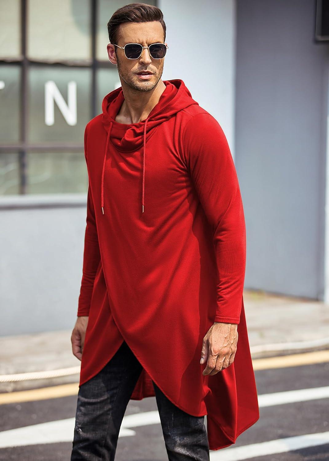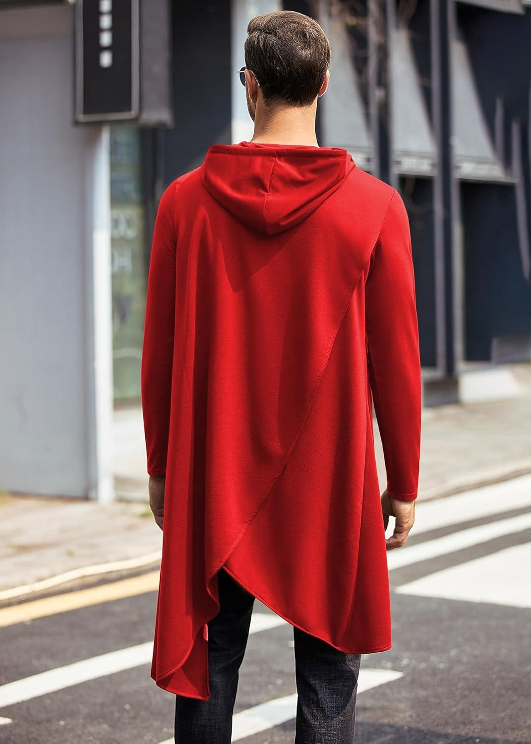 COOFANDY Men's Hooded Poncho Cape Cloak Casual Asymmetric Hem Hoodie Sweatshirts(Red)