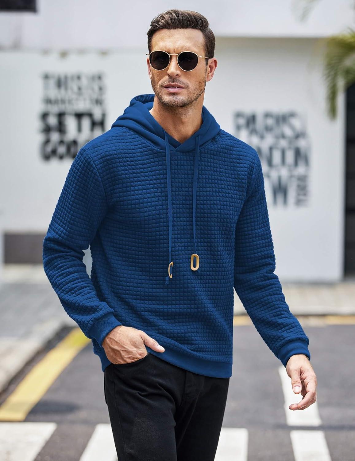 COOFANDY Mens Hooded Sweatshirt Casual Long Sleeve Drawstring Waffle Knit Pullover Hoodies(Blue)
