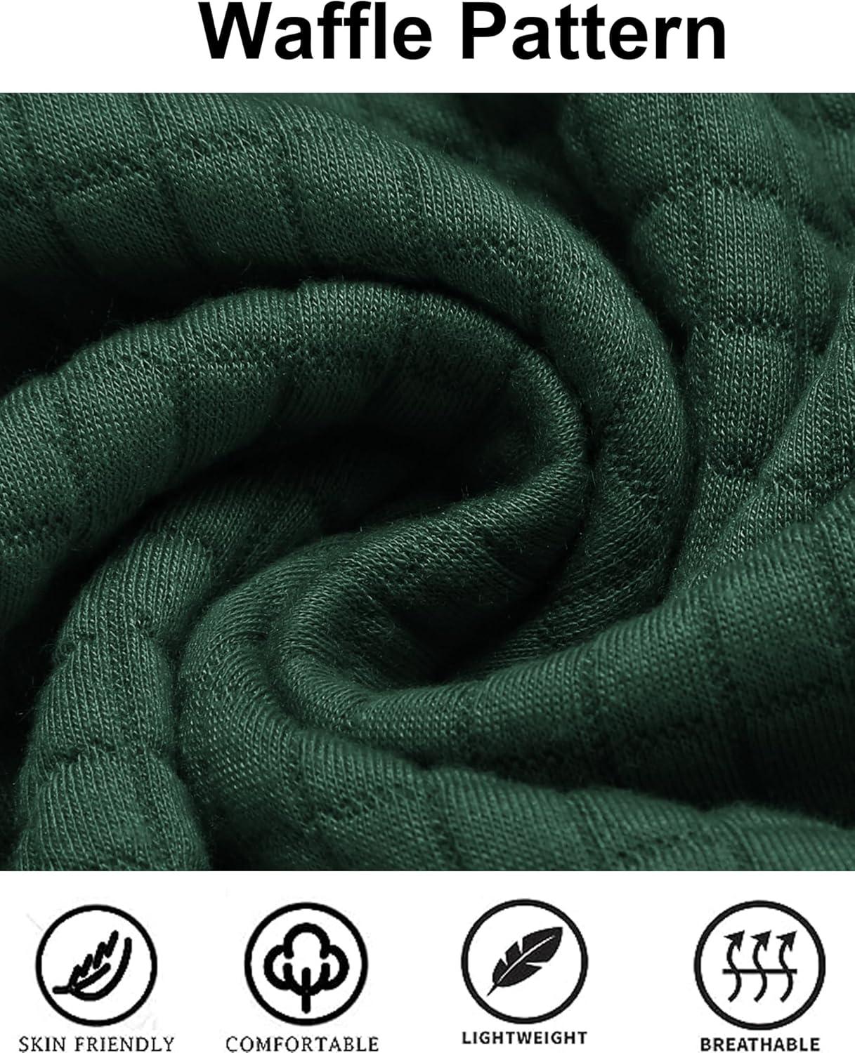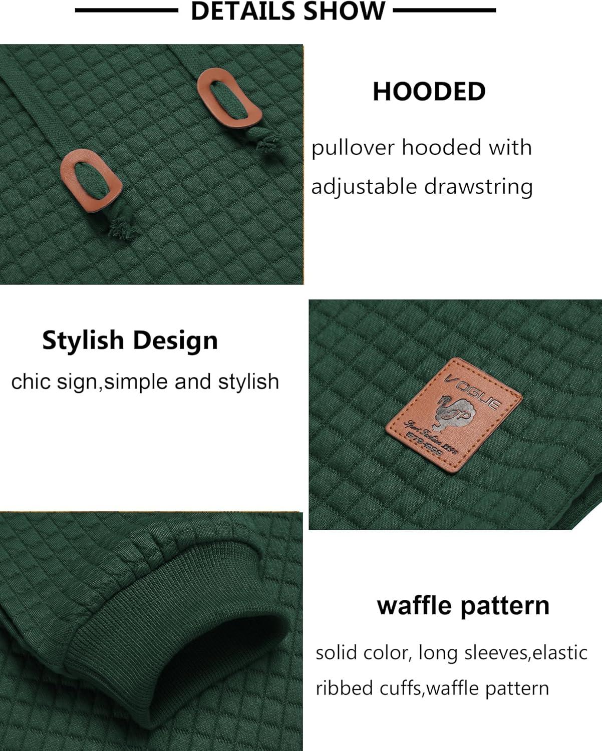 COOFANDY Mens Hooded Sweatshirt Casual Long Sleeve Drawstring Waffle Knit Pullover Hoodies(Green)
