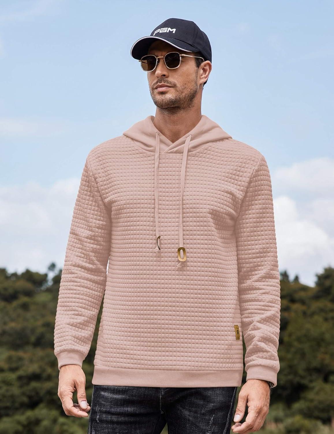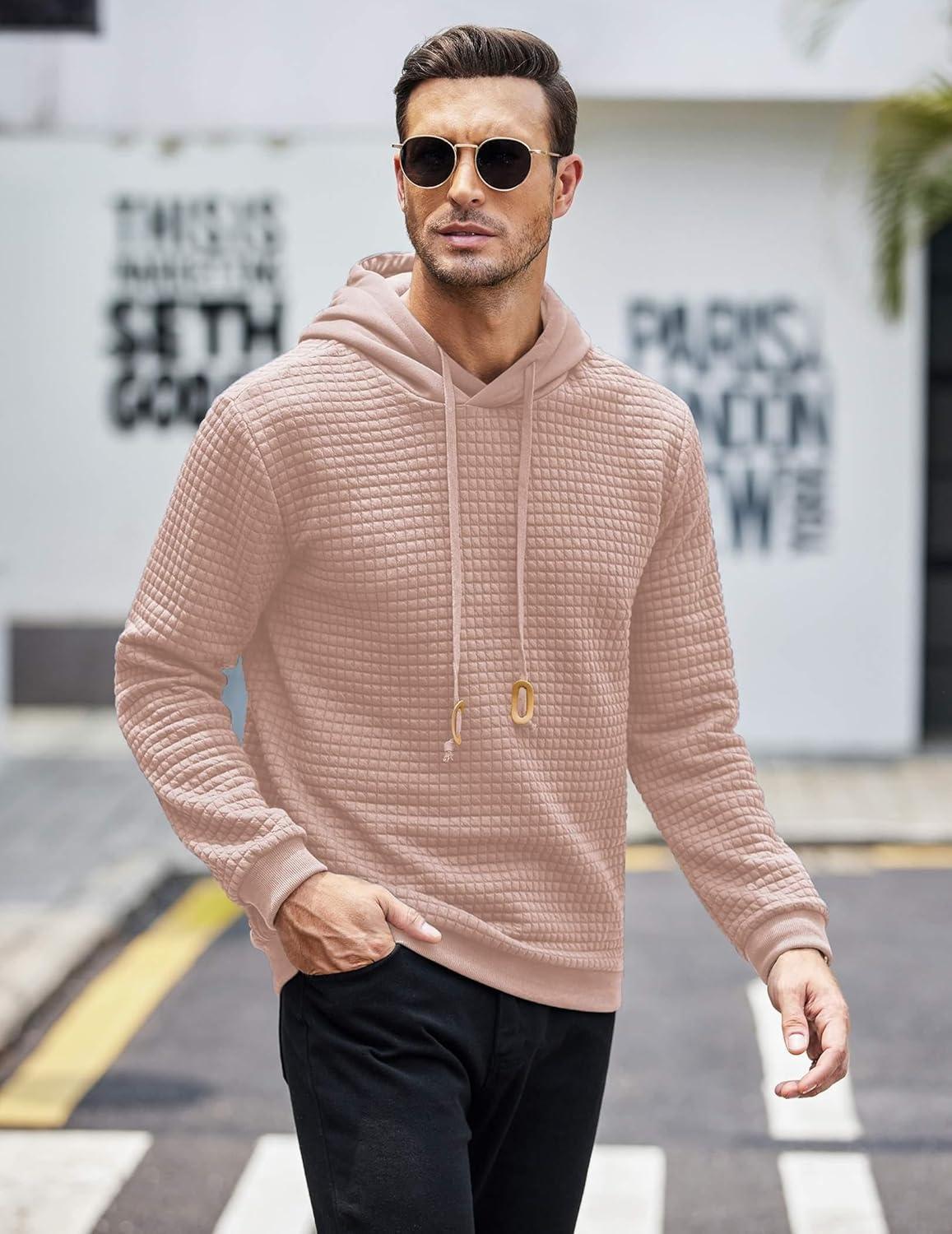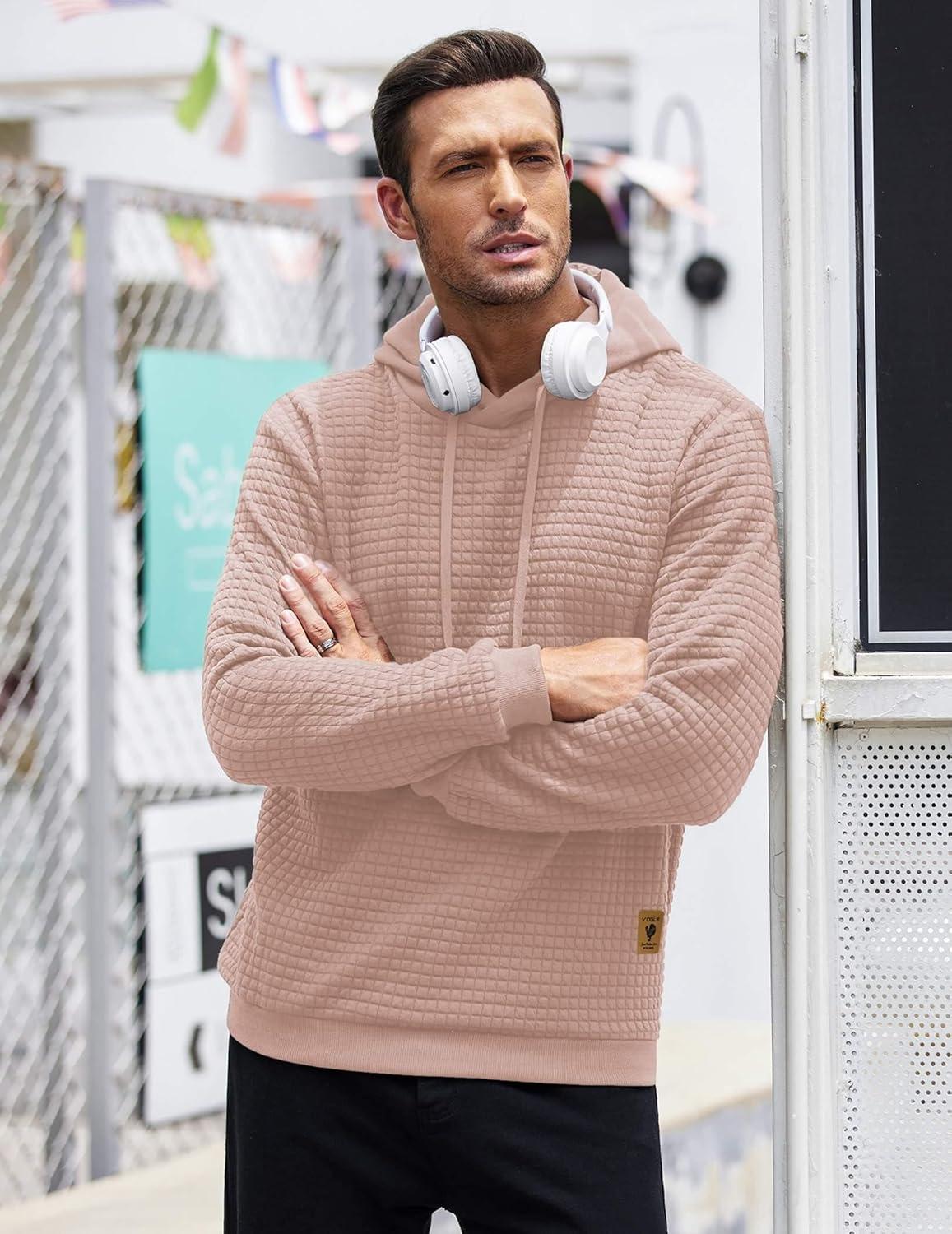 COOFANDY Mens Hooded Sweatshirt Casual Long Sleeve Drawstring Waffle Knit Pullover Hoodies(Misty Rose)
