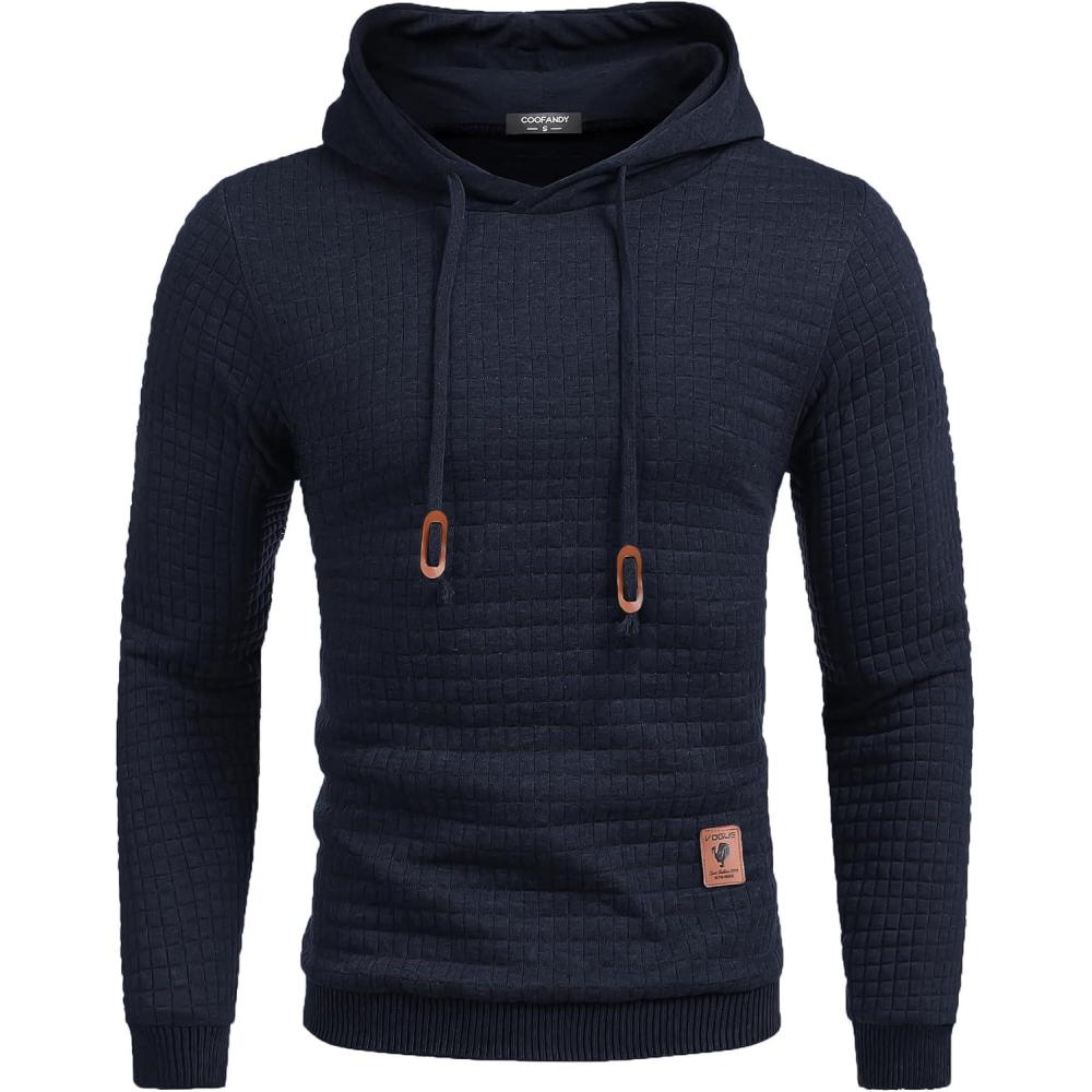 COOFANDY Mens Hooded Sweatshirt Casual Long Sleeve Drawstring Waffle Knit Pullover Hoodies(Navy Blue)