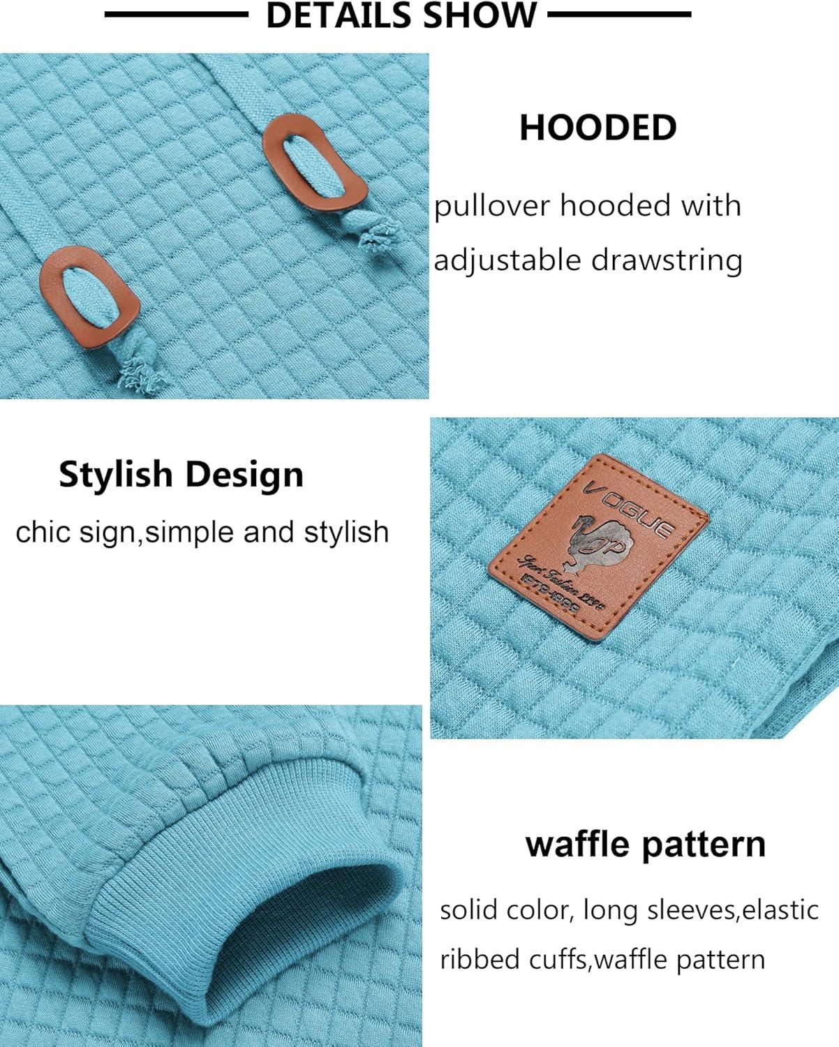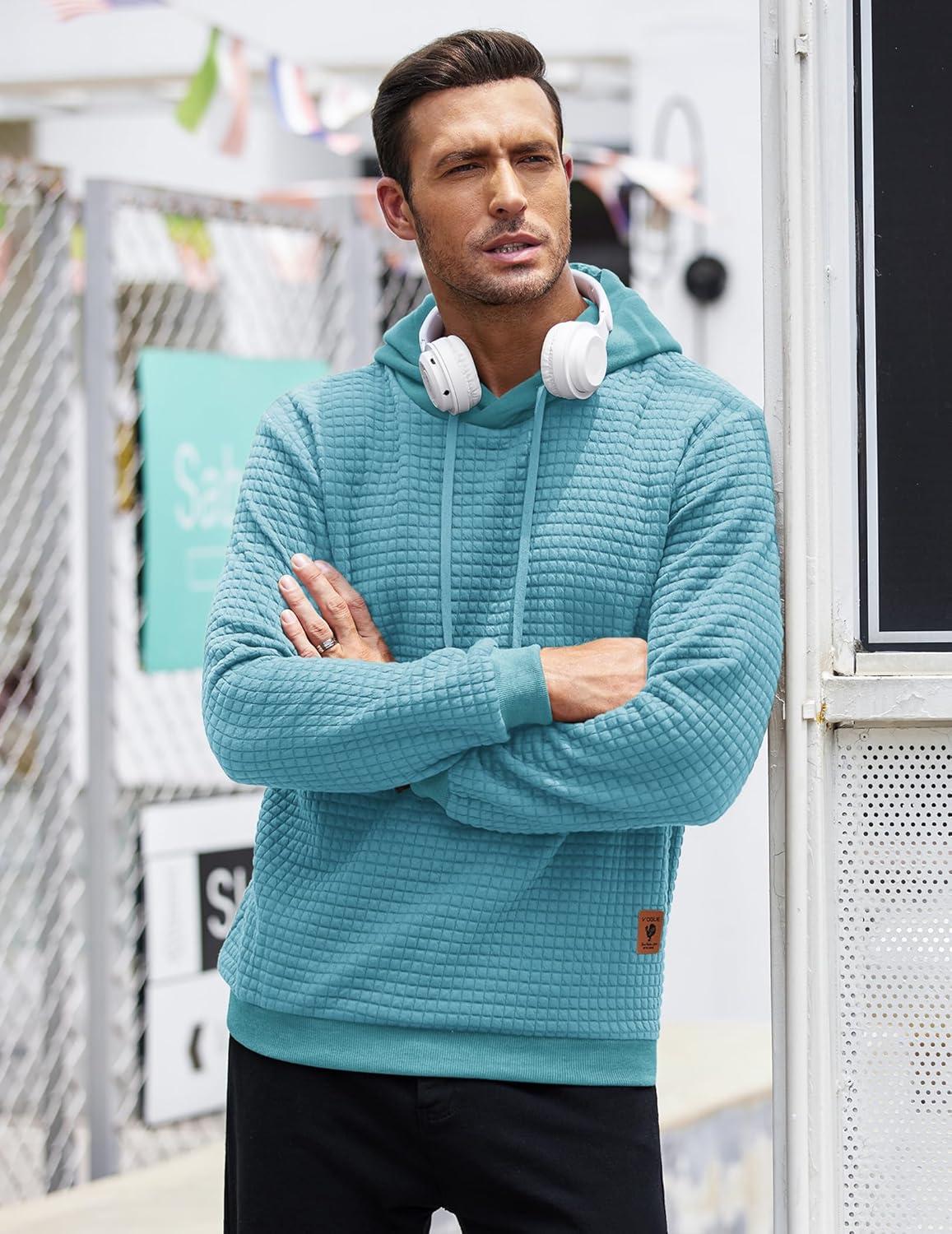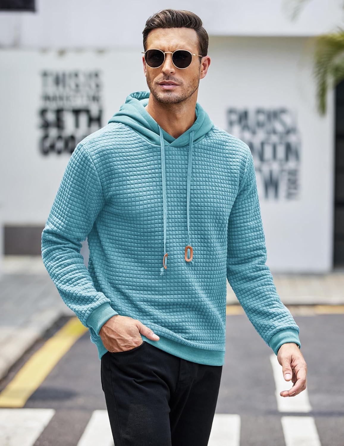 COOFANDY Mens Hooded Sweatshirt Casual Long Sleeve Drawstring Waffle Knit Pullover Hoodies(Sky Blue)