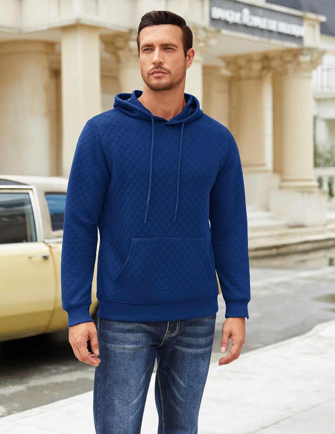 Don’t break the bank! Get the COOFANDY Mens Hooded Sweatshirt Long Sleeve Quilted Sweatshirt Casual Fashion Pullover Hoodies with Pocket(Dark Blue) you want at a price you can afford during our markdown sale.