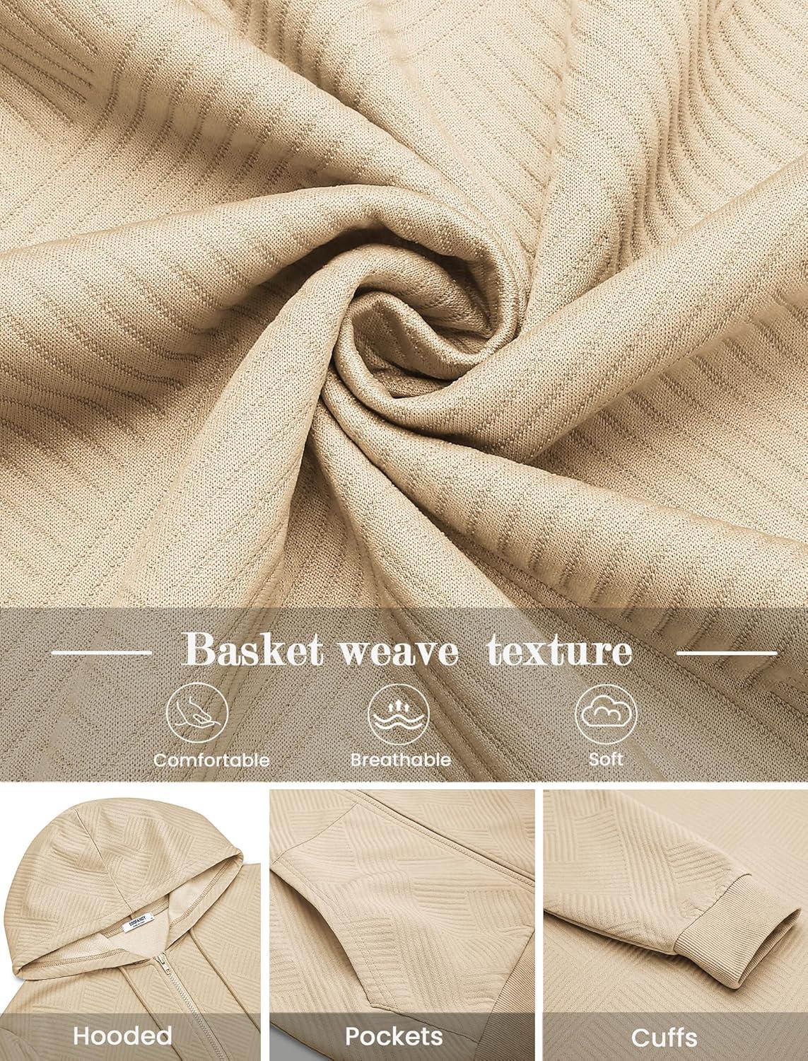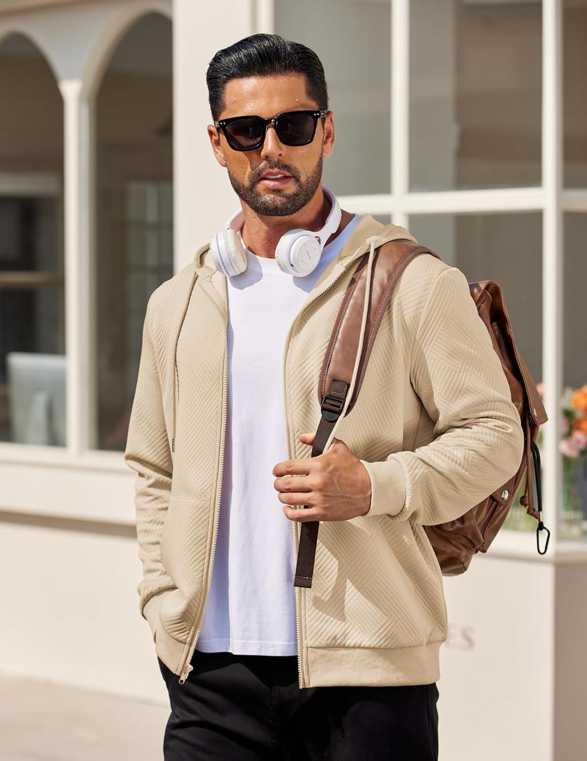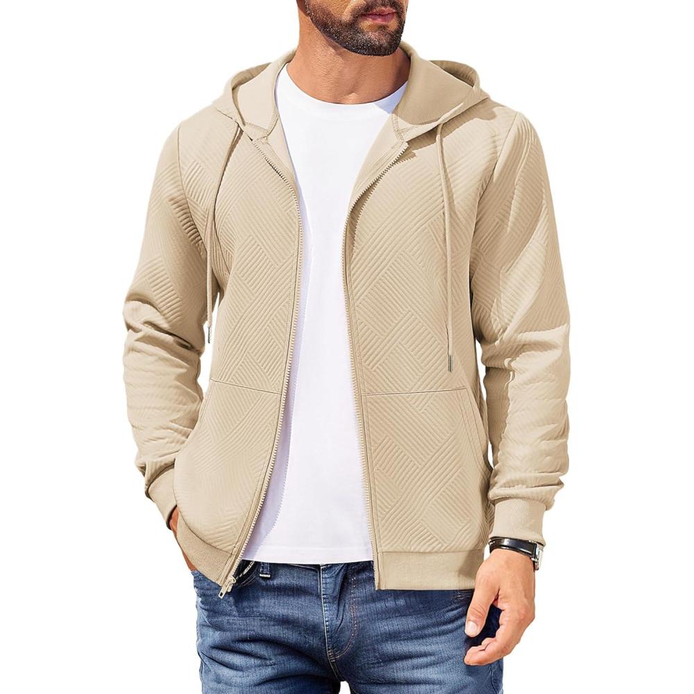 COOFANDY Mens Hooded Sweatshirt Zip Up Casual Knit Hoodies Fashion Drawstring Sweatshirts with Pockets(Khaki)