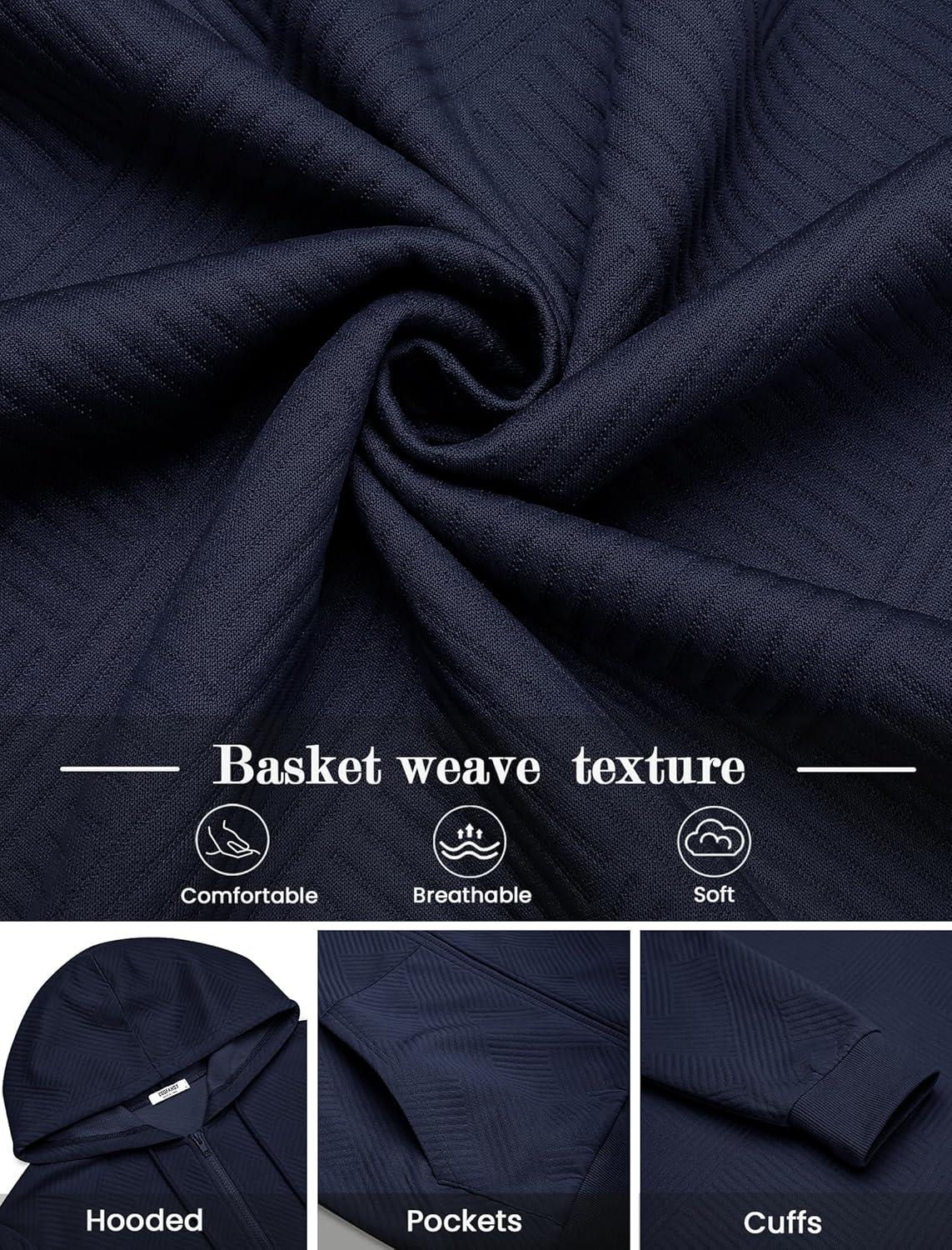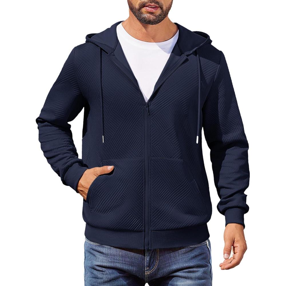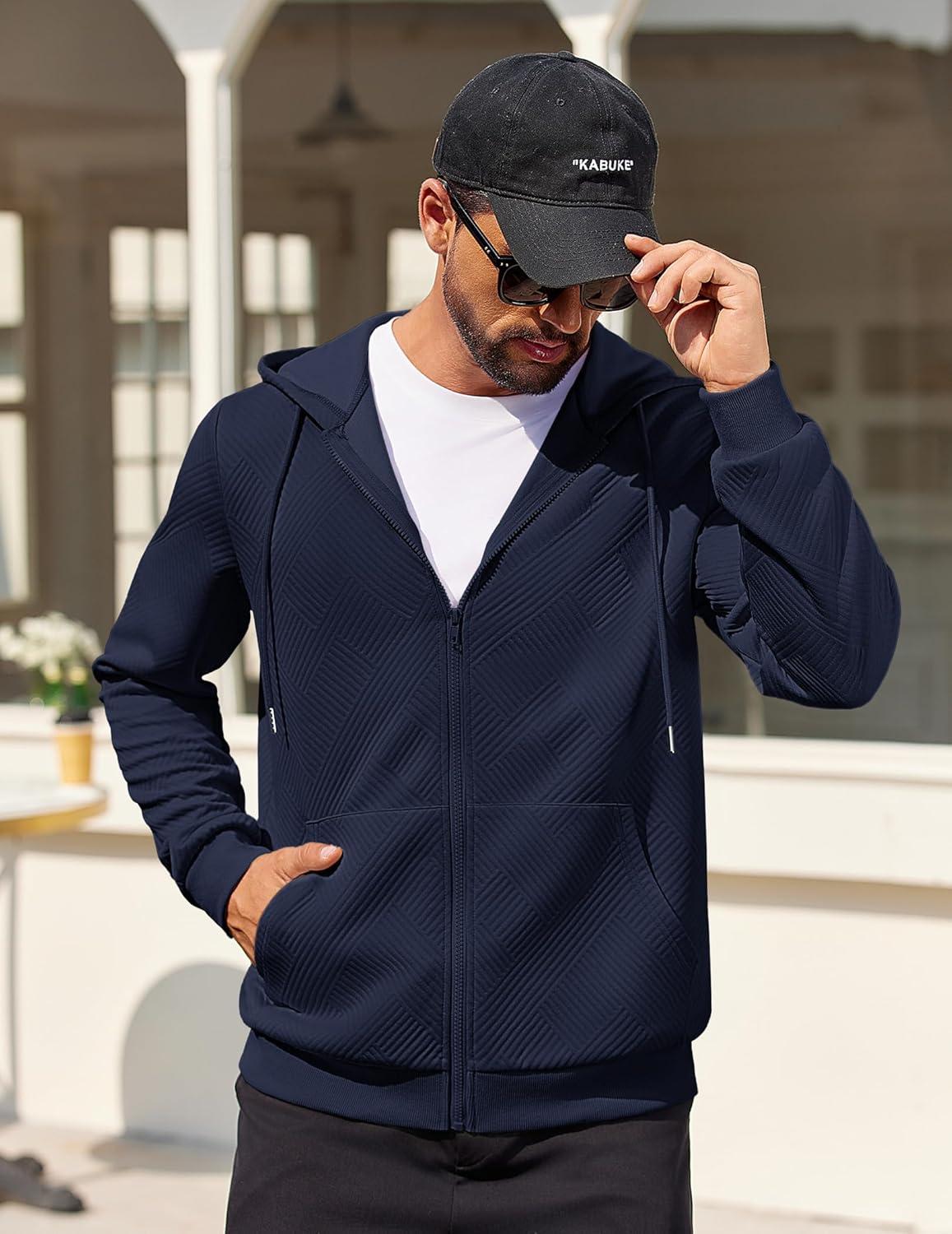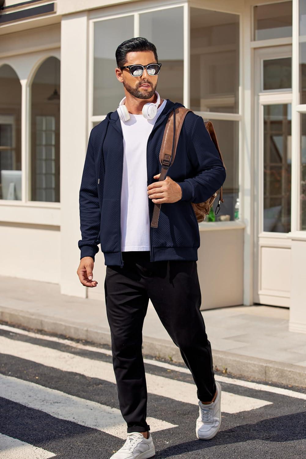 COOFANDY Mens Hooded Sweatshirt Zip Up Casual Knit Hoodies Fashion Drawstring Sweatshirts with Pockets(Navy Blue)