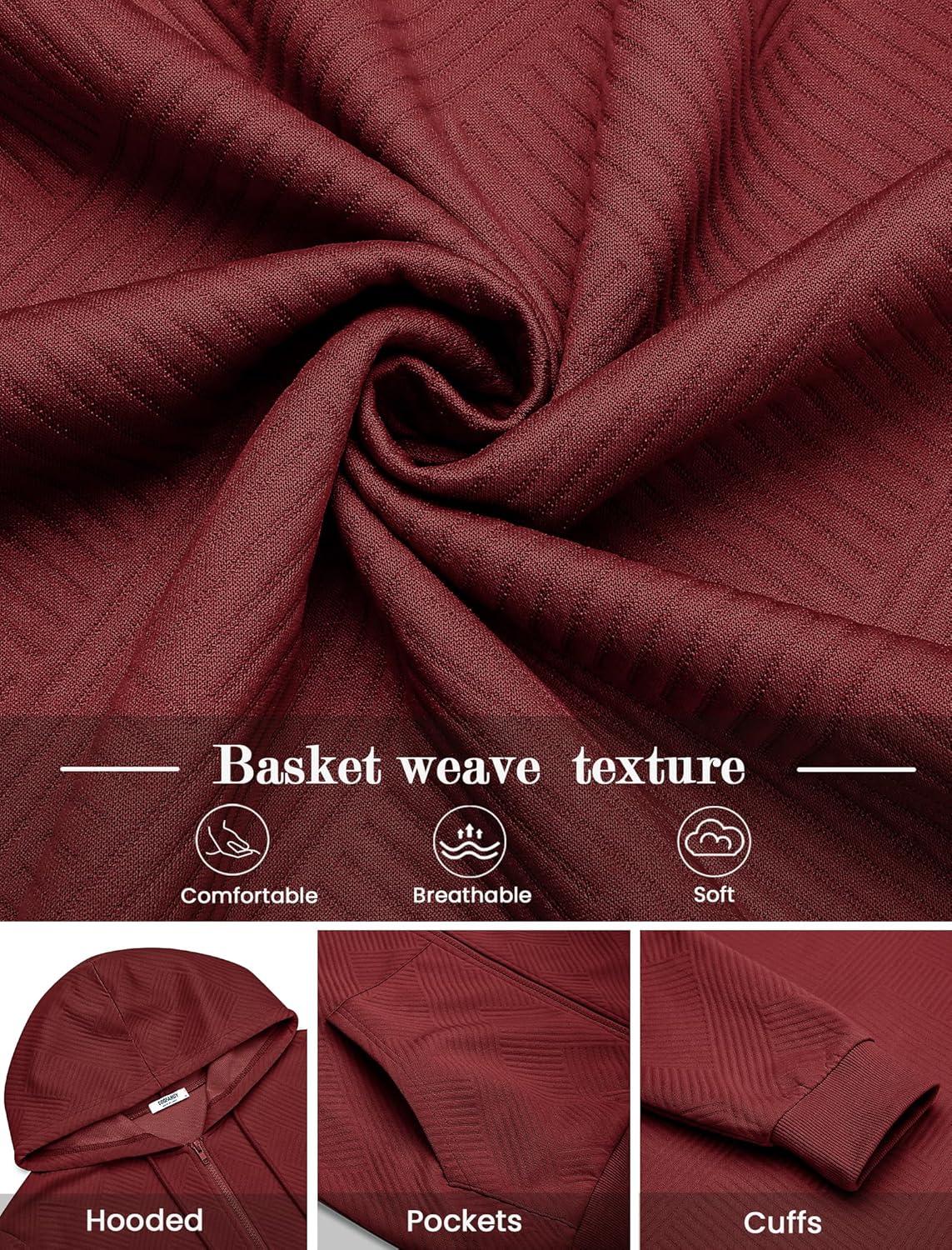 COOFANDY Mens Hooded Sweatshirt Zip Up Casual Knit Hoodies Fashion Drawstring Sweatshirts with Pockets(Wine Red)
