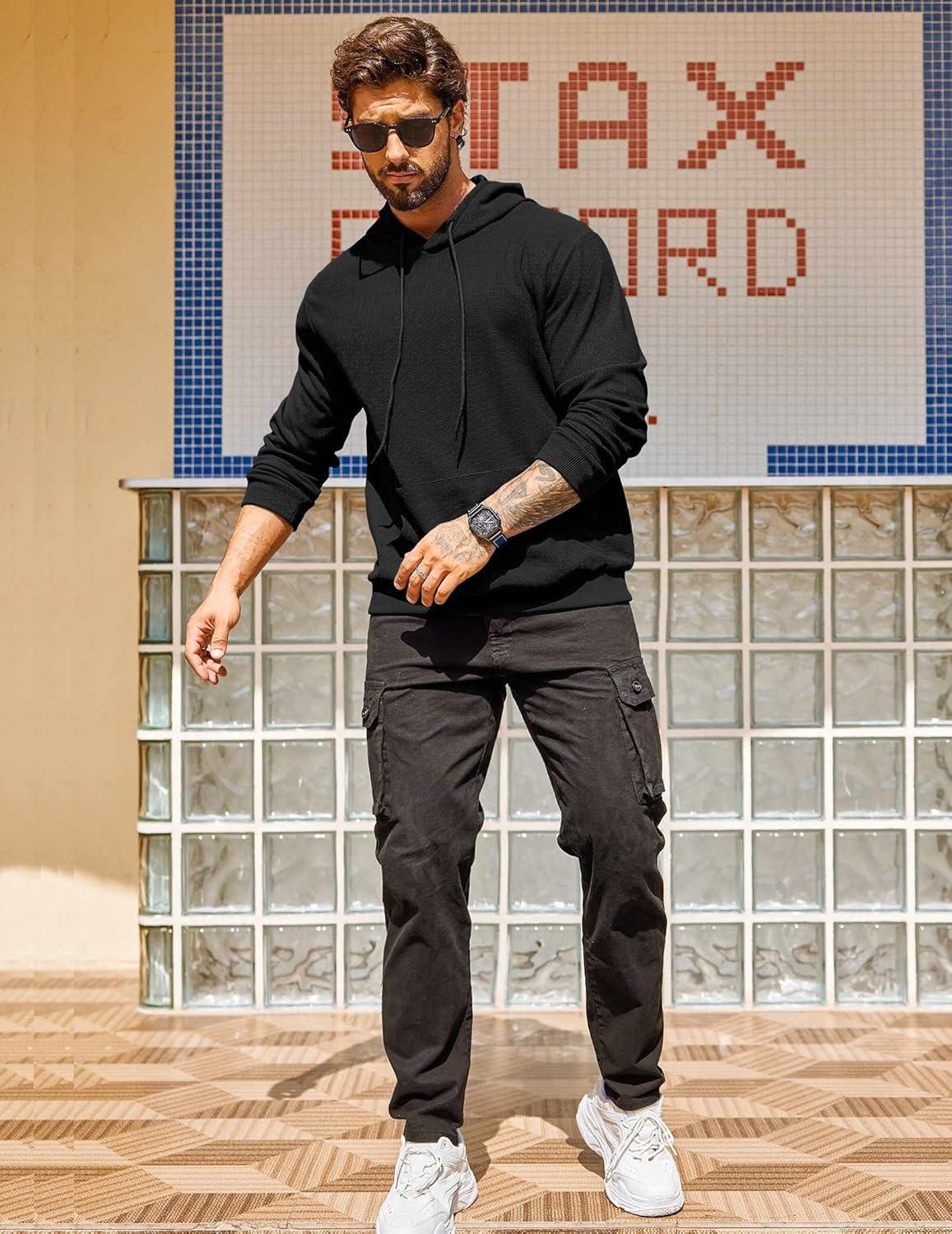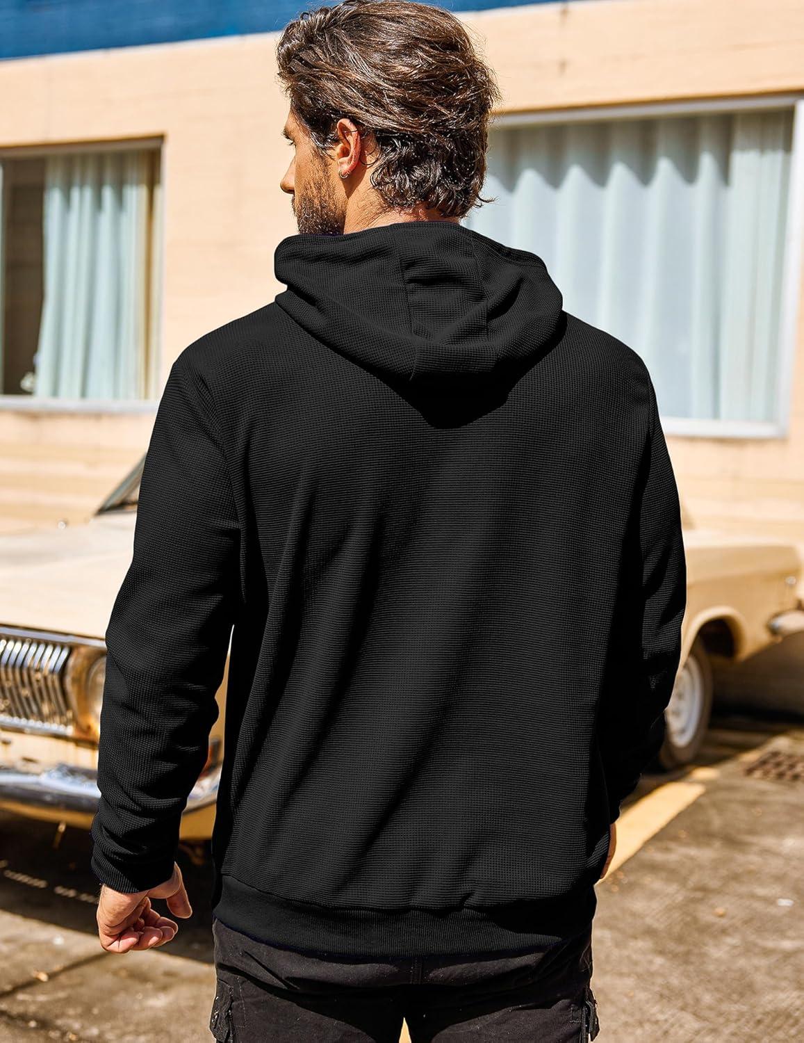 COOFANDY Men's Hooded Sweatshirts Long Sleeve Casual Pullover Hoodie Waffle Knit Sweatshirt with Pocket(Black)