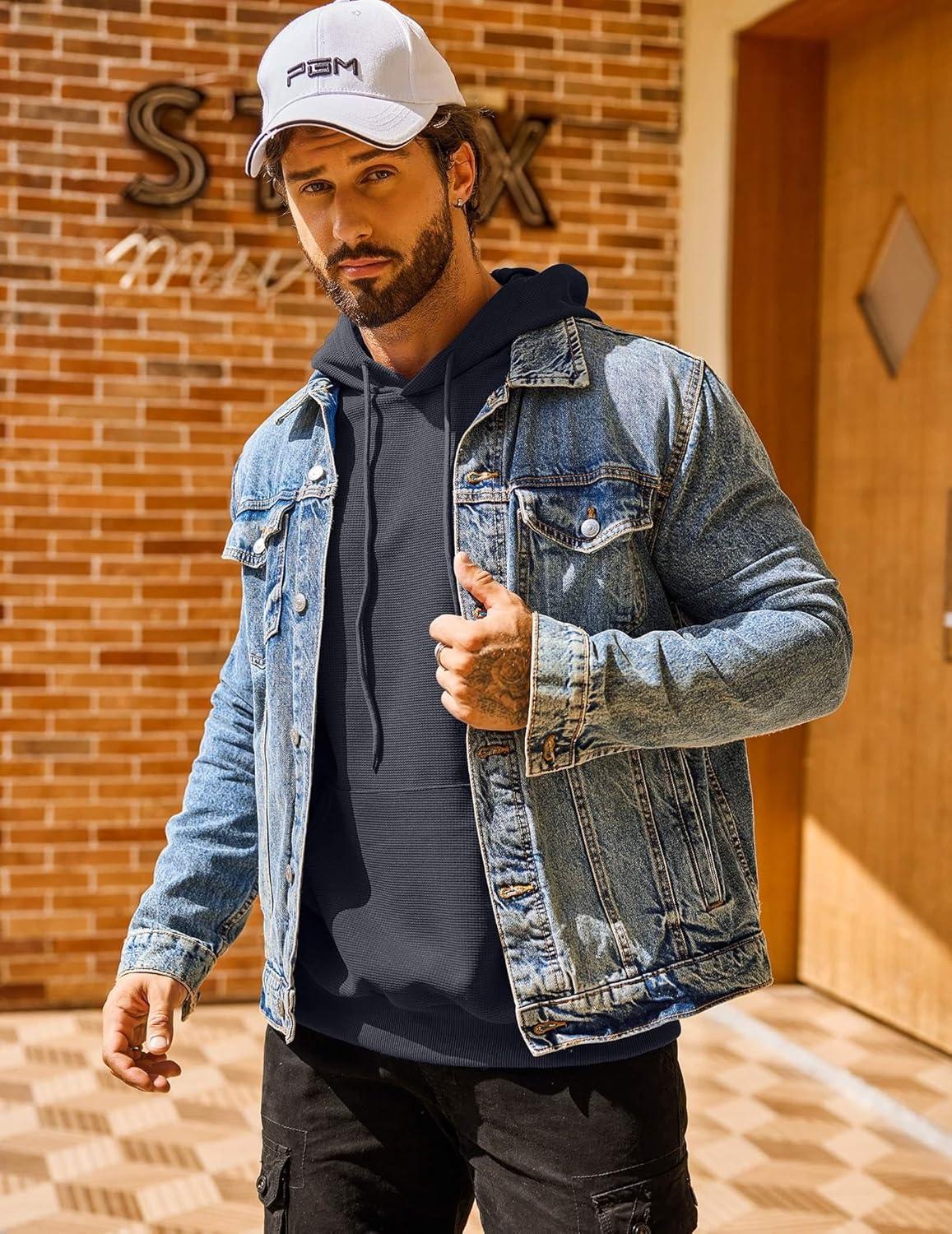 COOFANDY Men’s Hooded Sweatshirts Long Sleeve Casual Pullover Hoodie Waffle Knit Sweatshirt with Pocket(Blue)