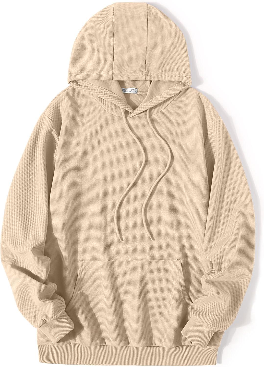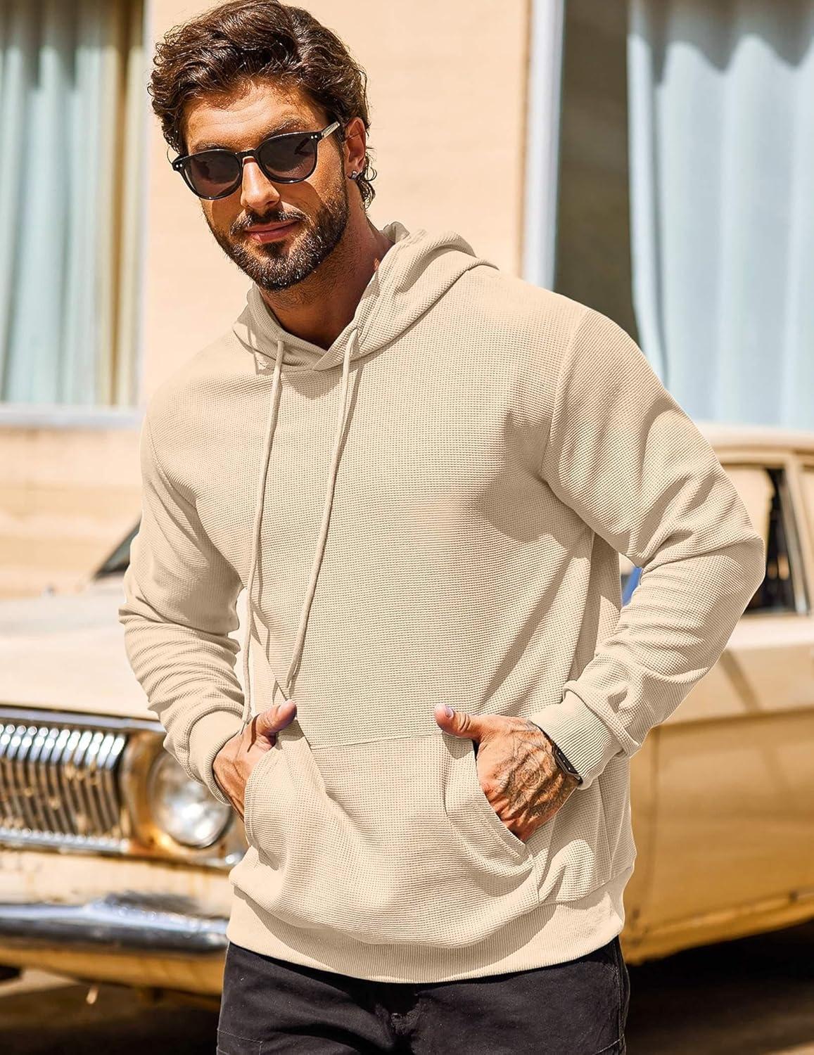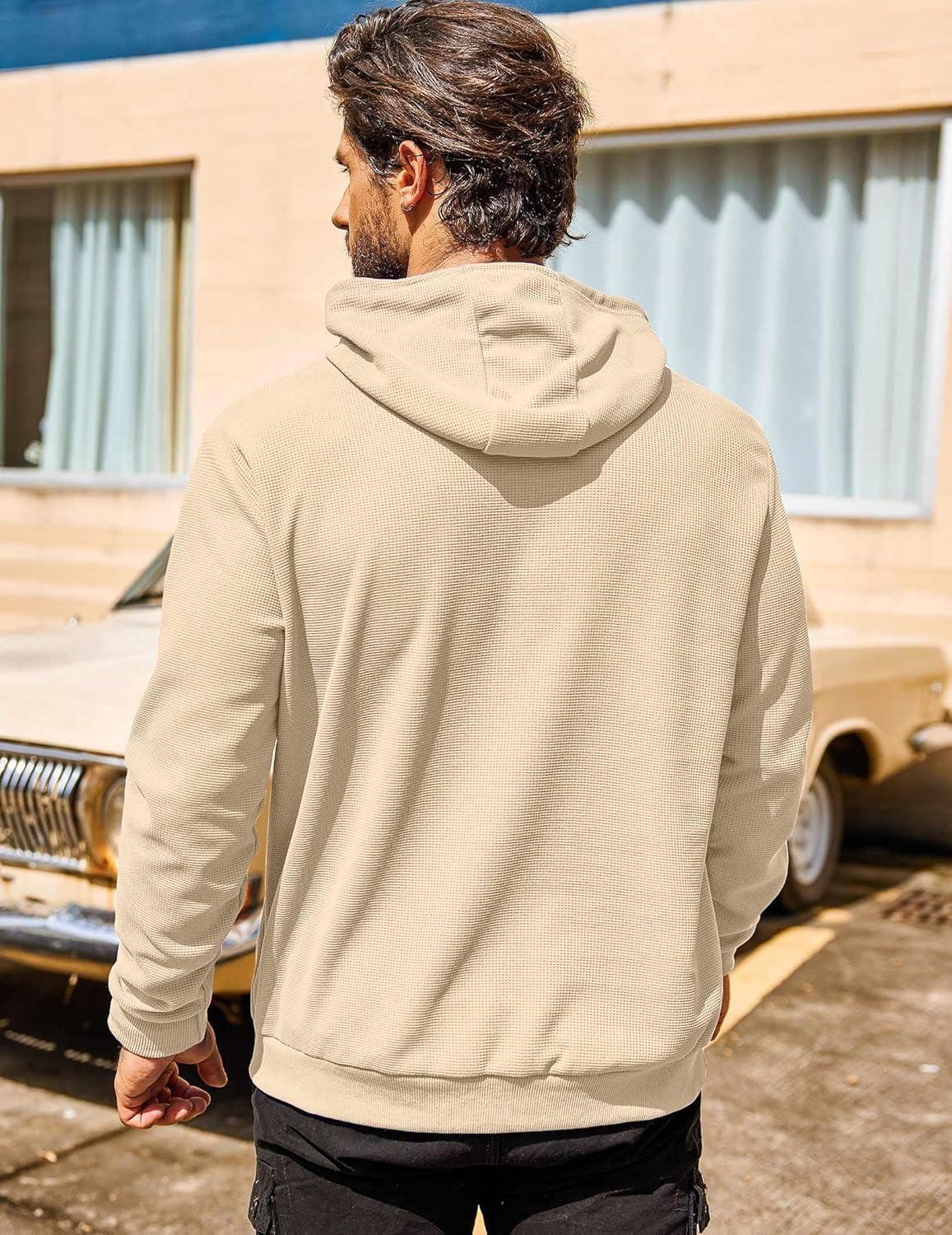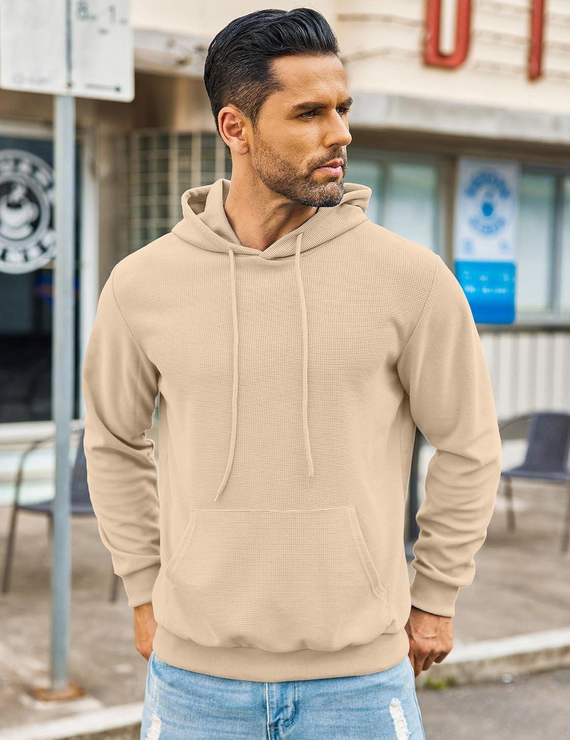 COOFANDY Men's Hooded Sweatshirts Long Sleeve Casual Pullover Hoodie Waffle Knit Sweatshirt with Pocket(Khaki)