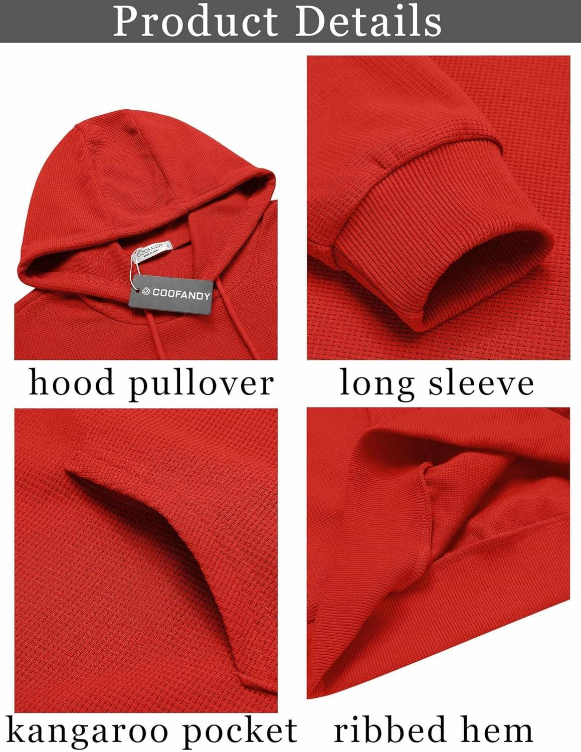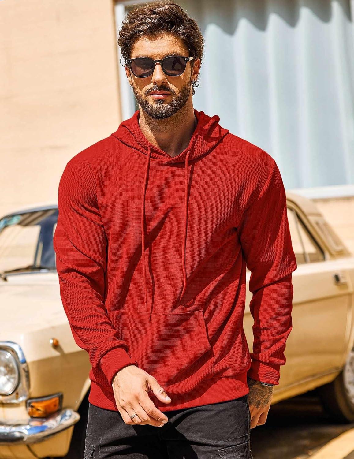 COOFANDY Men's Hooded Sweatshirts Long Sleeve Casual Pullover Hoodie Waffle Knit Sweatshirt with Pocket(Red)