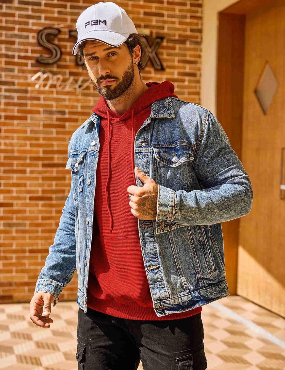 COOFANDY Men’s Hooded Sweatshirts Long Sleeve Casual Pullover Hoodie Waffle Knit Sweatshirt with Pocket(Red)