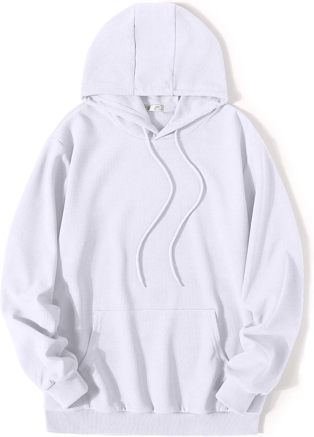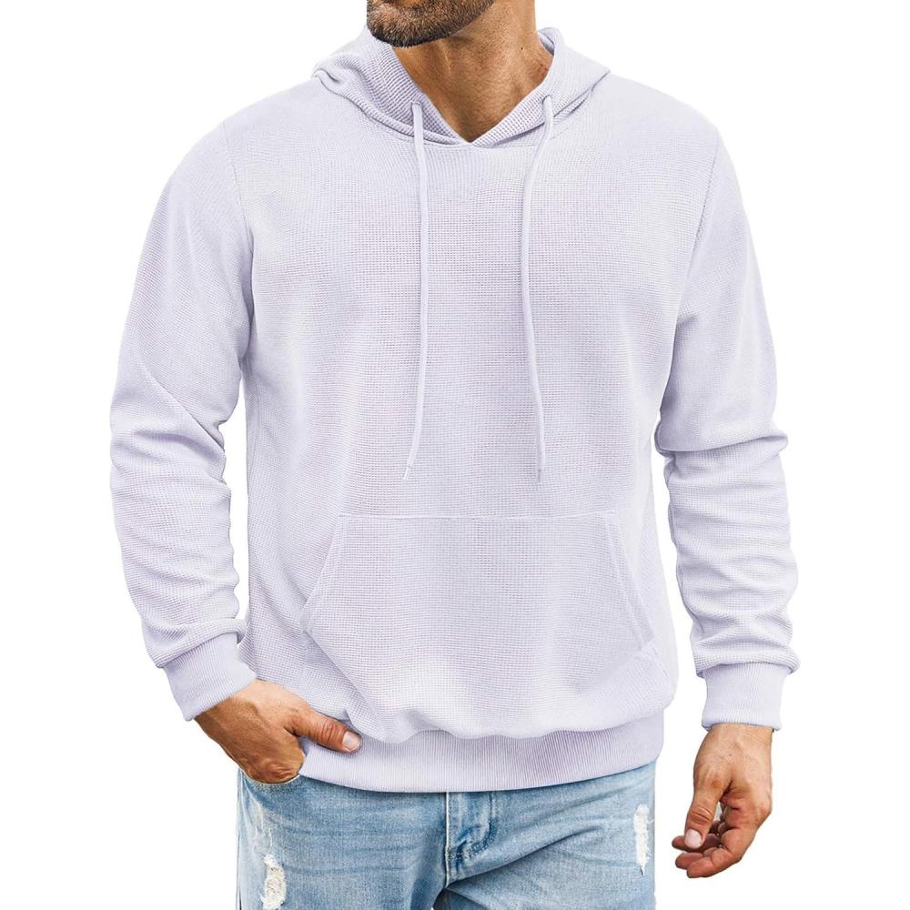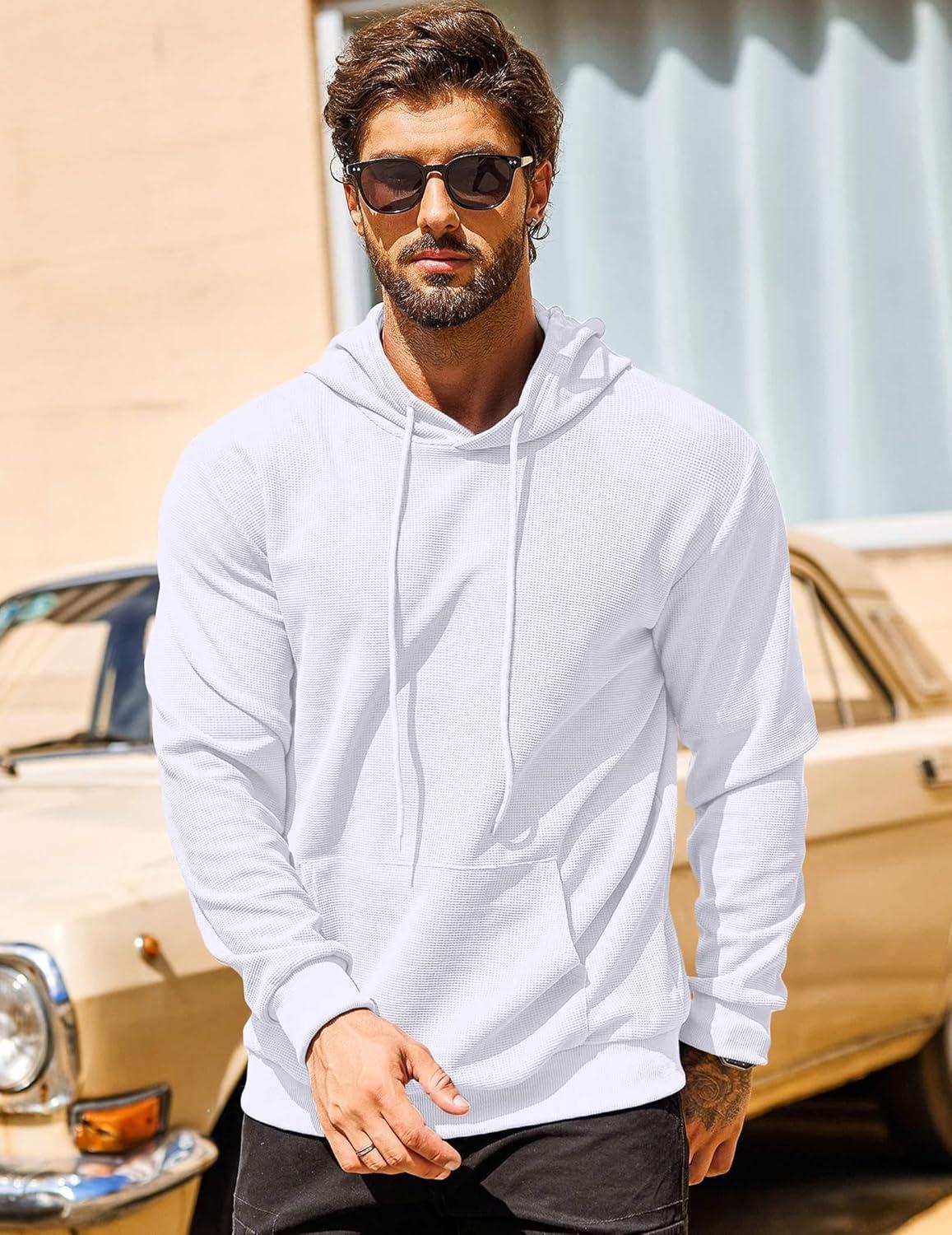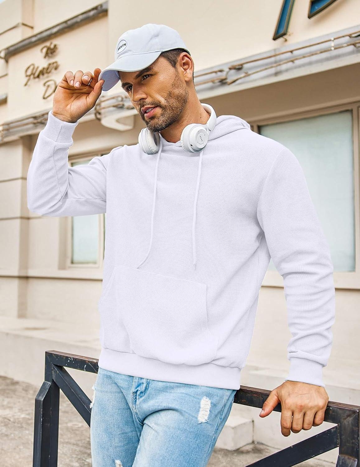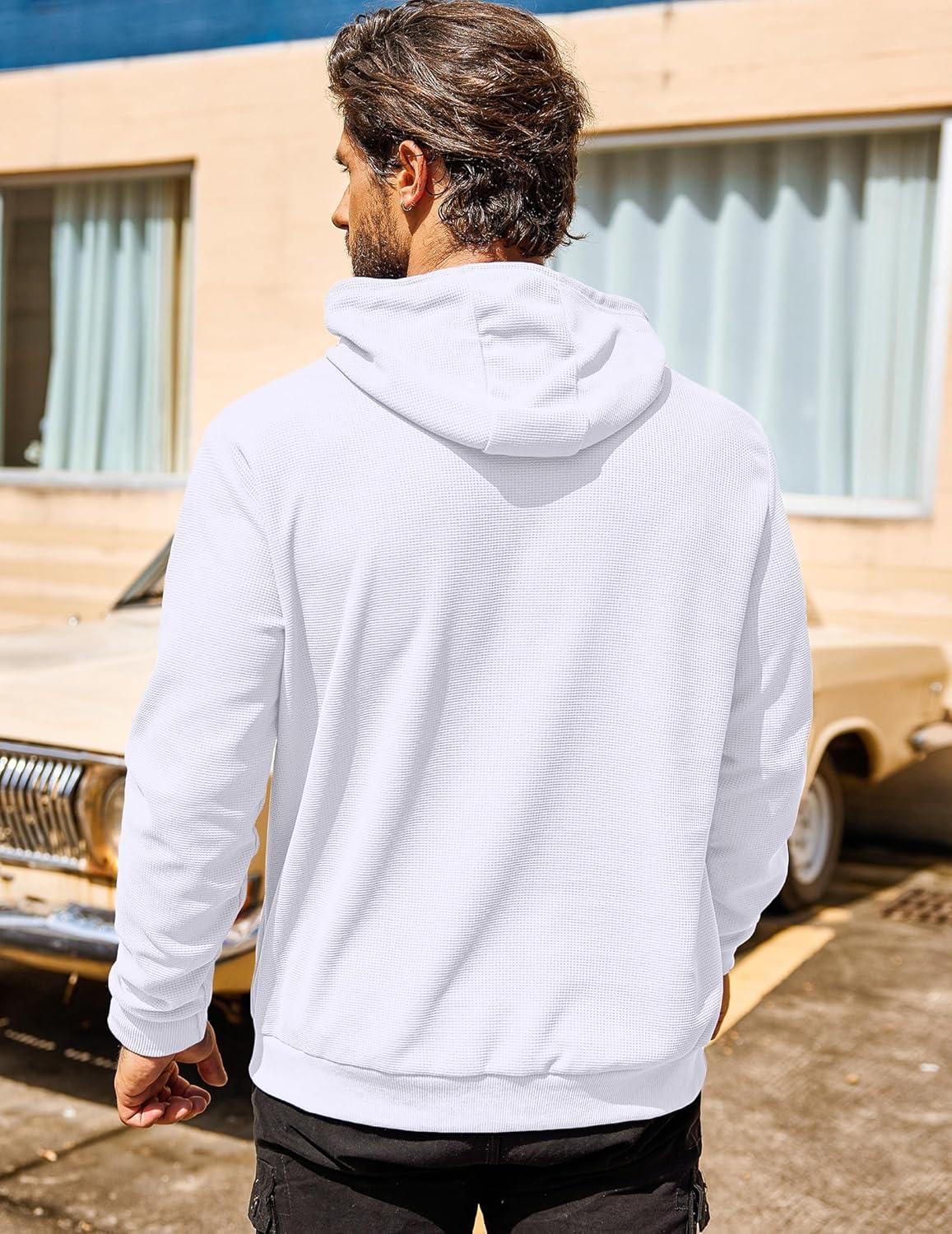 COOFANDY Men's Hooded Sweatshirts Long Sleeve Casual Pullover Hoodie Waffle Knit Sweatshirt with Pocket(White)