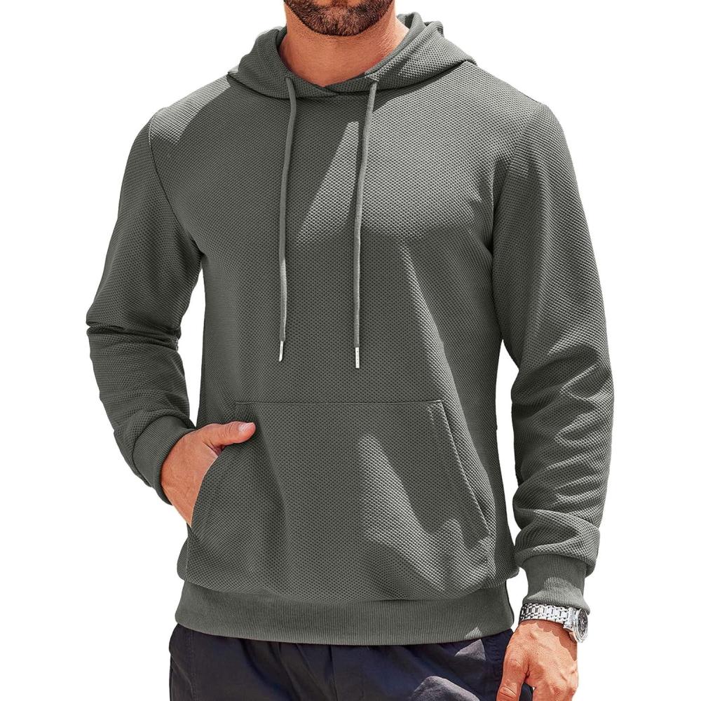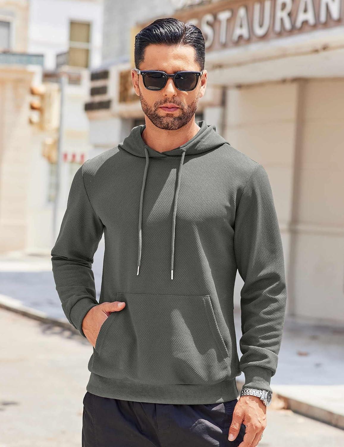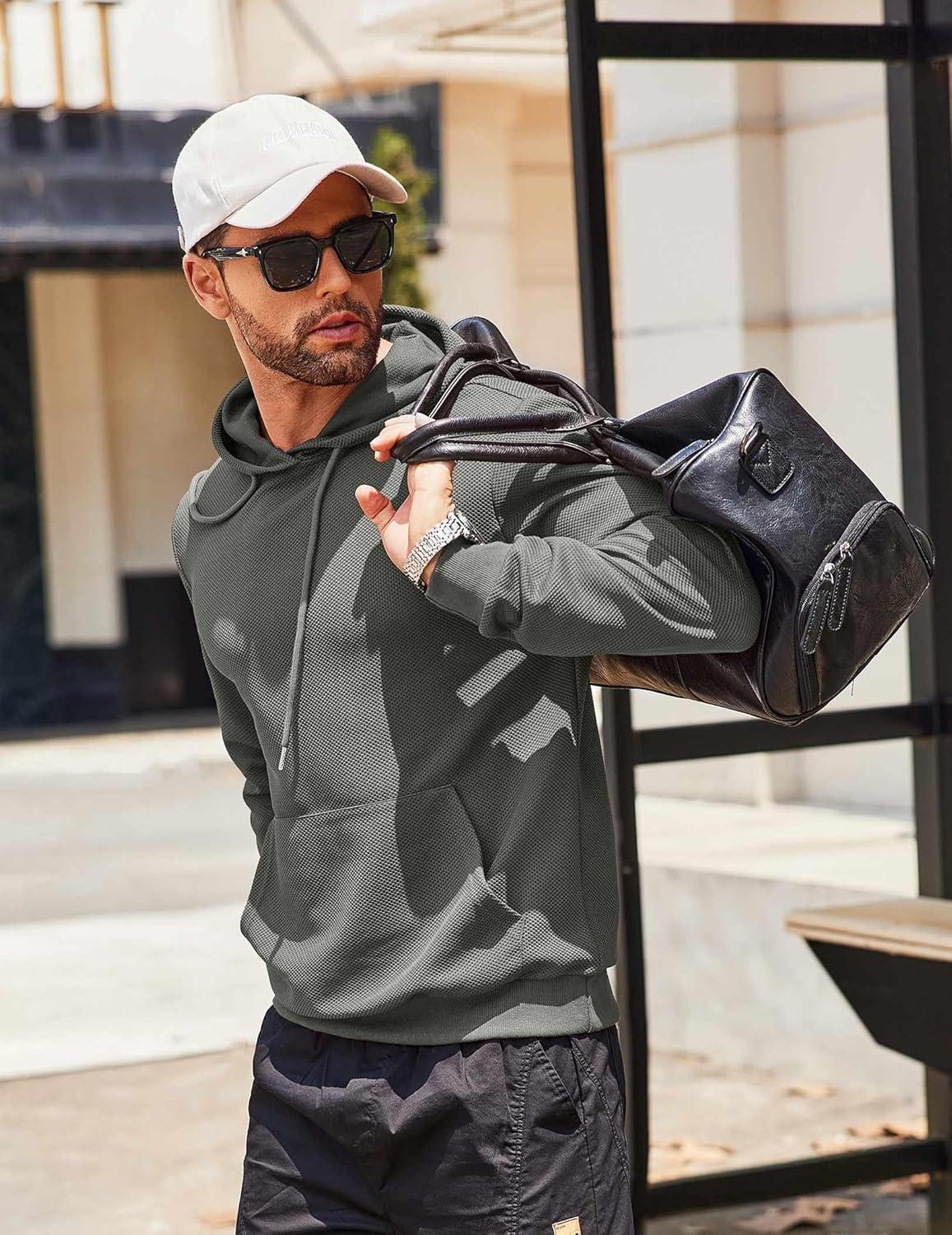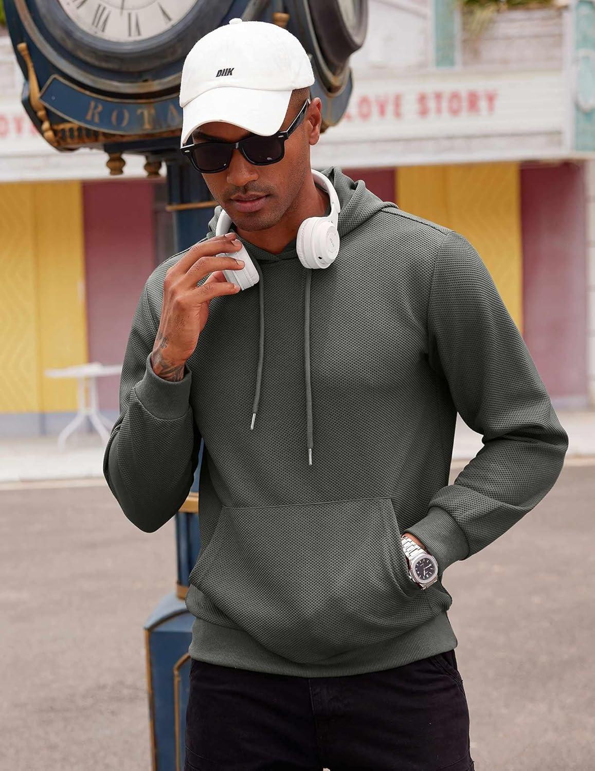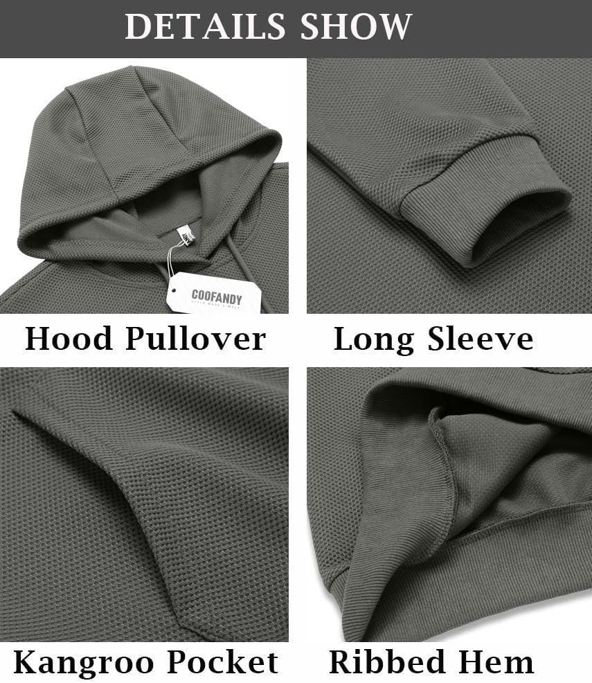 COOFANDY Men's Hooded Sweatshirts Long Sleeve Casual Waffle Knit Pullover Hoodies with Kanga Pocket(Dark Grey)