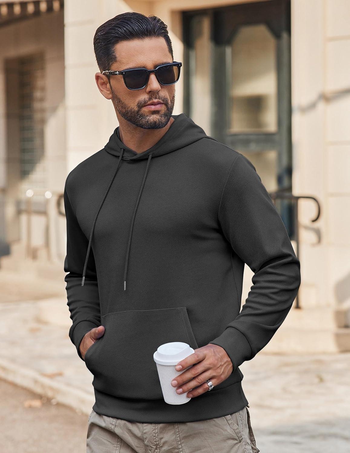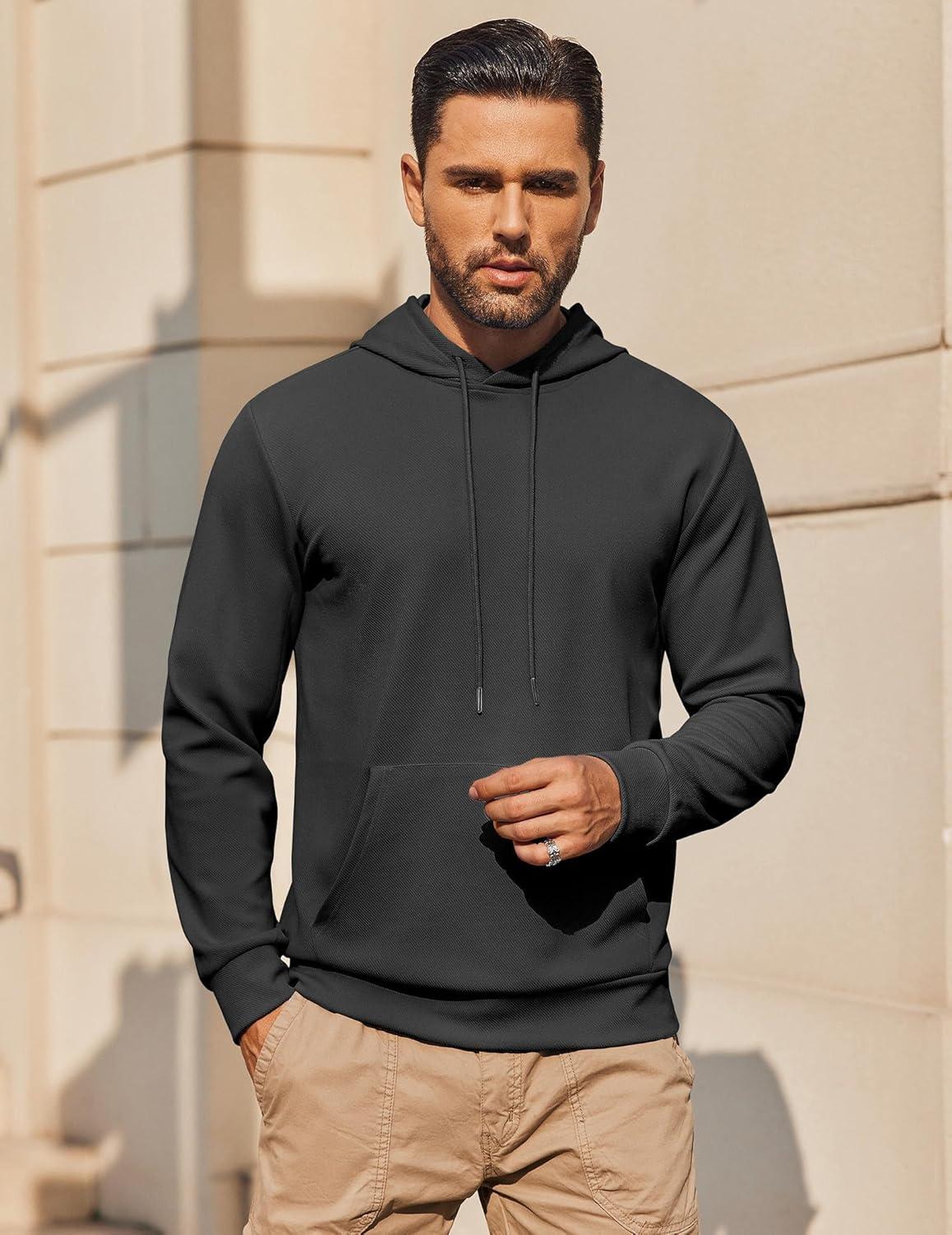 COOFANDY Mens Hoodie Long Sleeve Casual Pullover Hooded Sweatshirt Fashion Drawstring Hoodies with Pocket(Dark Grey)
