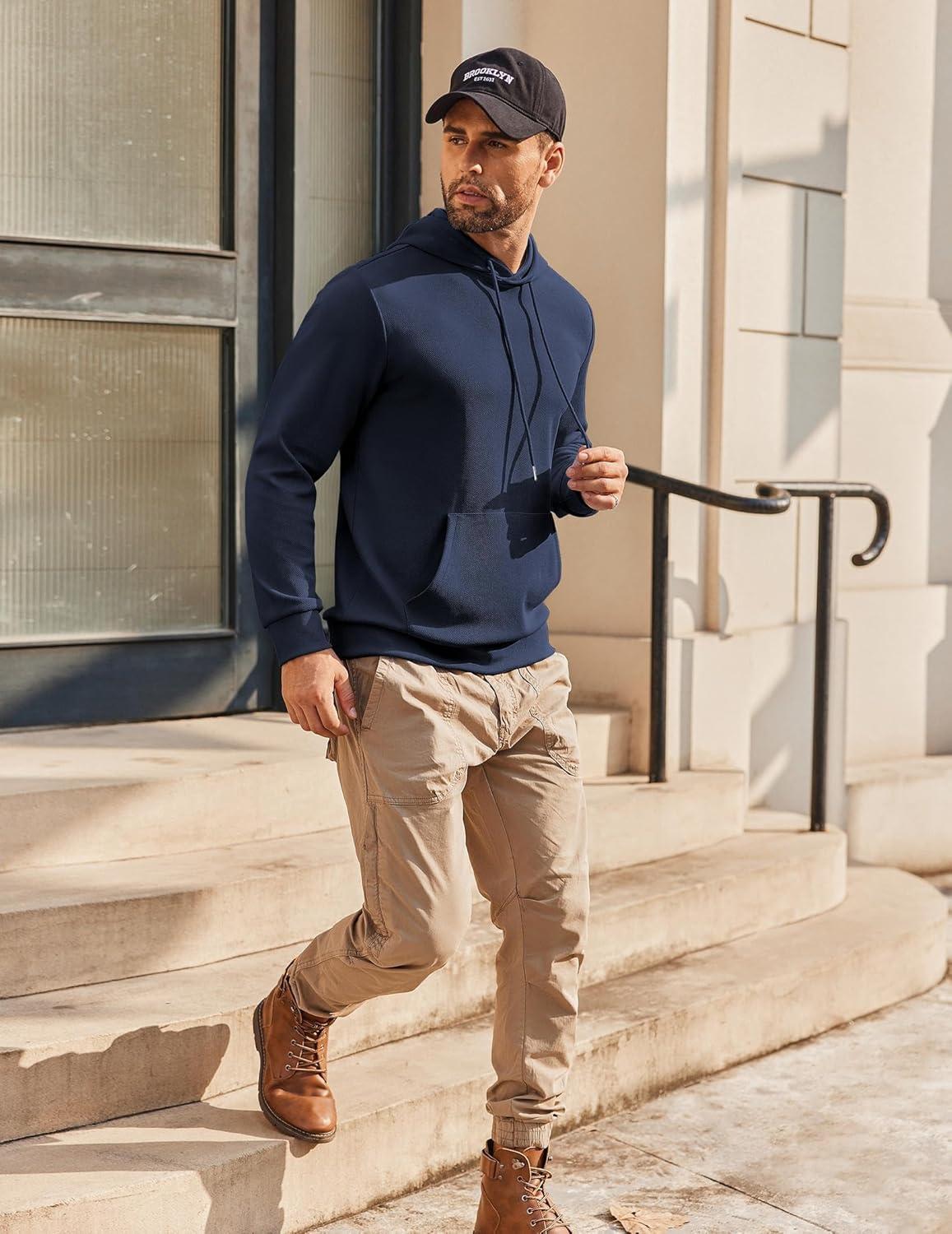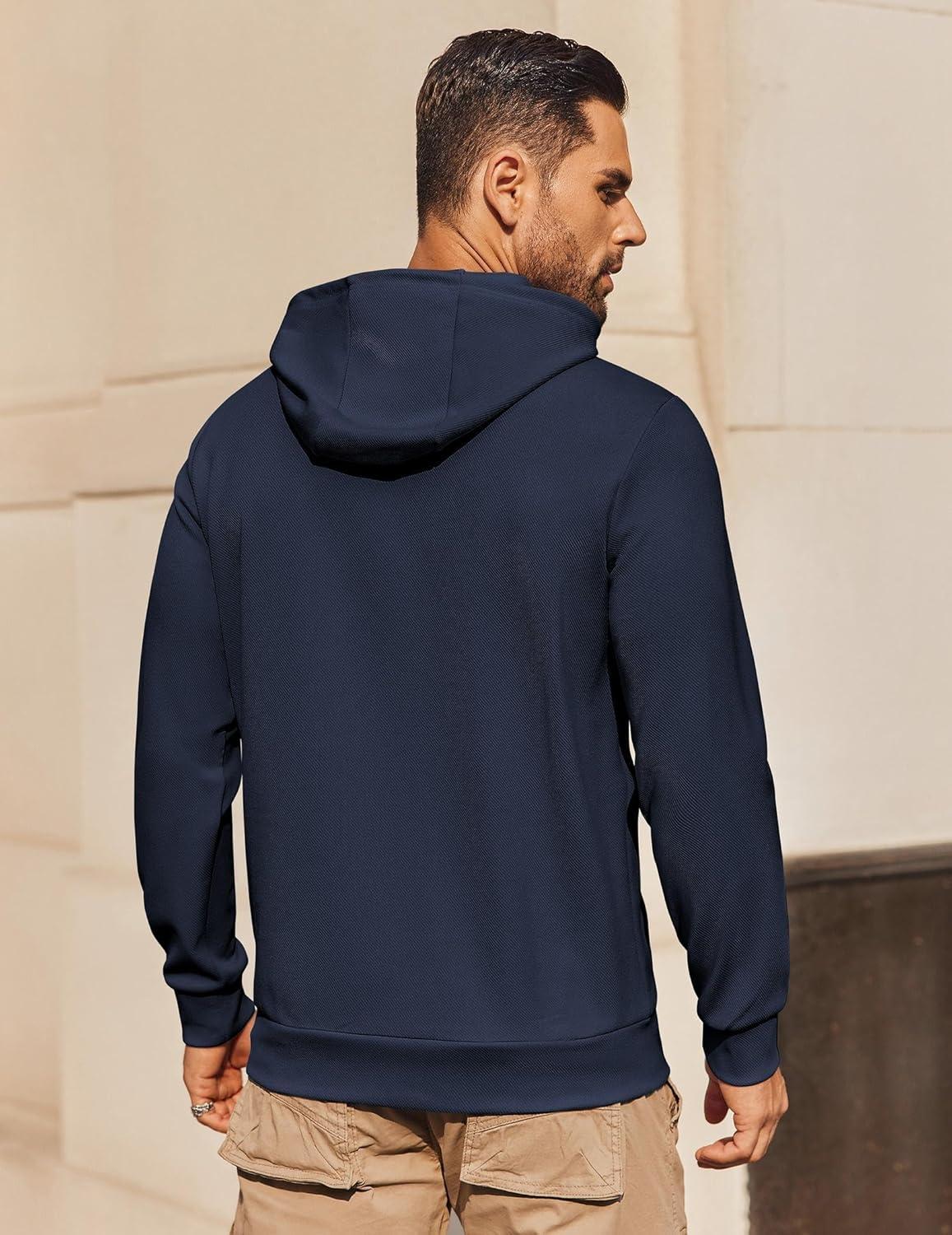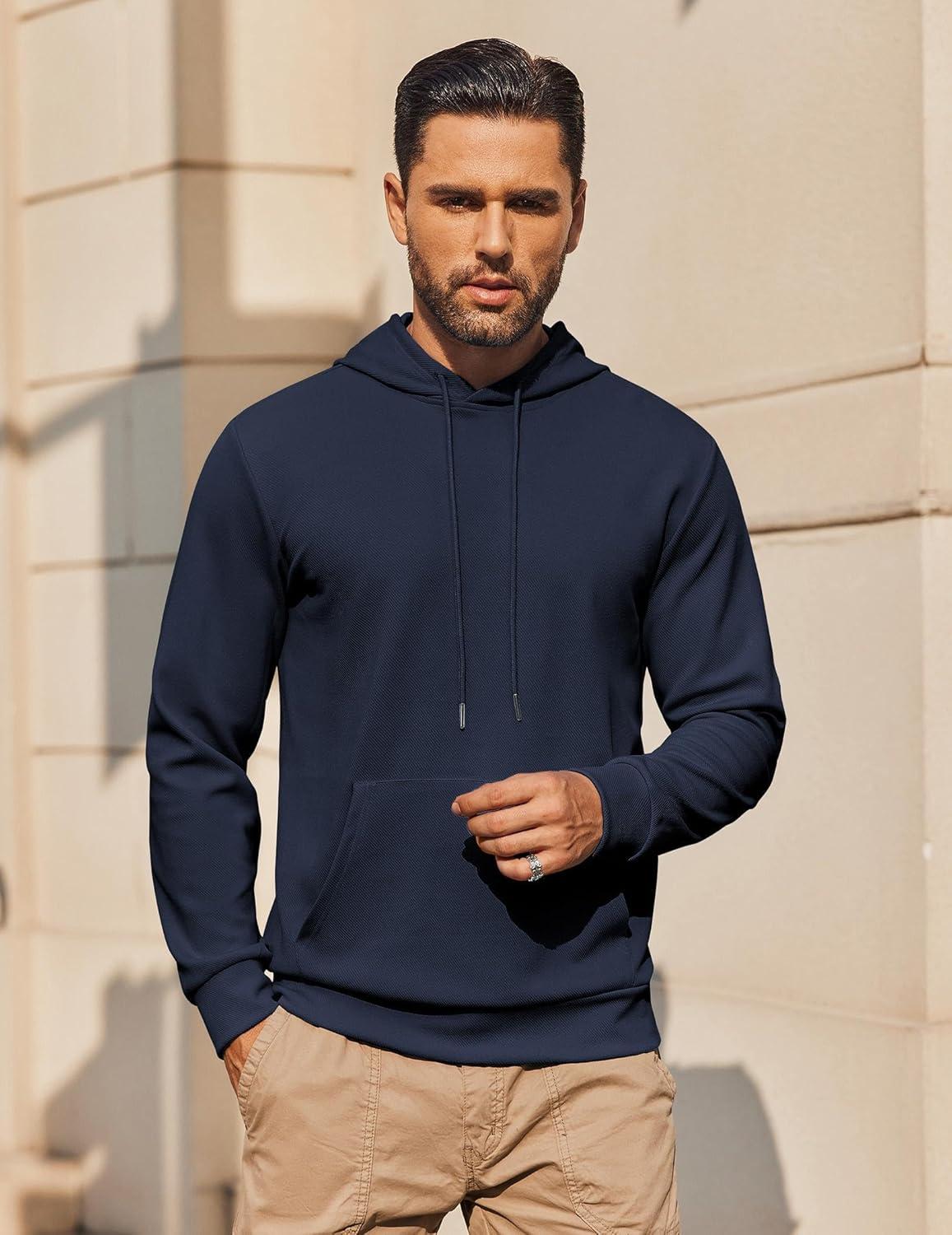 COOFANDY Mens Hoodie Long Sleeve Casual Pullover Hooded Sweatshirt Fashion Drawstring Hoodies with Pocket(Navy Blue)