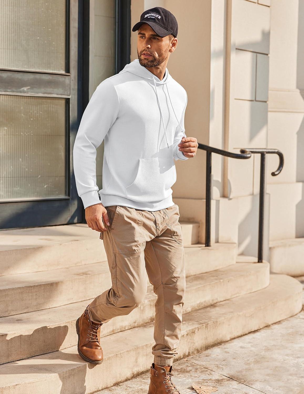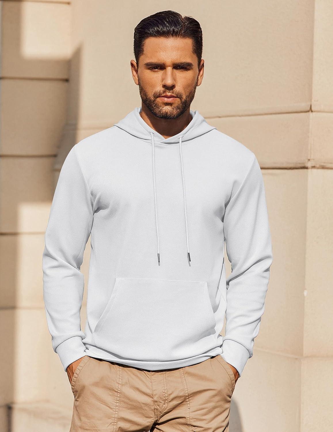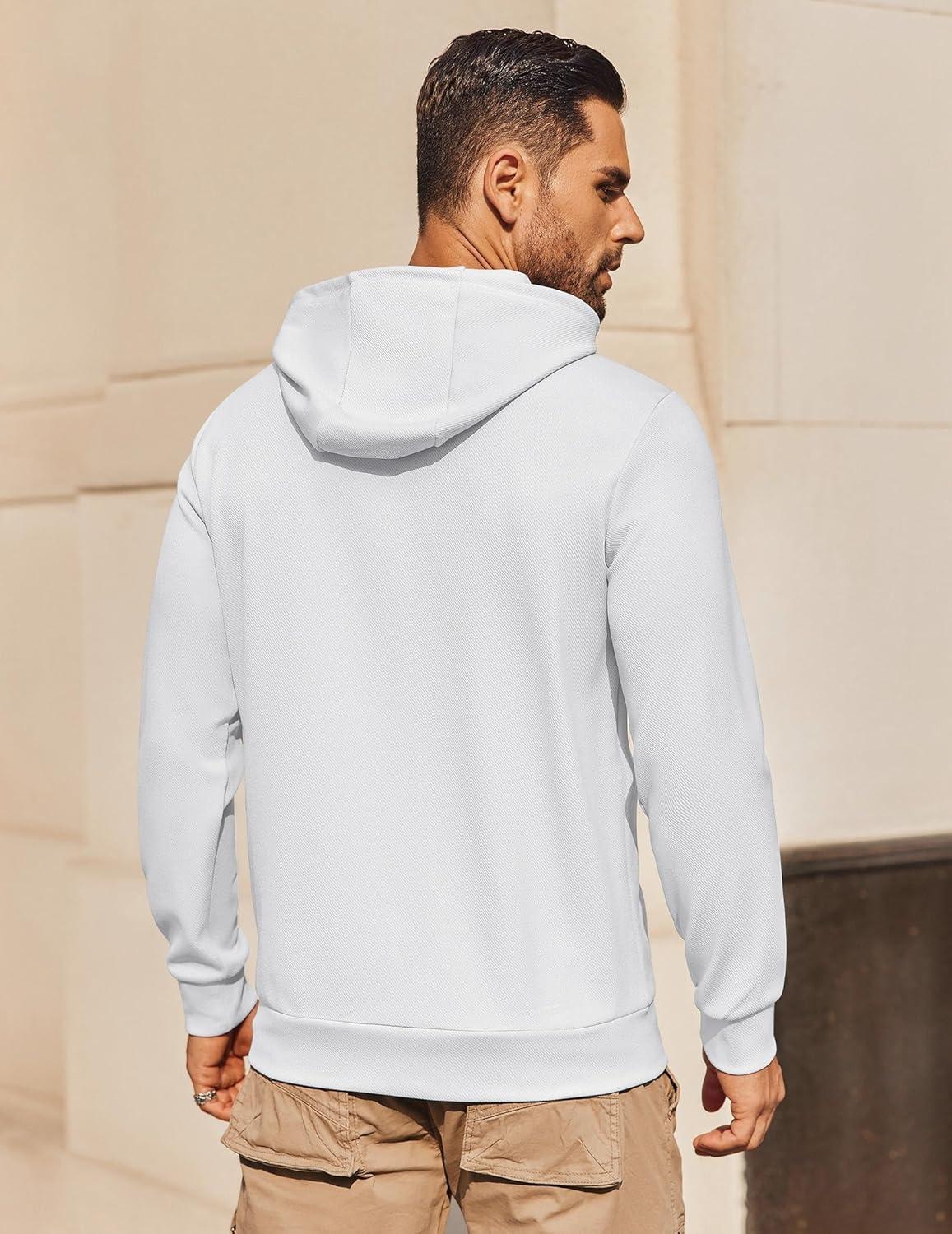 COOFANDY Mens Hoodie Long Sleeve Casual Pullover Hooded Sweatshirt Fashion Drawstring Hoodies with Pocket(White)