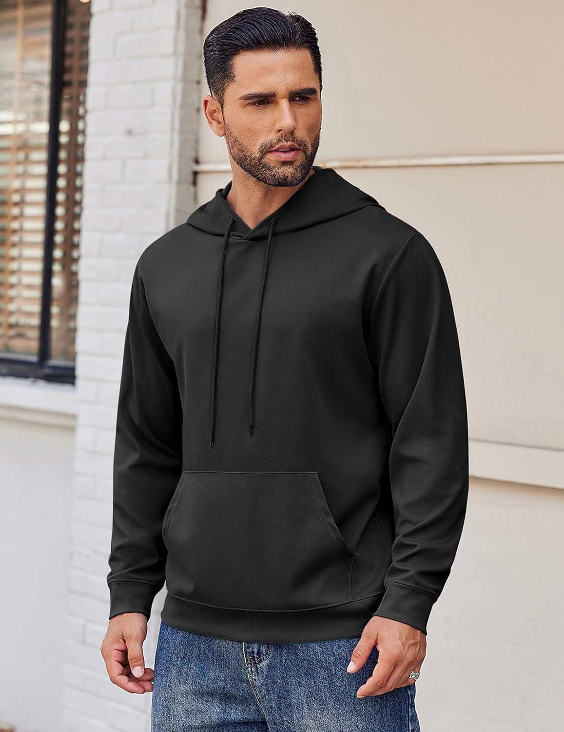 COOFANDY Men's Hoodie Long Sleeve Hooded Pullover Casual Fashion Sweatshirts Drawstring Gym Hooded with Kanga Pocket(Black)