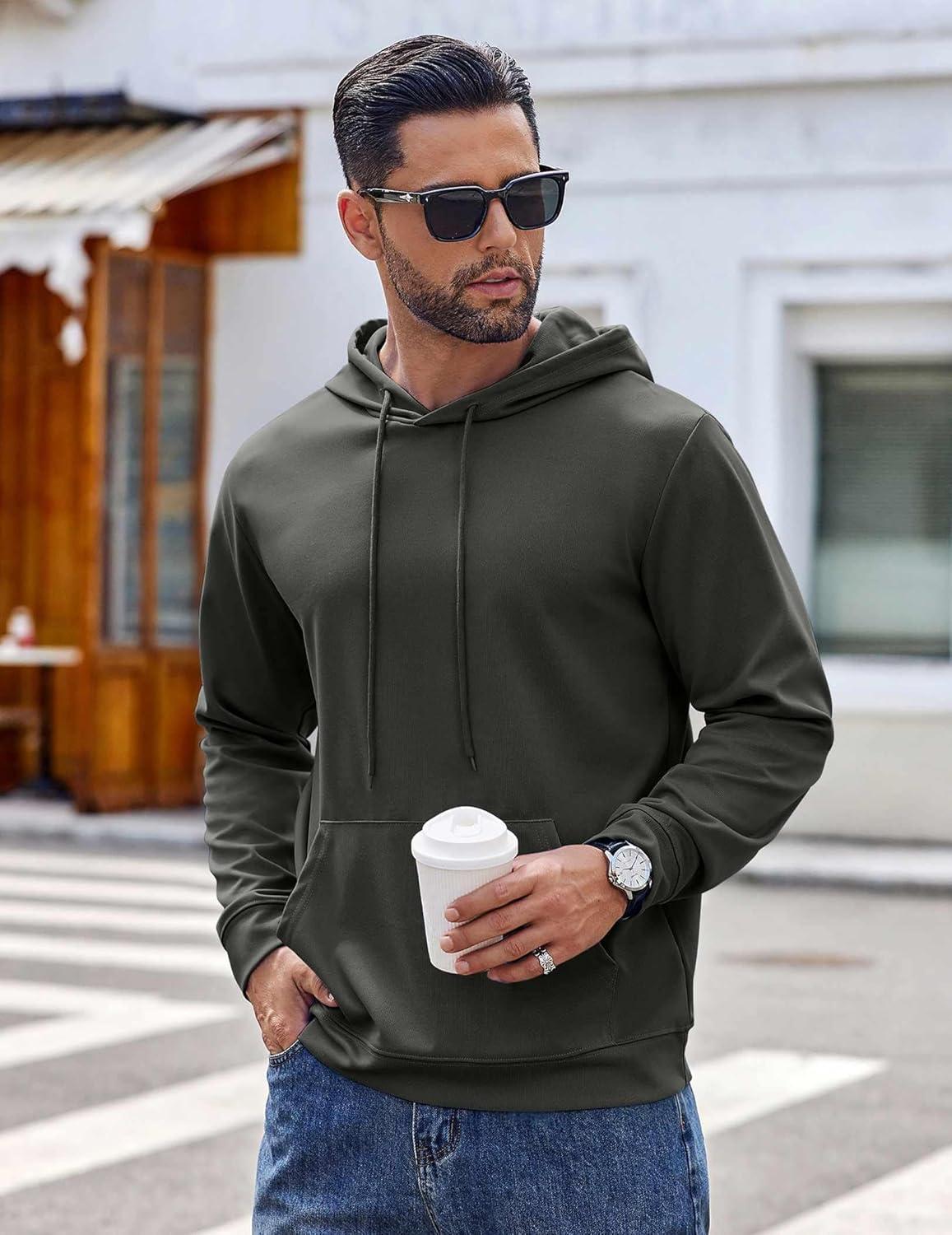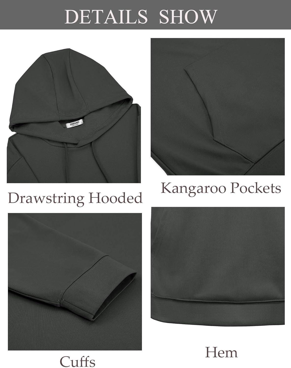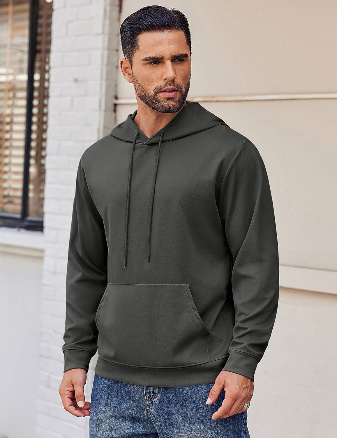 COOFANDY Men's Hoodie Long Sleeve Hooded Pullover Casual Fashion Sweatshirts Drawstring Gym Hooded with Kanga Pocket(Dark Grey)