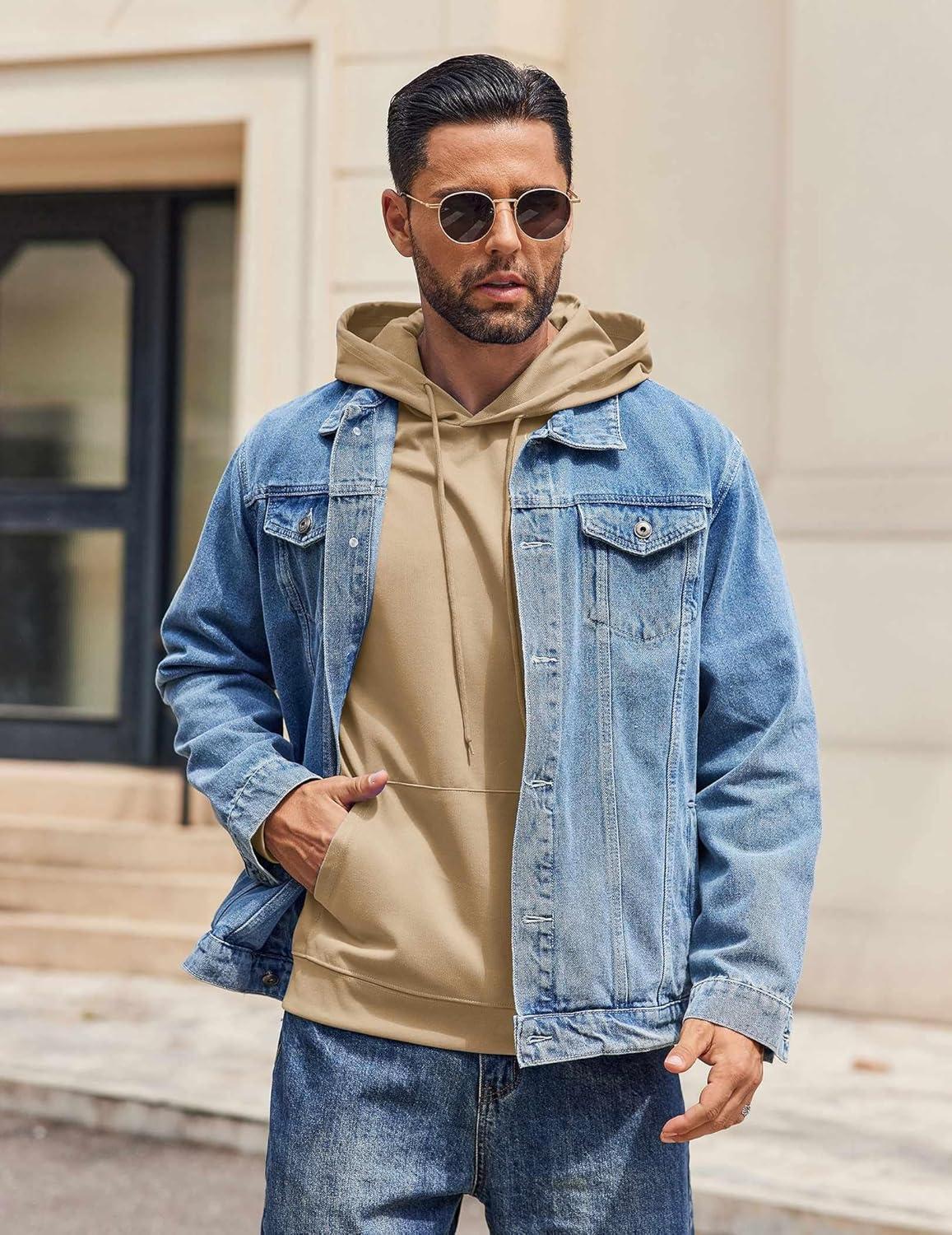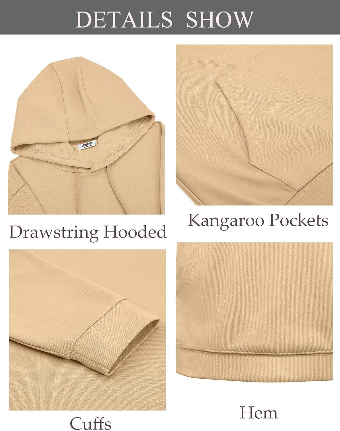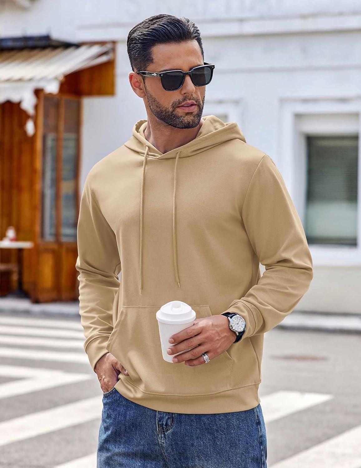 COOFANDY Men's Hoodie Long Sleeve Hooded Pullover Casual Fashion Sweatshirts Drawstring Gym Hooded with Kanga Pocket(Khaki)