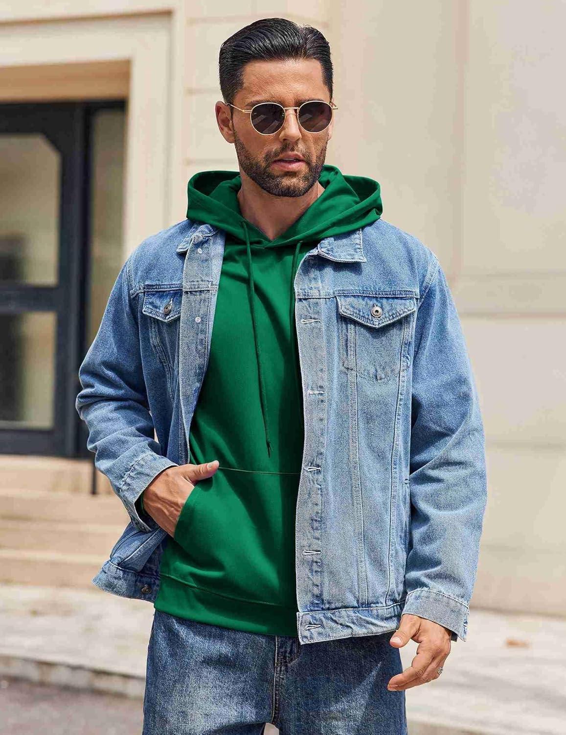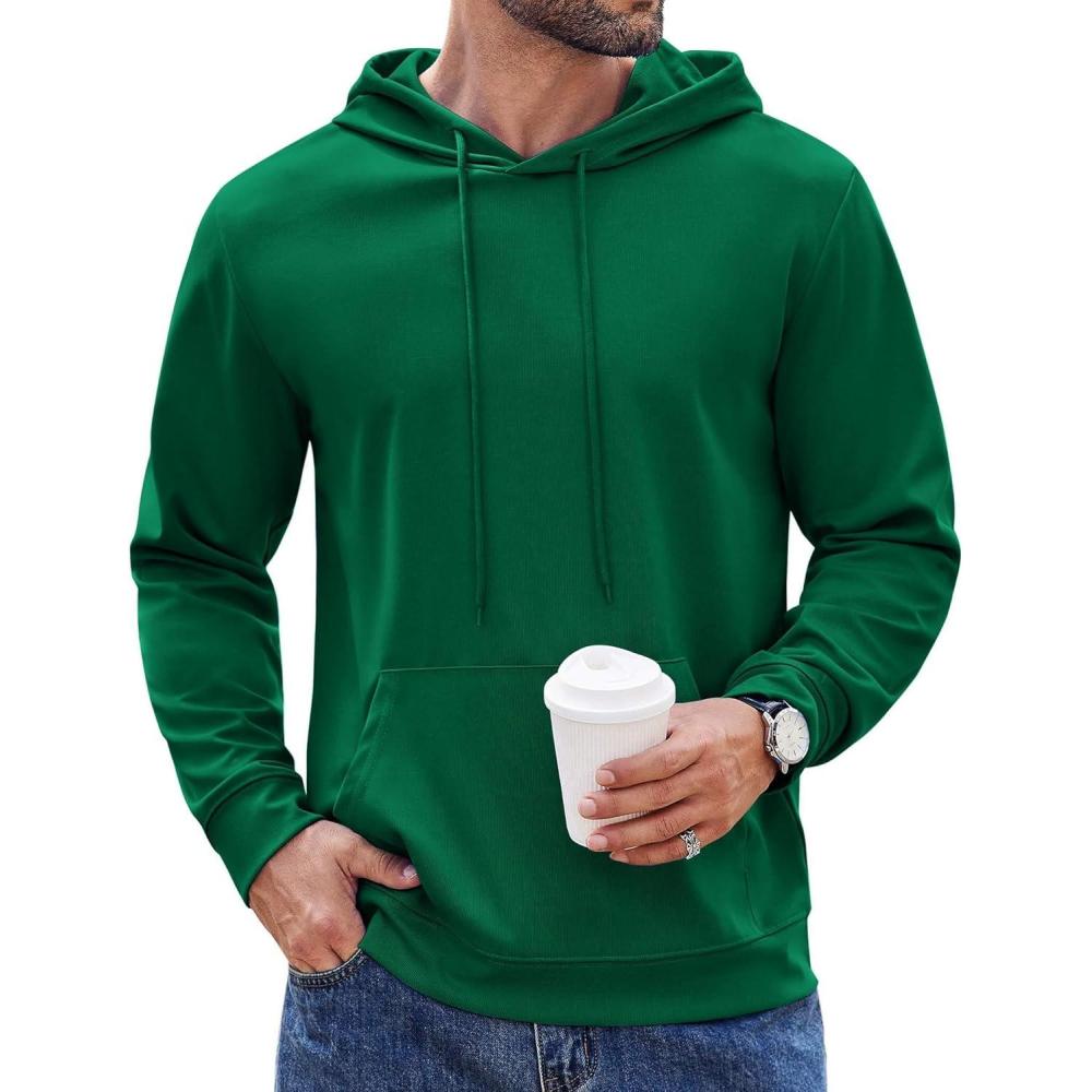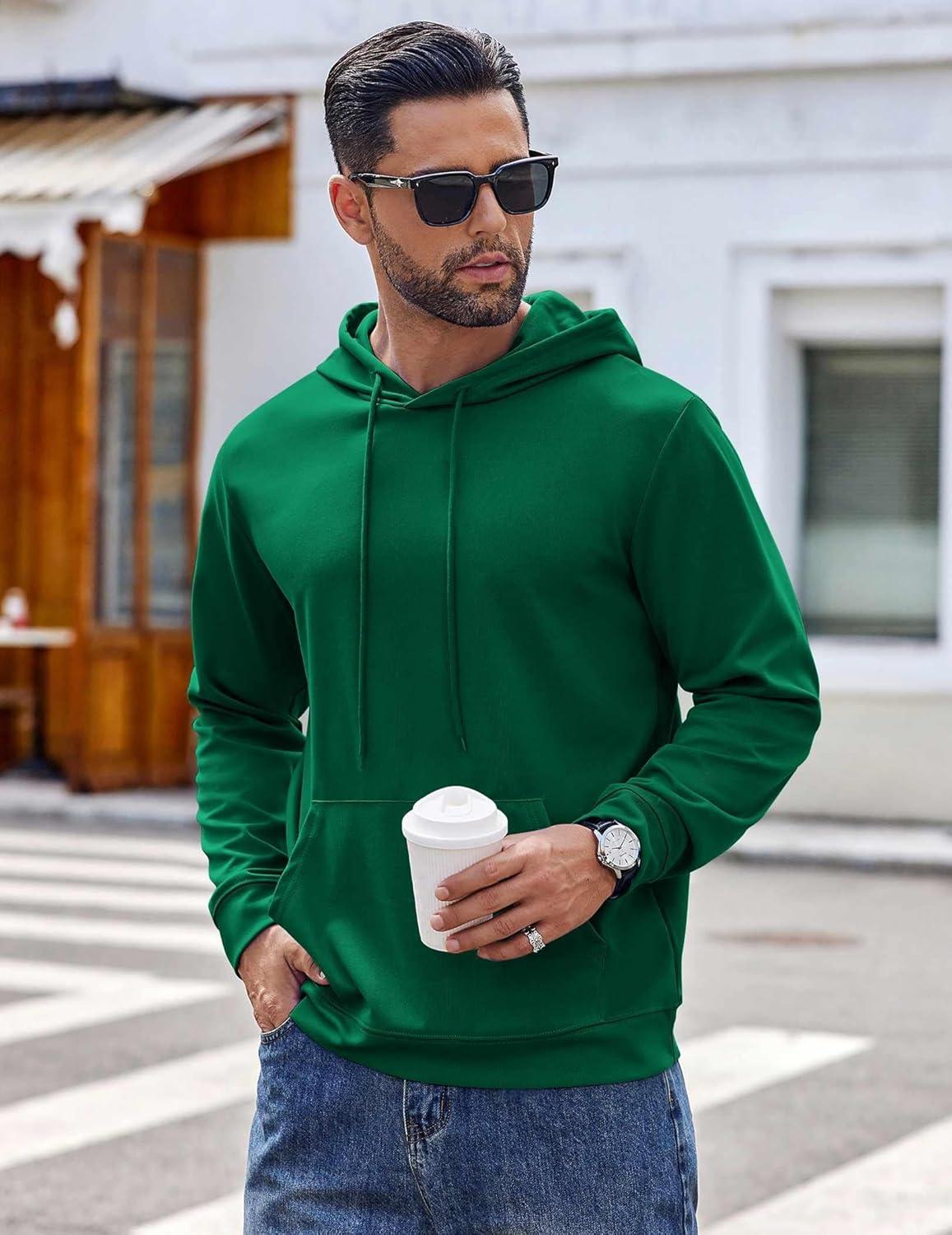 COOFANDY Men’s Hoodie Long Sleeve Hooded Pullover Casual Fashion Sweatshirts Drawstring Gym Hooded with Kanga Pocket(Lake Green)