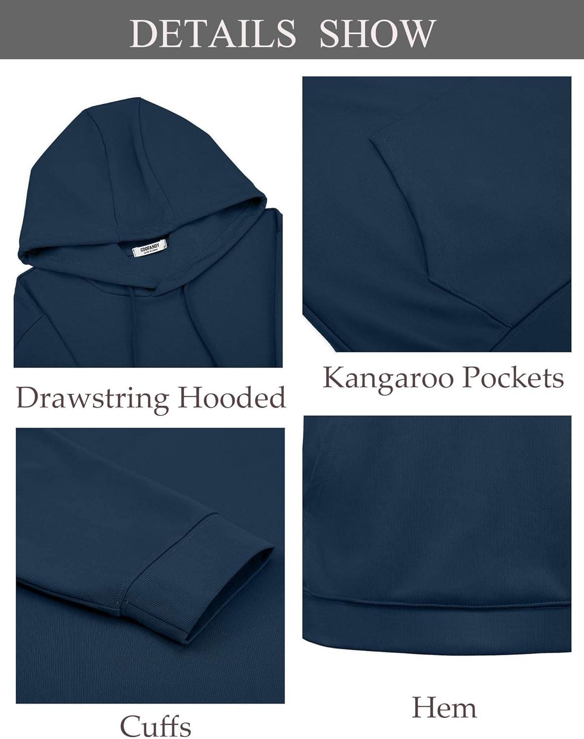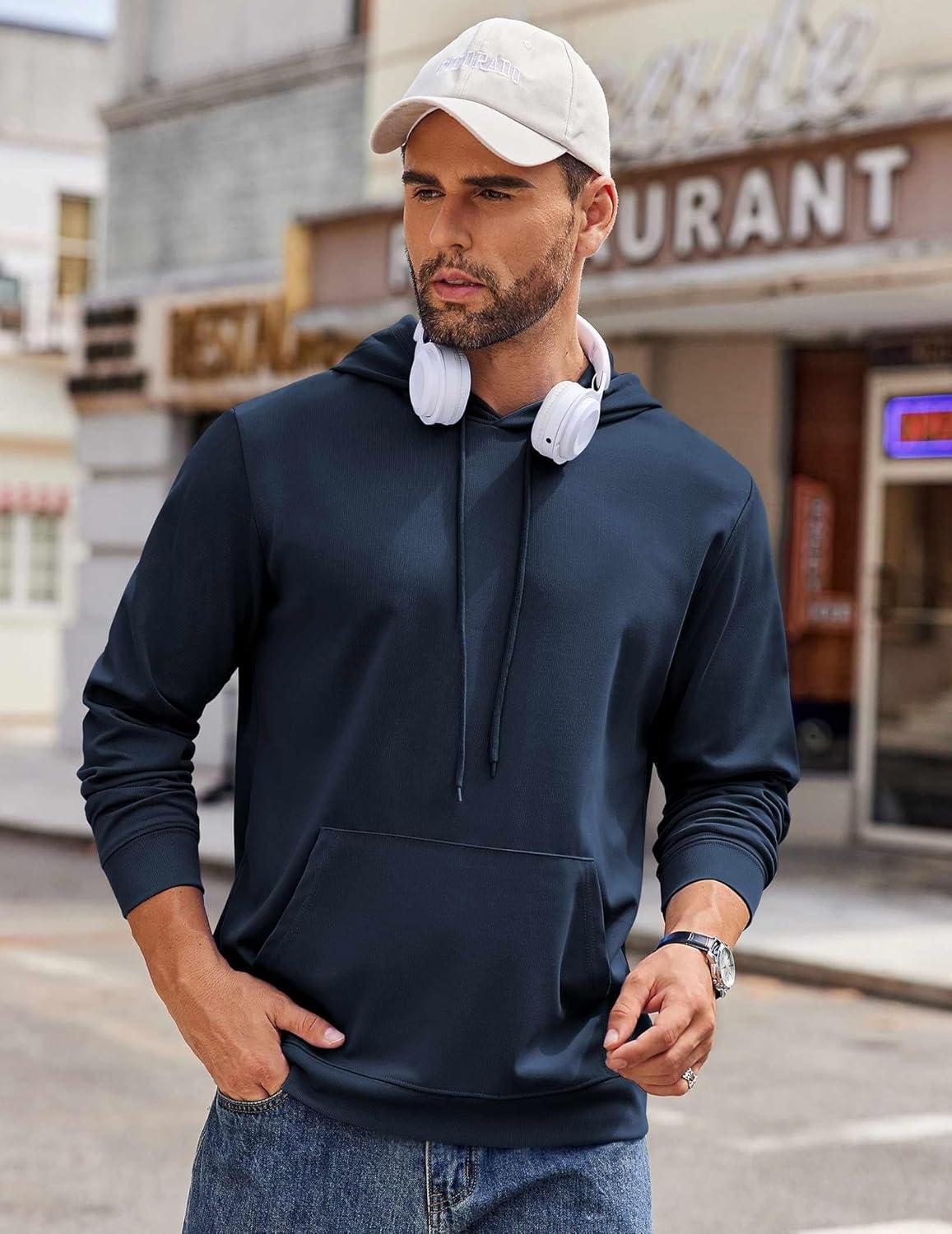 COOFANDY Men’s Hoodie Long Sleeve Hooded Pullover Casual Fashion Sweatshirts Drawstring Gym Hooded with Kanga Pocket(Navy Blue)