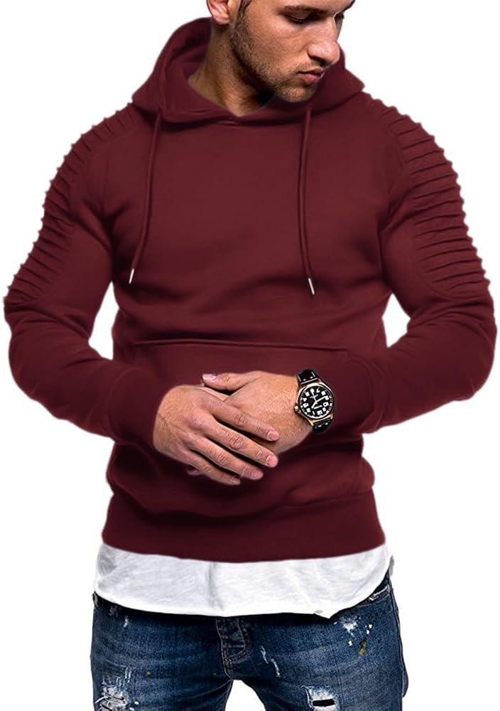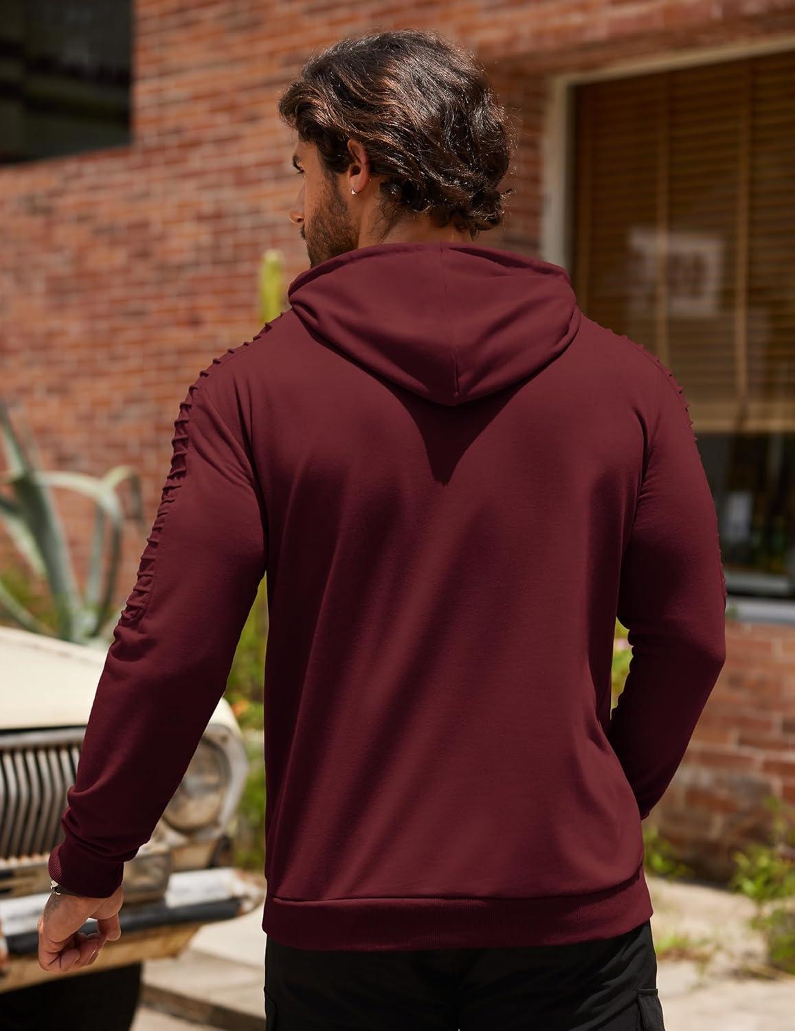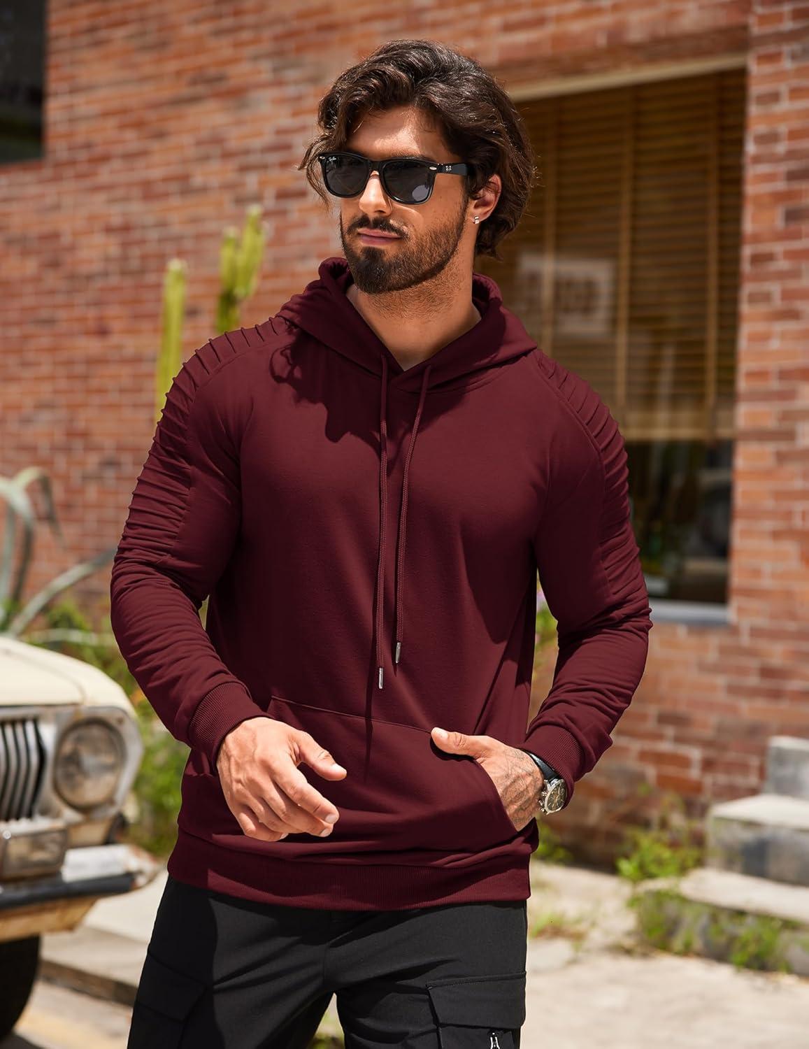 COOFANDY Mens Hoodie Sweatshirts Casual Drawstring Hoodies Fashion Hooded Collar Athletic Pullover with Pocket(Burgundy)