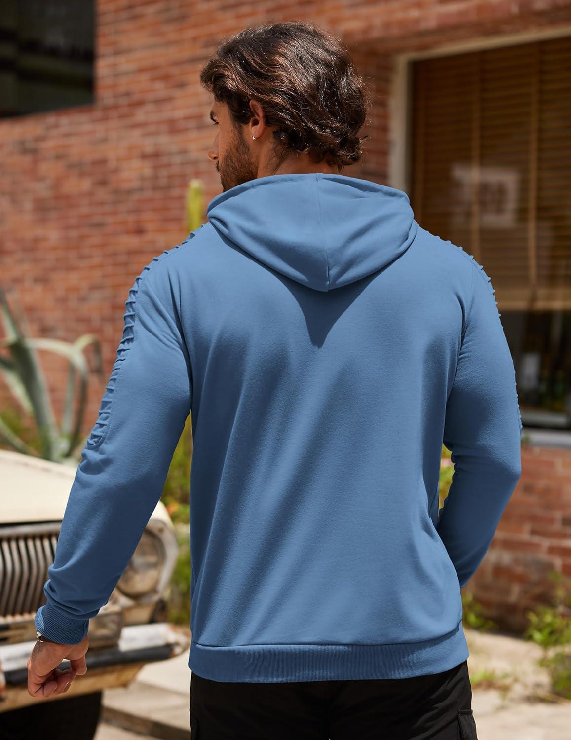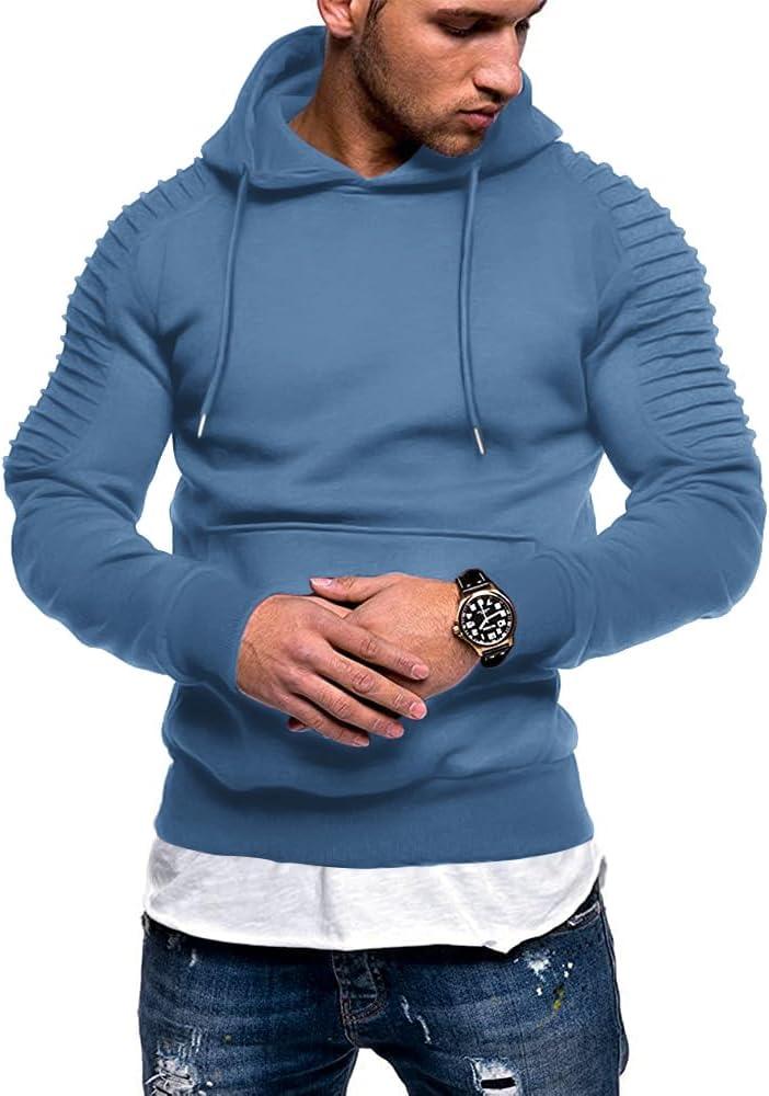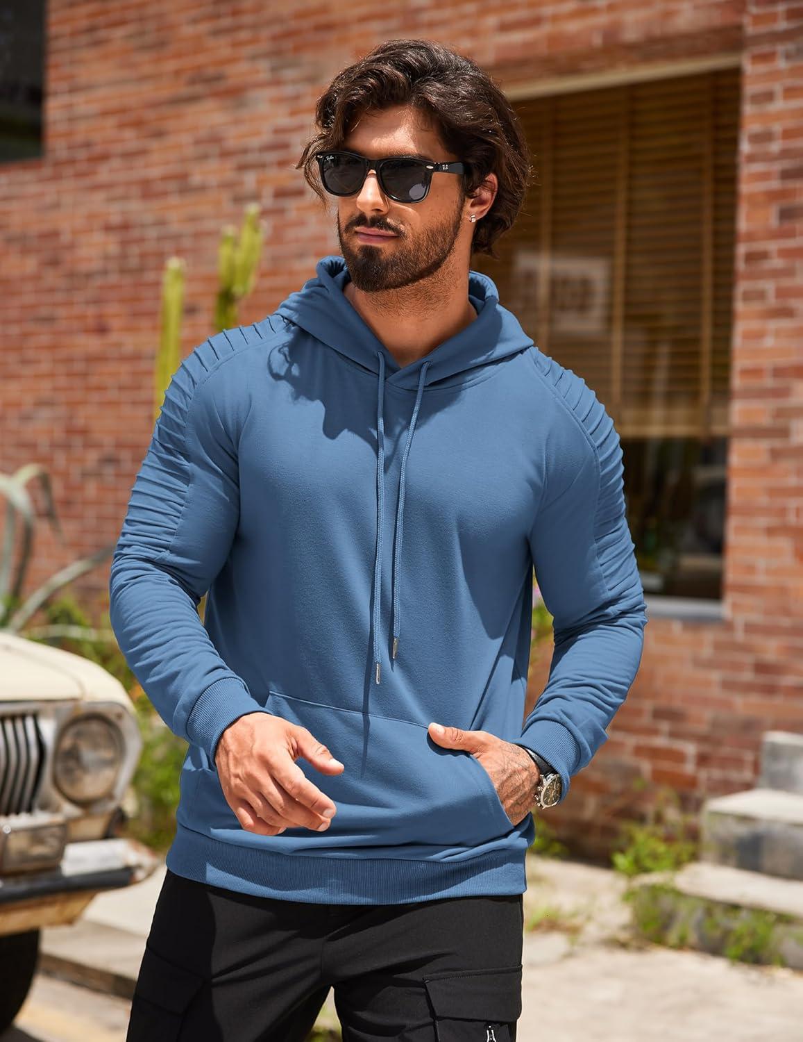 COOFANDY Mens Hoodie Sweatshirts Casual Drawstring Hoodies Fashion Hooded Collar Athletic Pullover with Pocket(Dark Blue)
