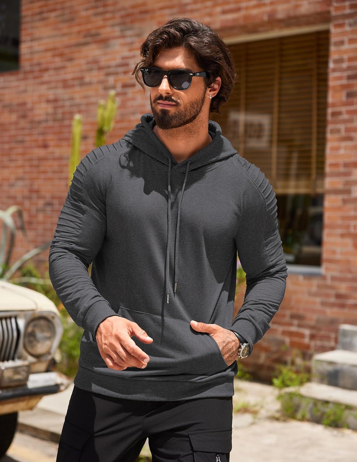 COOFANDY Mens Hoodie Sweatshirts Casual Drawstring Hoodies Fashion Hooded Collar Athletic Pullover with Pocket(Dark Gray)