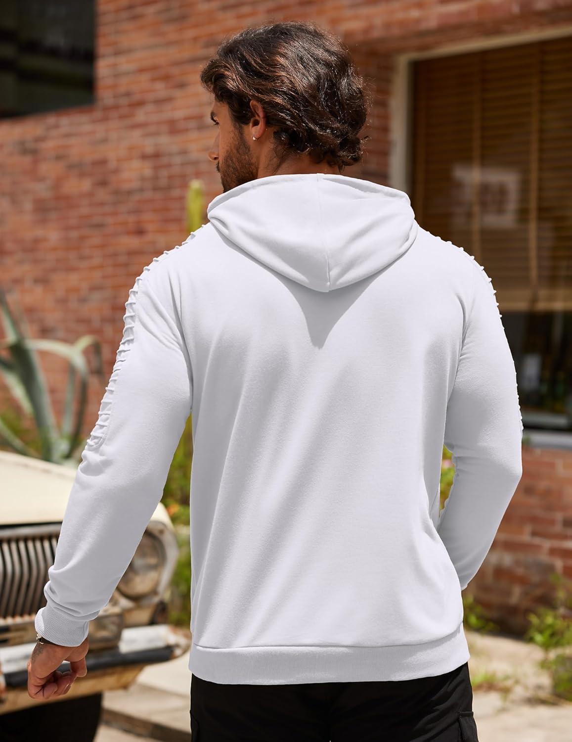 COOFANDY Mens Hoodie Sweatshirts Casual Drawstring Hoodies Fashion Hooded Collar Athletic Pullover with Pocket(White)