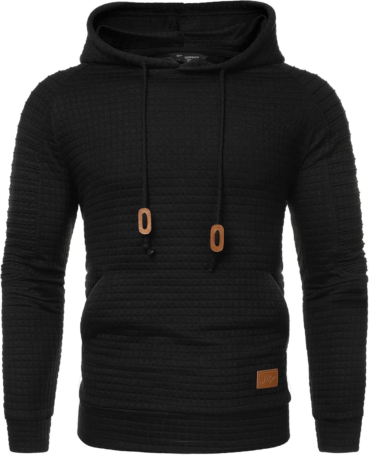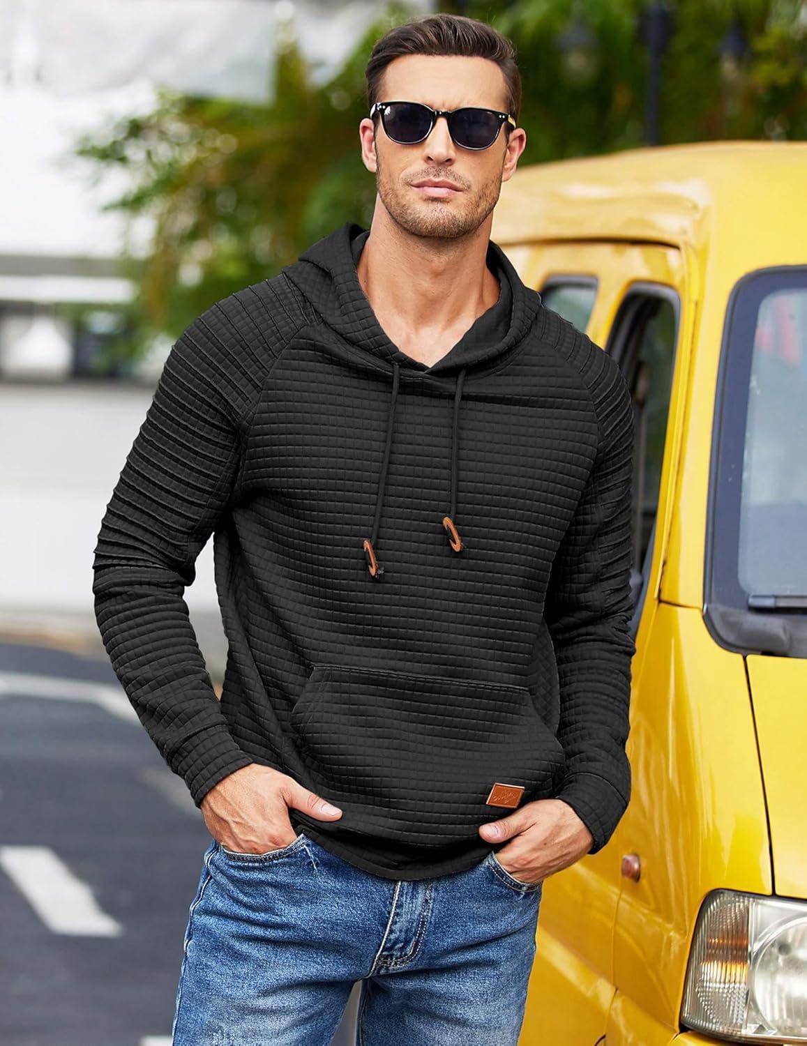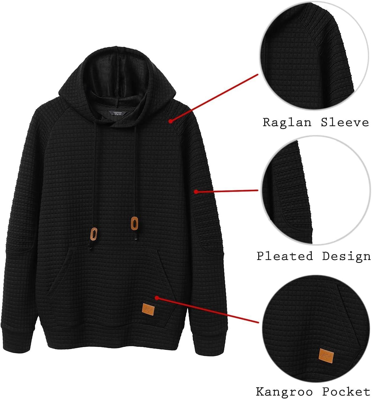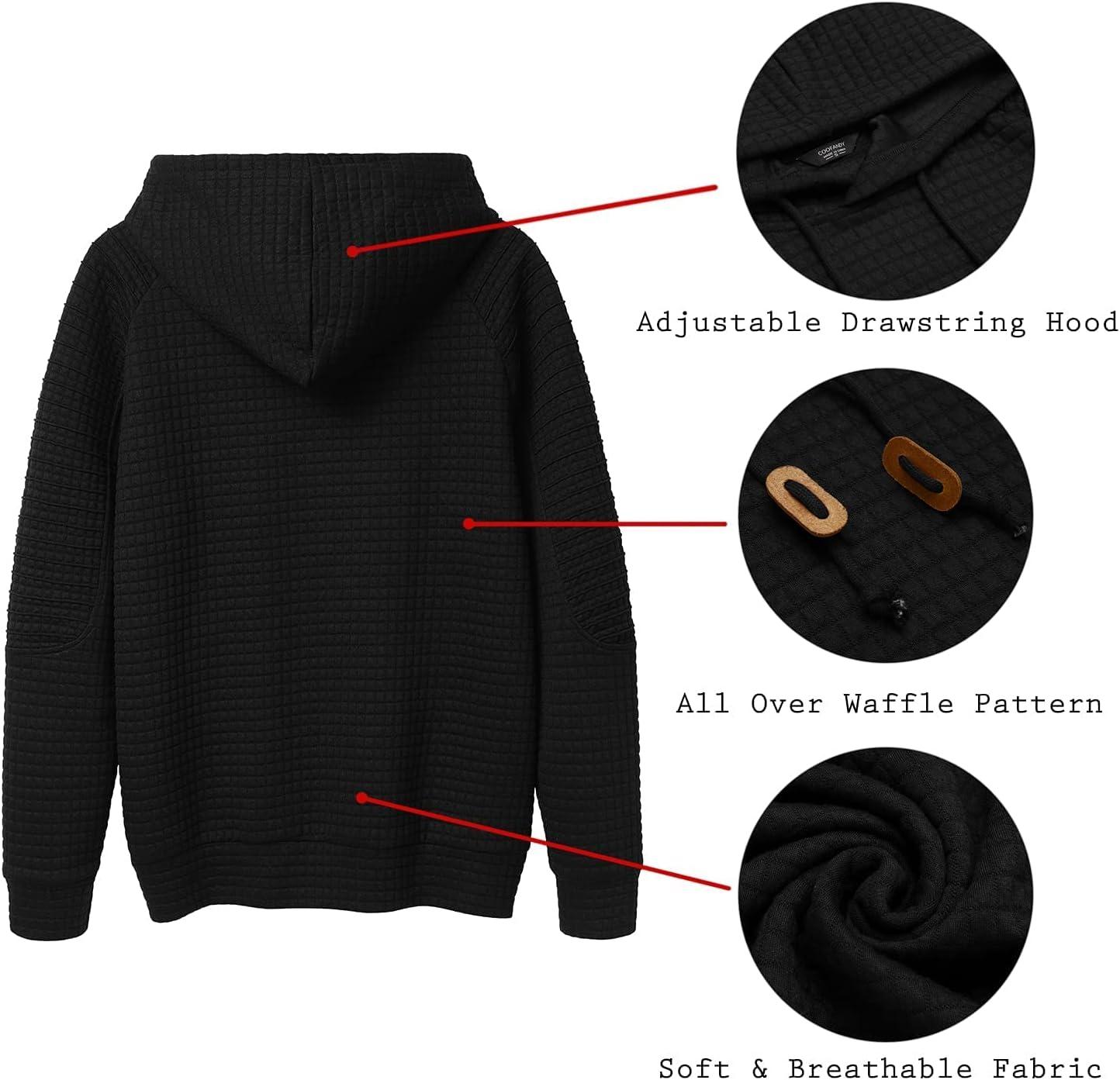 COOFANDY Mens Hoodies Pullover Casaul Long Sleeve Drawstring Waffle Knit Hooded Sweatshirt with Kanga Pocket(Black)