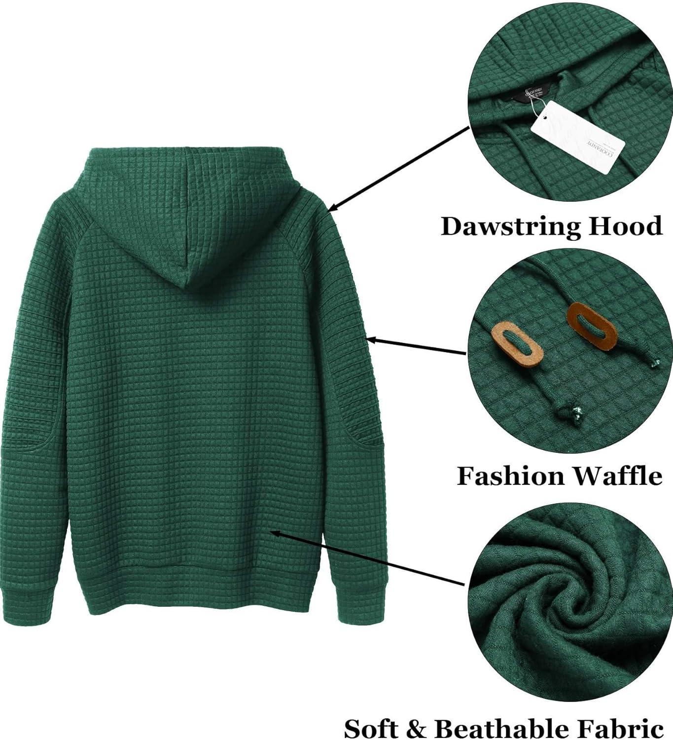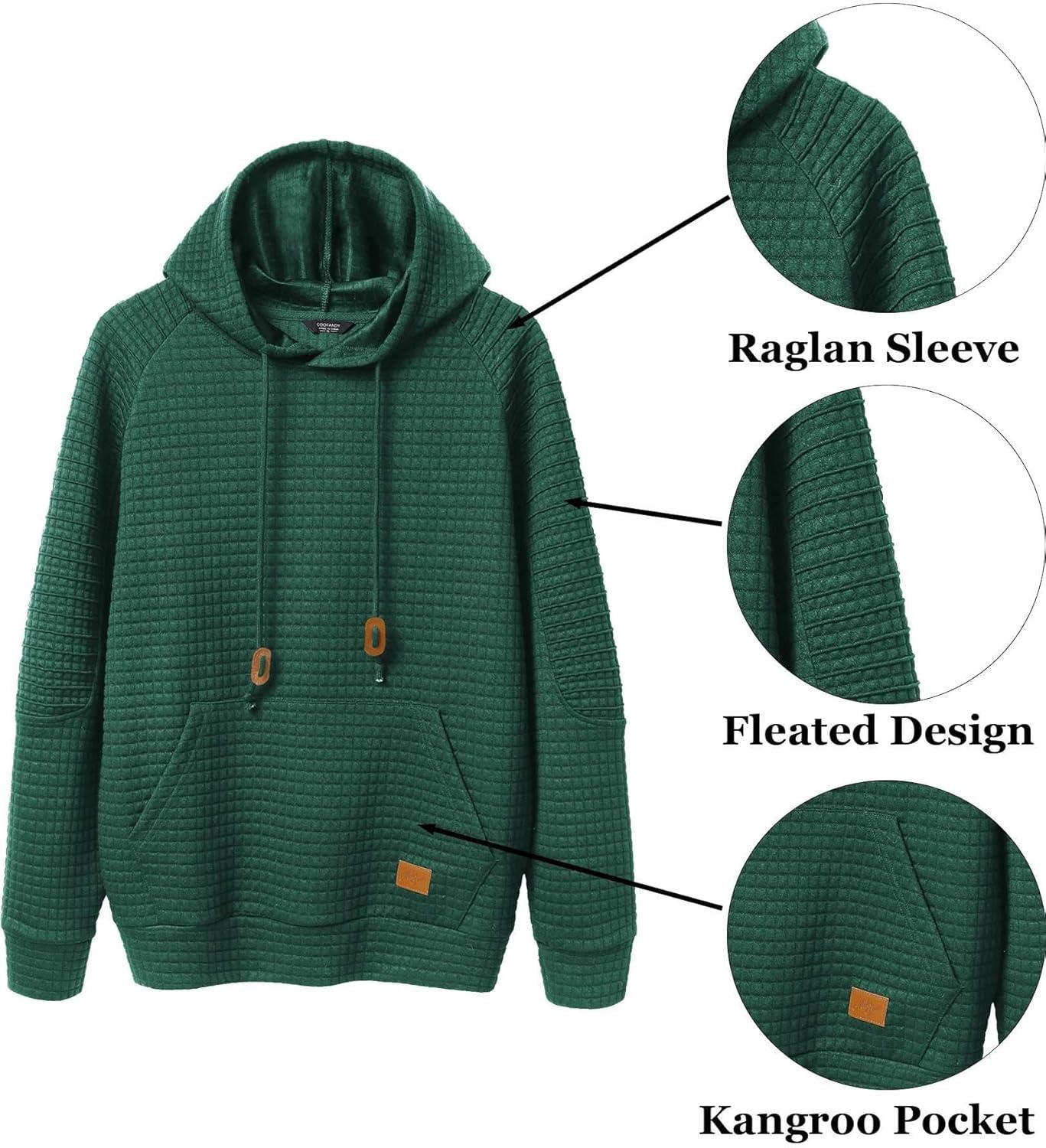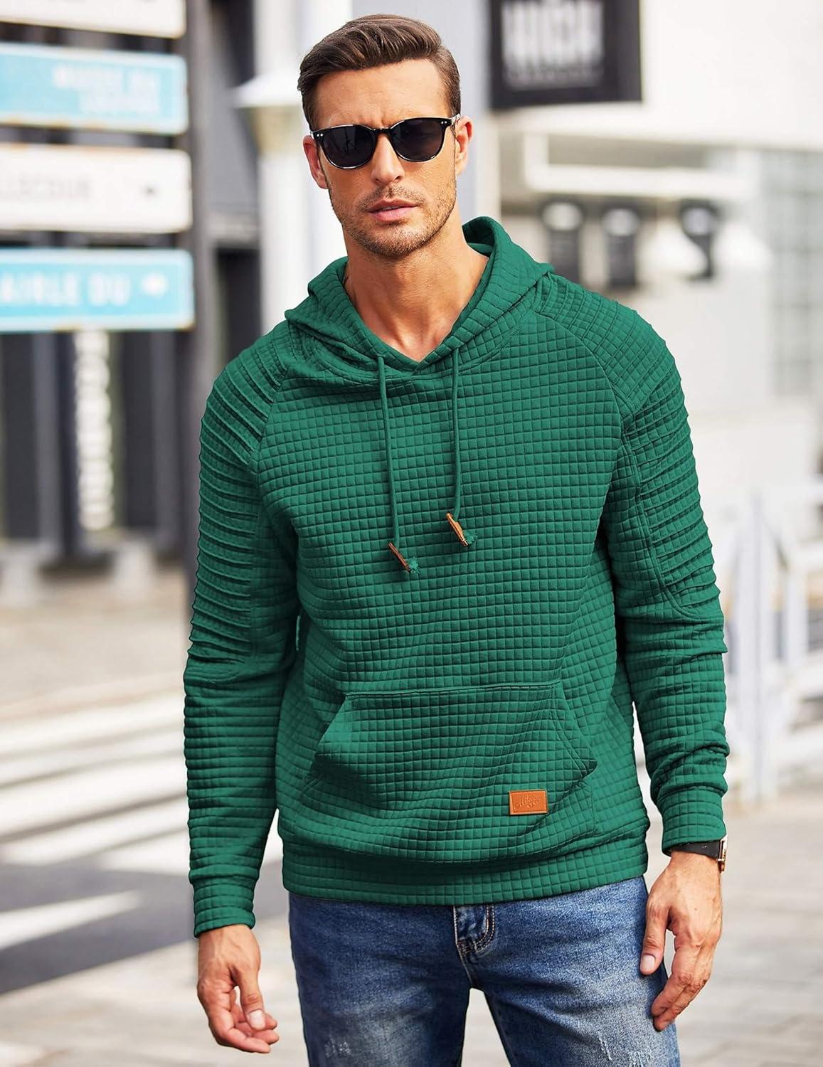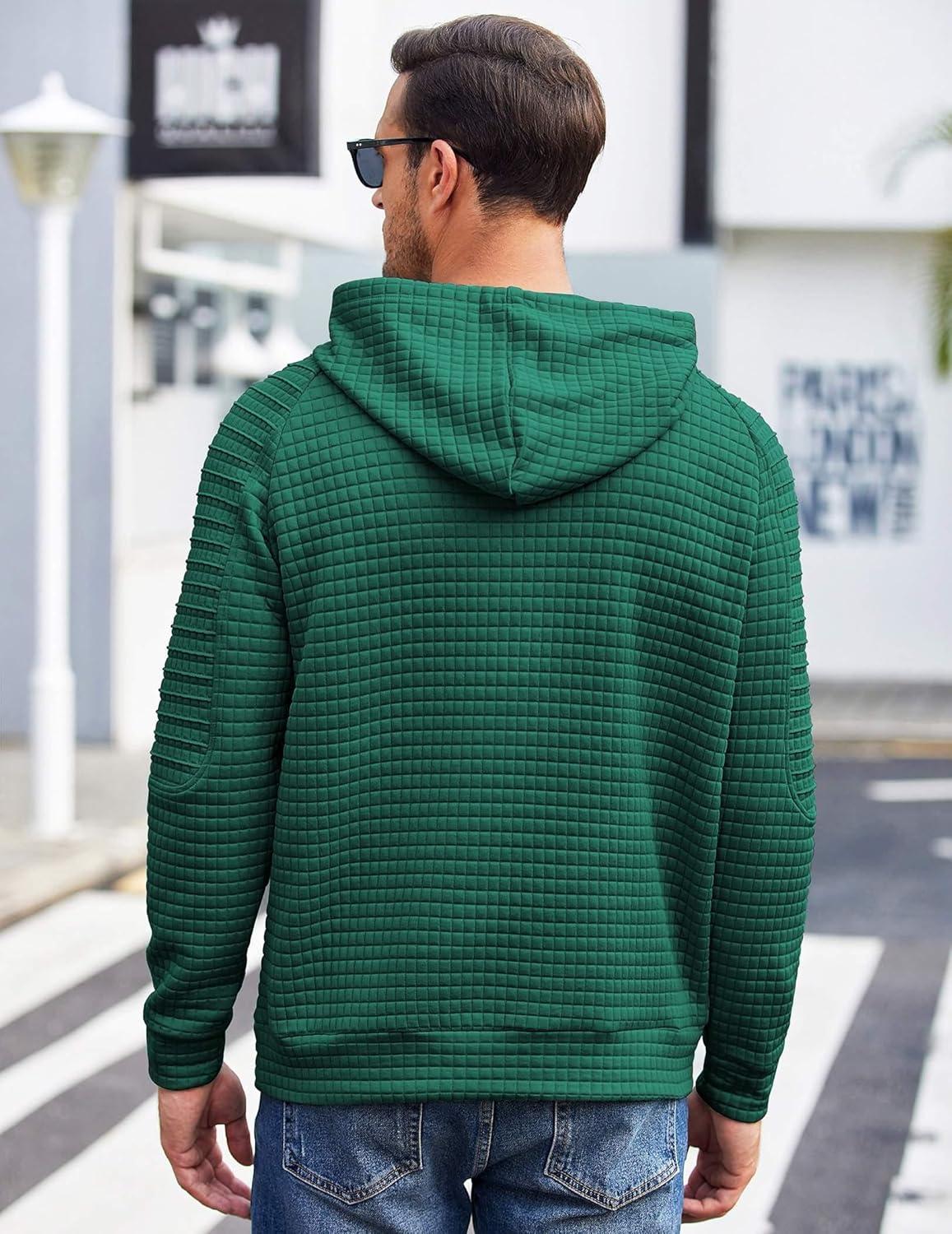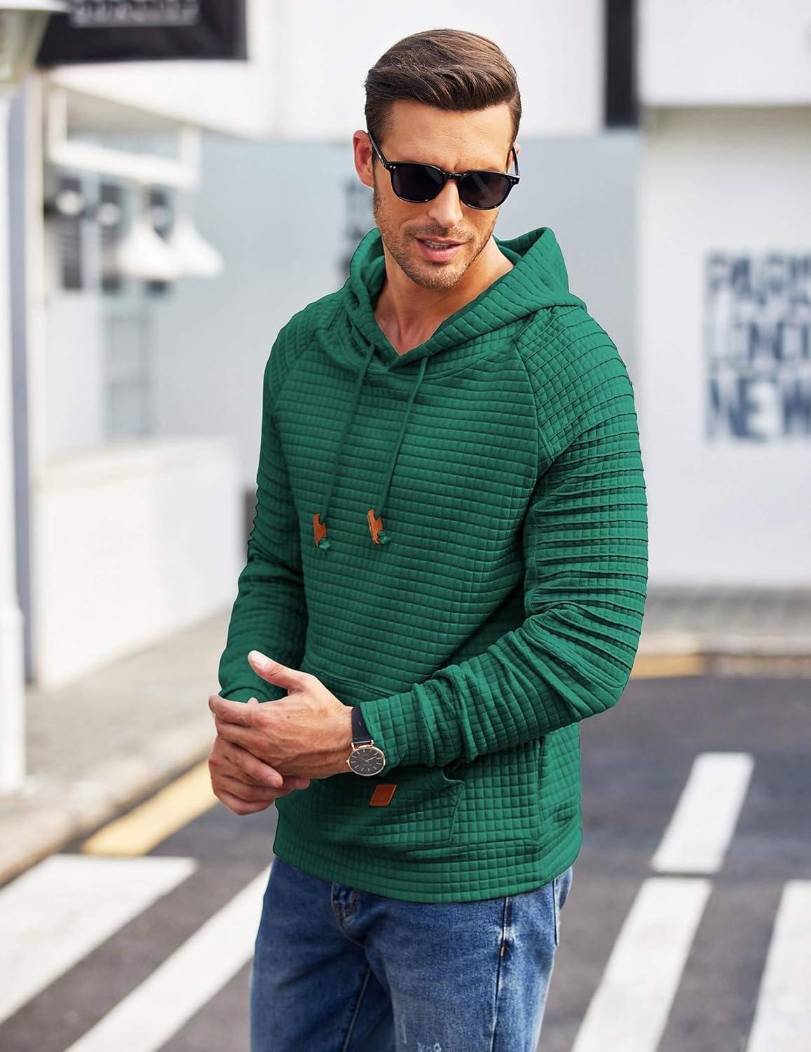 COOFANDY Mens Hoodies Pullover Casaul Long Sleeve Drawstring Waffle Knit Hooded Sweatshirt with Kanga Pocket(Green)
