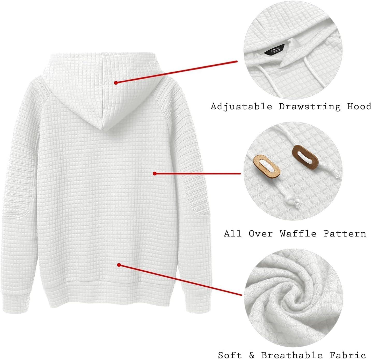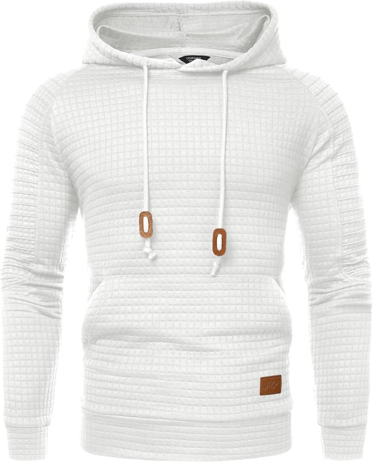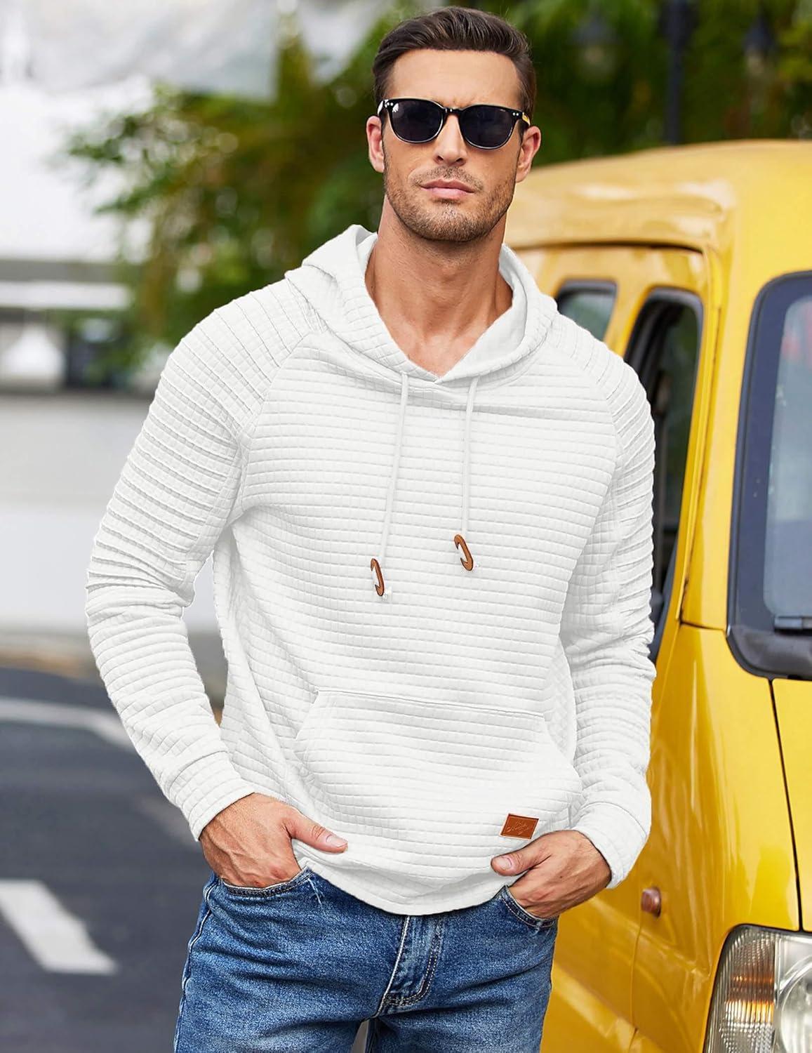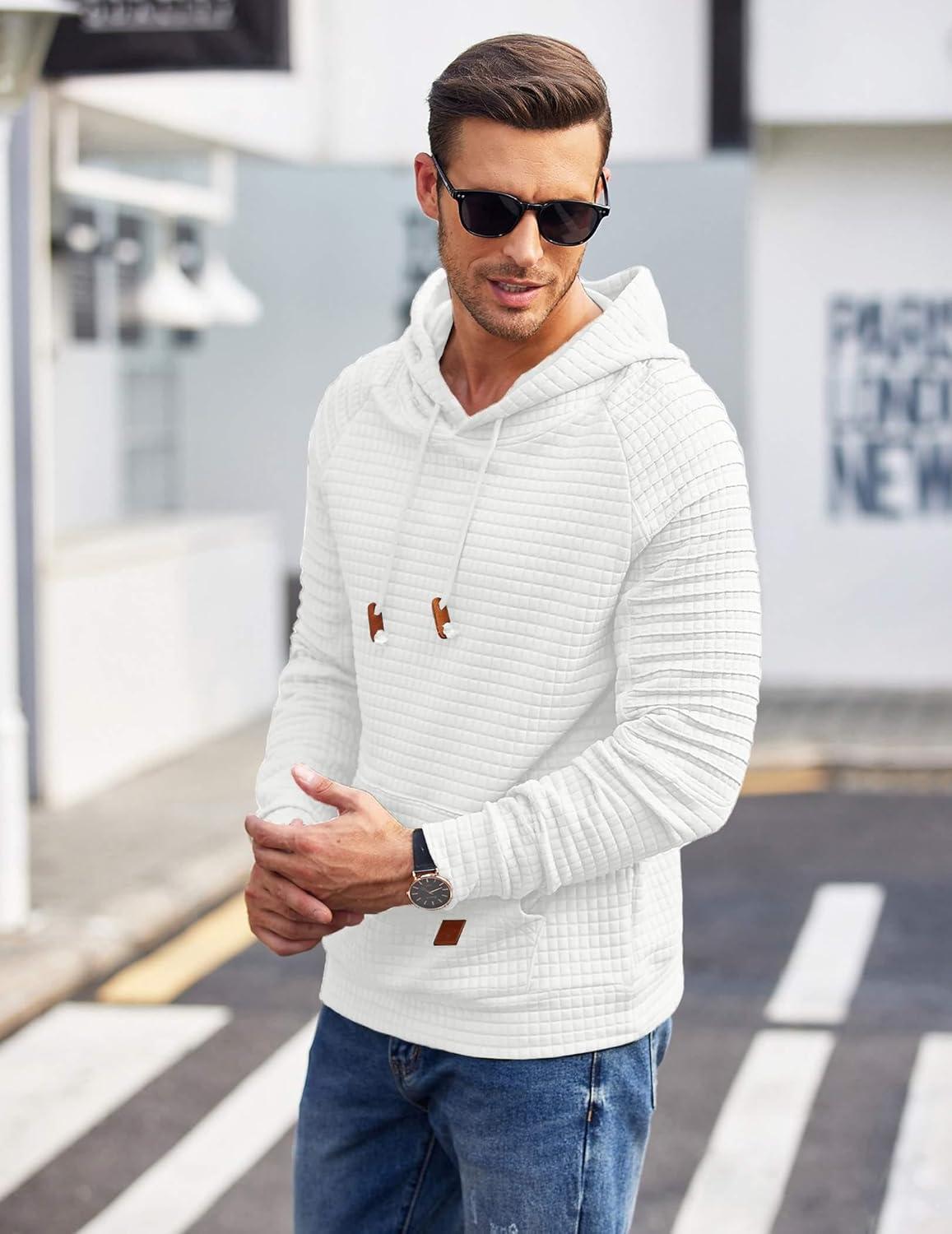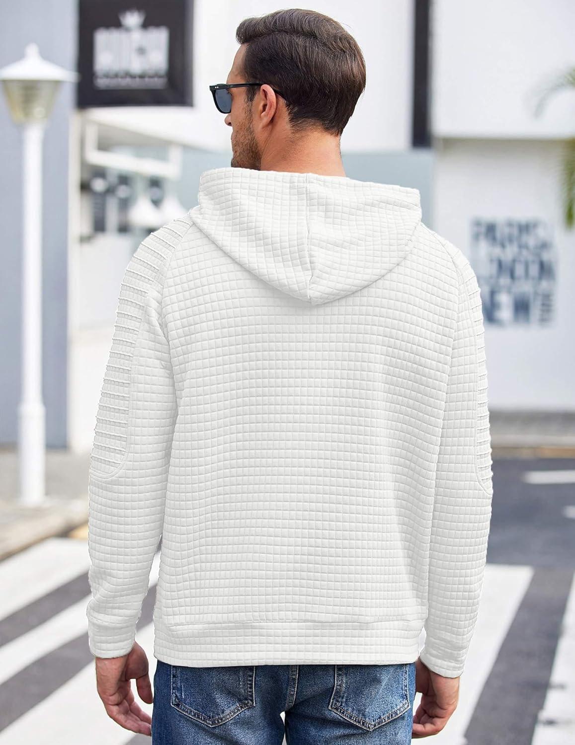 COOFANDY Mens Hoodies Pullover Casaul Long Sleeve Drawstring Waffle Knit Hooded Sweatshirt with Kanga Pocket(White)