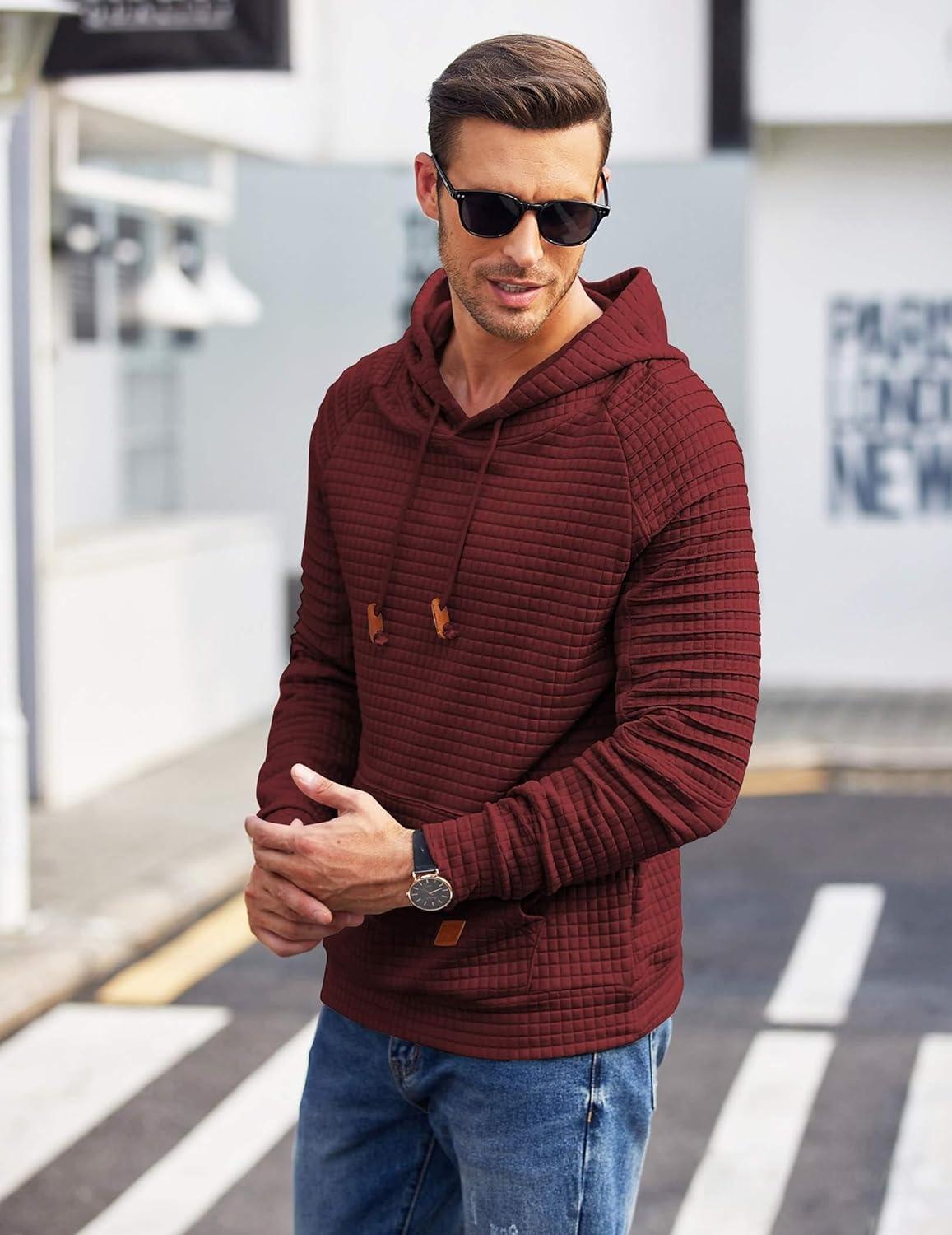 Save up to 40% on COOFANDY Mens Hoodies Pullover Casaul Long Sleeve Drawstring Waffle Knit Hooded Sweatshirt with Kanga Pocket(Wine Red) styles during our end-of-season sale.