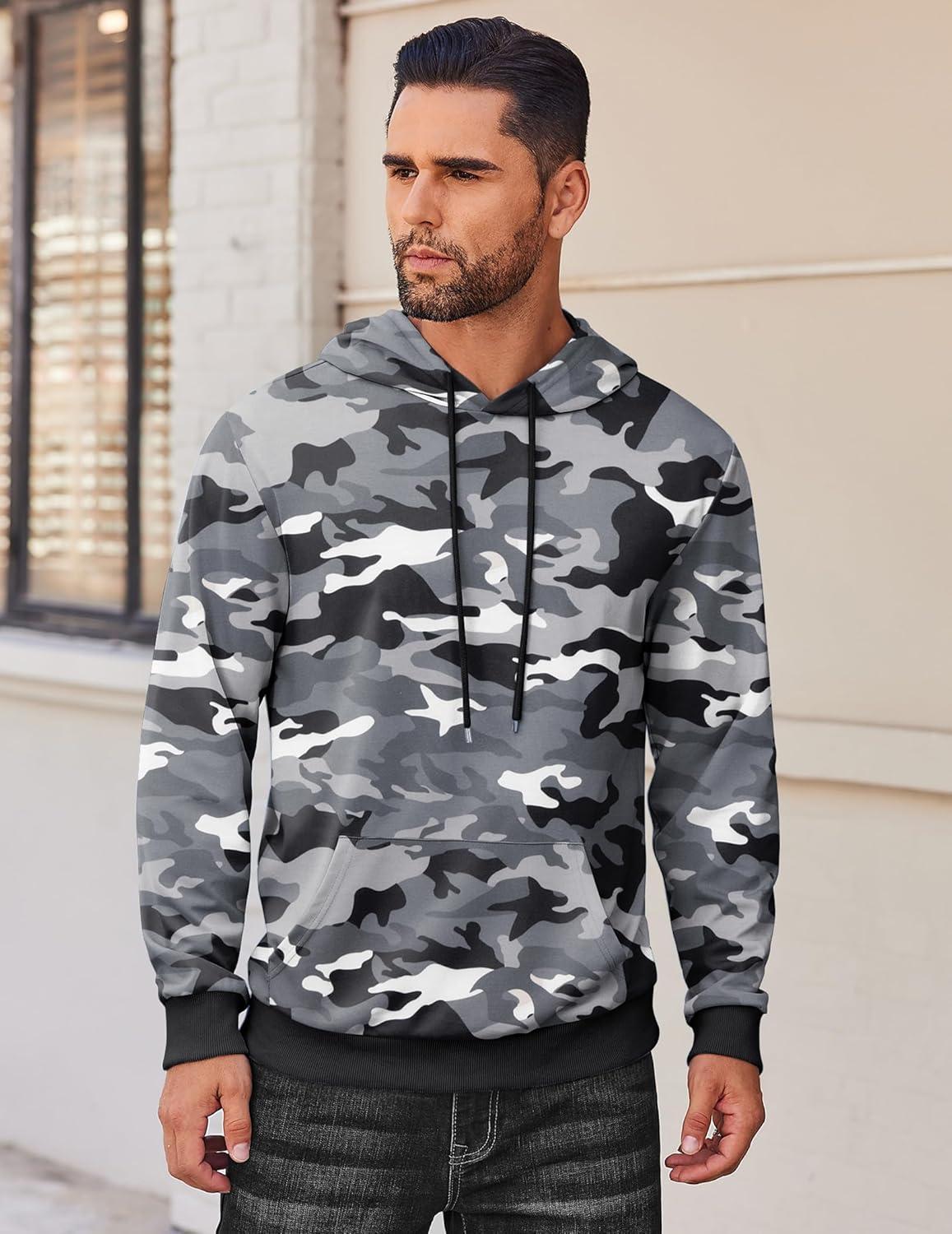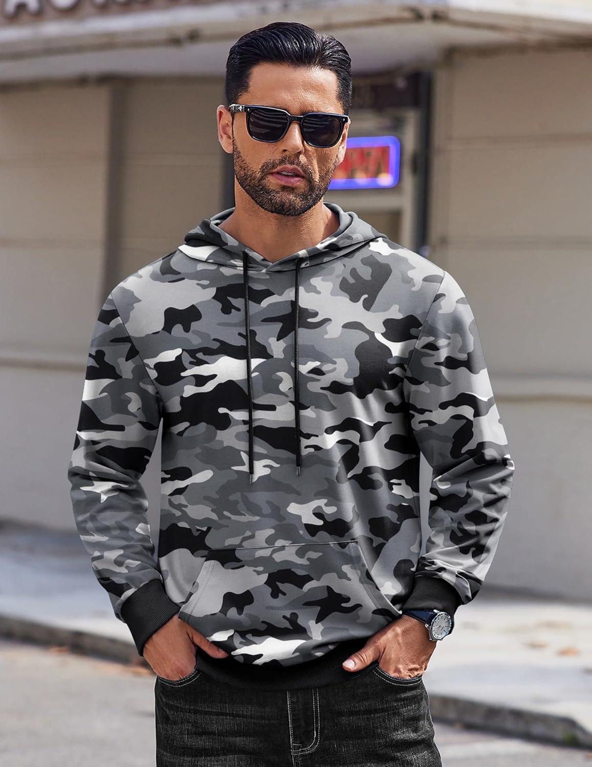 COOFANDY Mens Hoodies Pullover Long Sleeve Casual Fashion Sweatshirts Drawstring Gym Hooded Shirt with Kanga Pocket(Dark Camo)