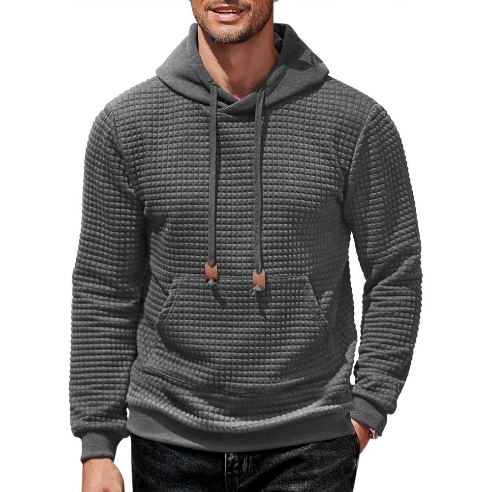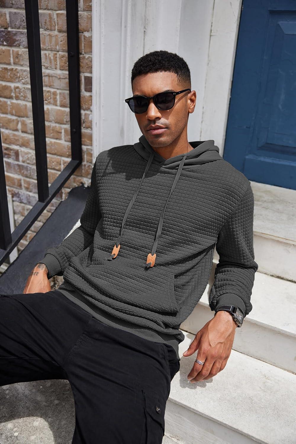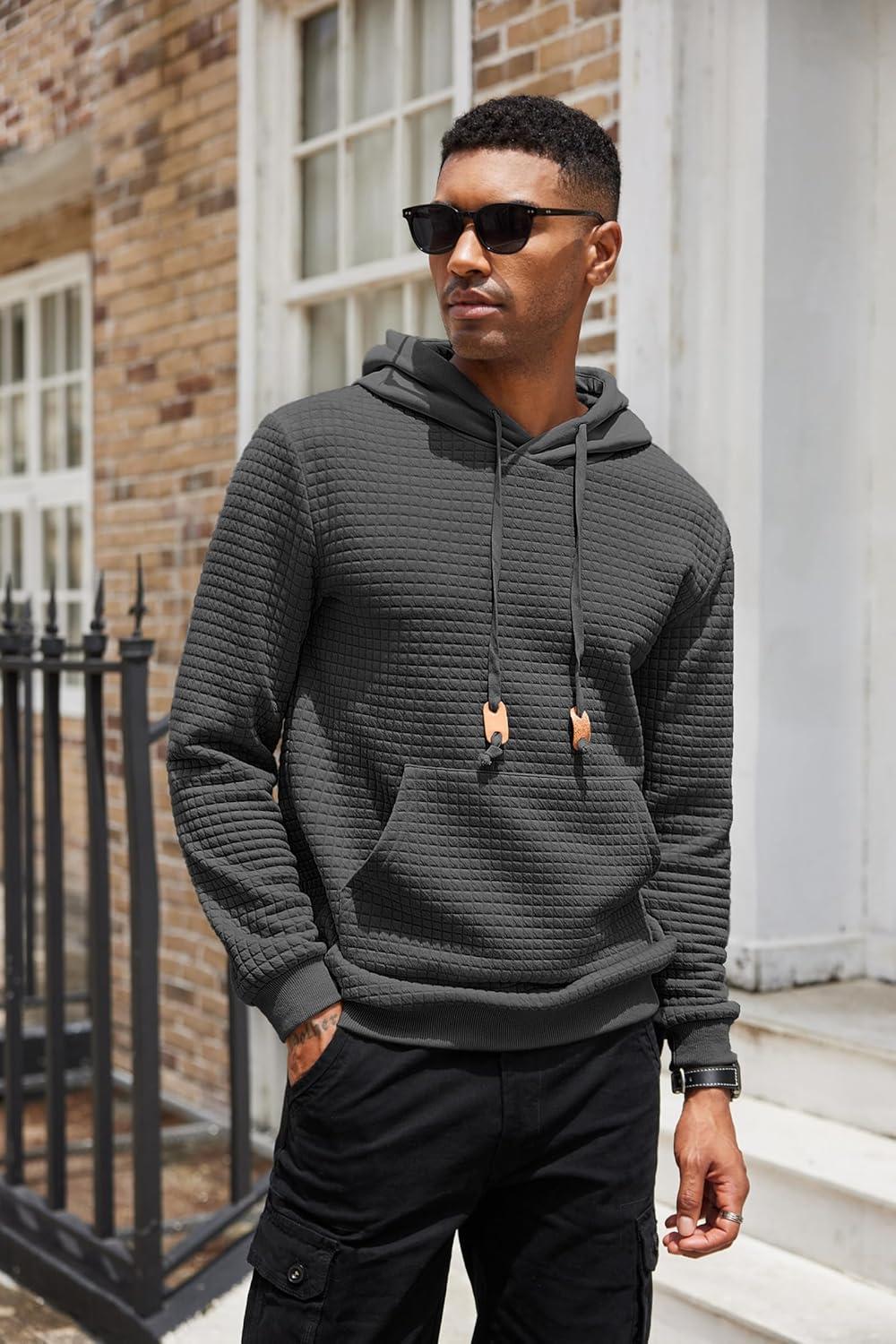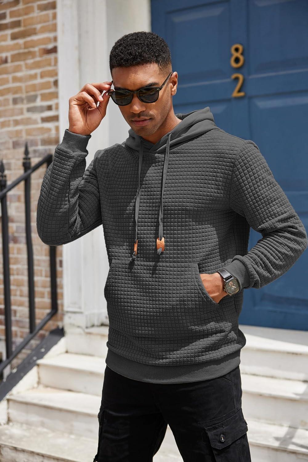 COOFANDY Mens Hoodies Sweatshirts Long Sleeve Fashion Waffle Knit Pullover Hoodie with Pocket(Dark Grey)