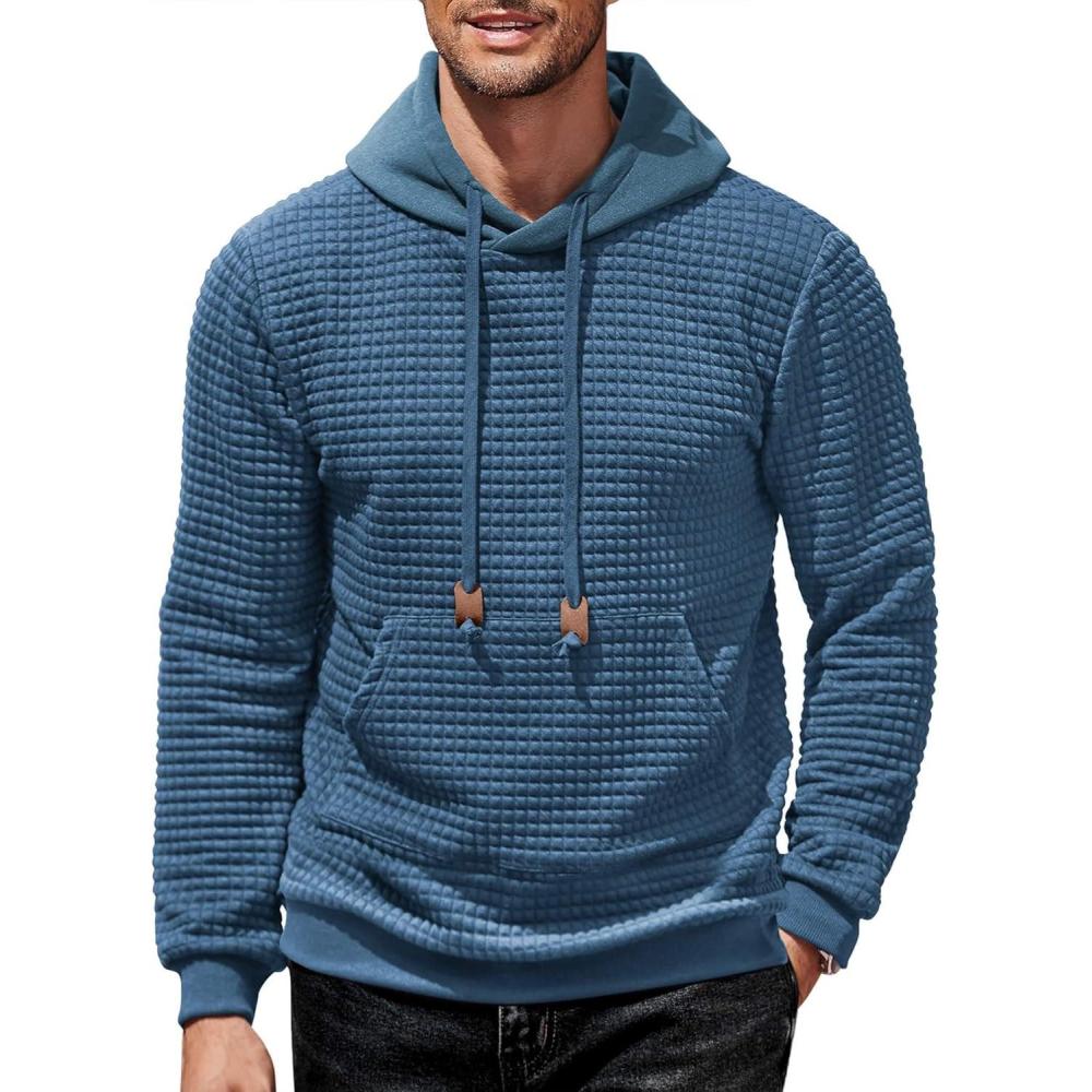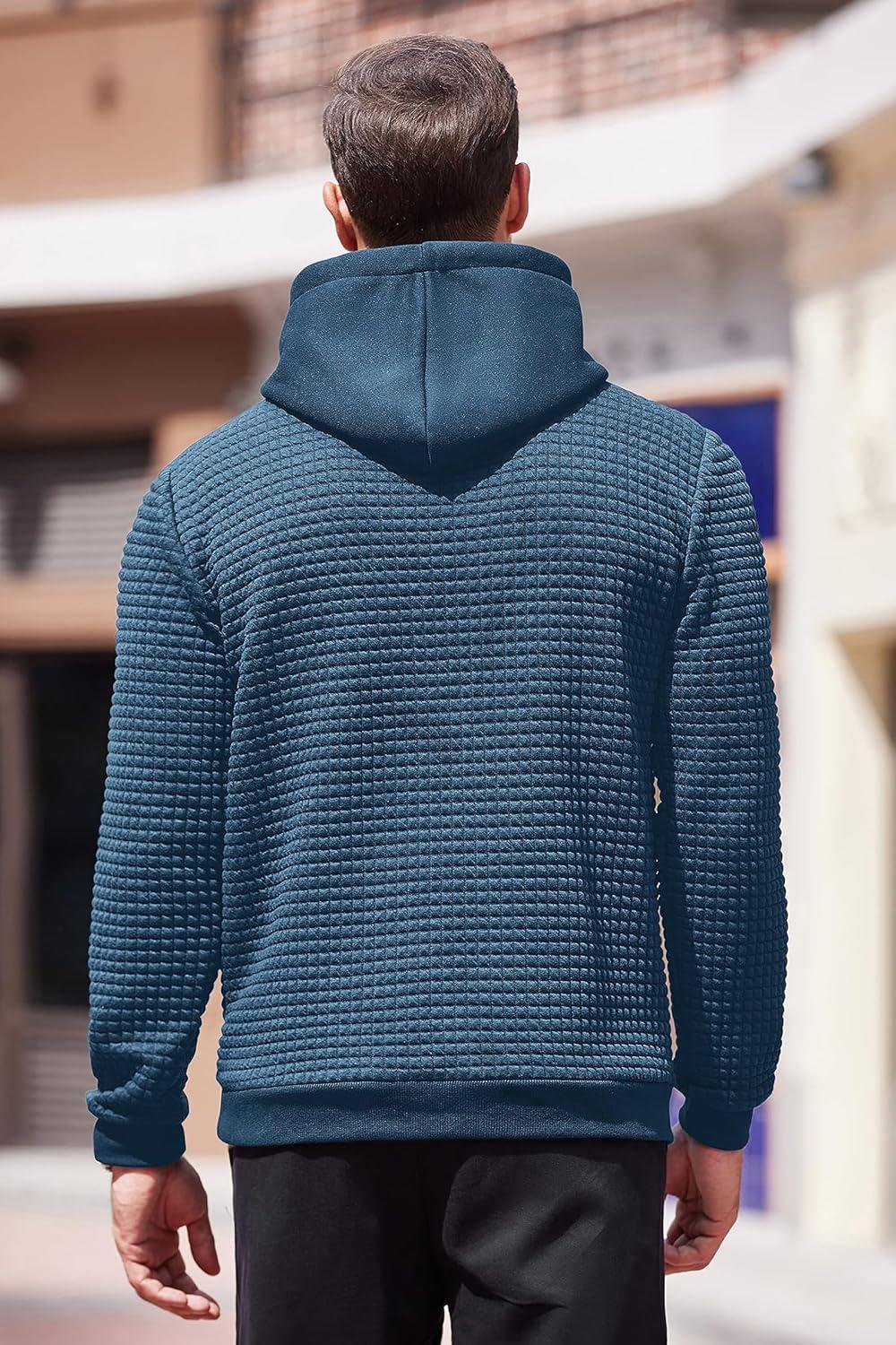 COOFANDY Mens Hoodies Sweatshirts Long Sleeve Fashion Waffle Knit Pullover Hoodie with Pocket(Deep Blue)