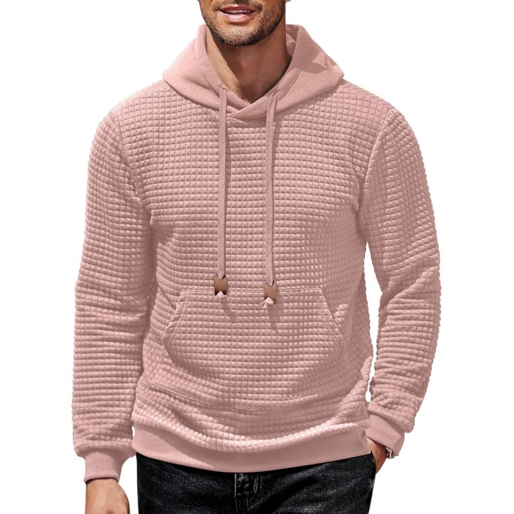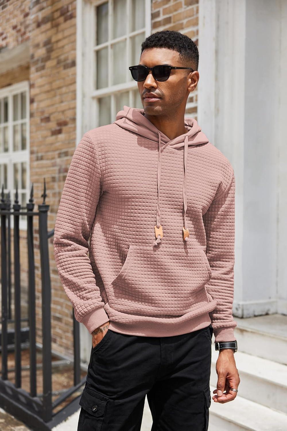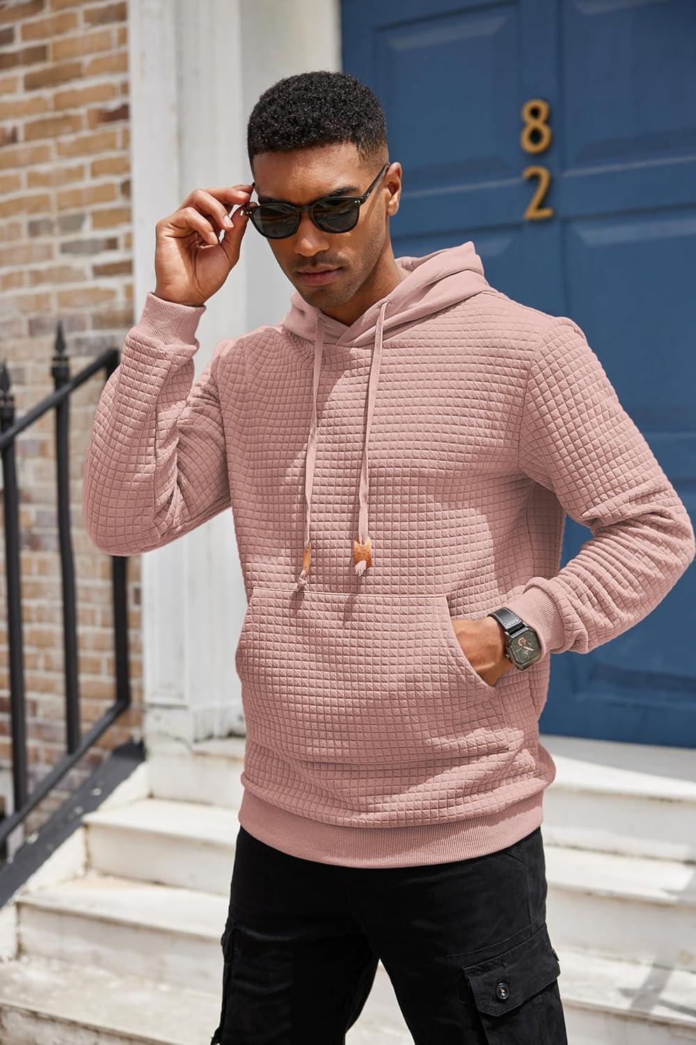 COOFANDY Mens Hoodies Sweatshirts Long Sleeve Fashion Waffle Knit Pullover Hoodie with Pocket(Pale Pink)