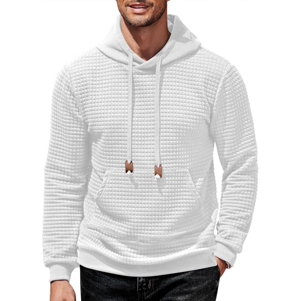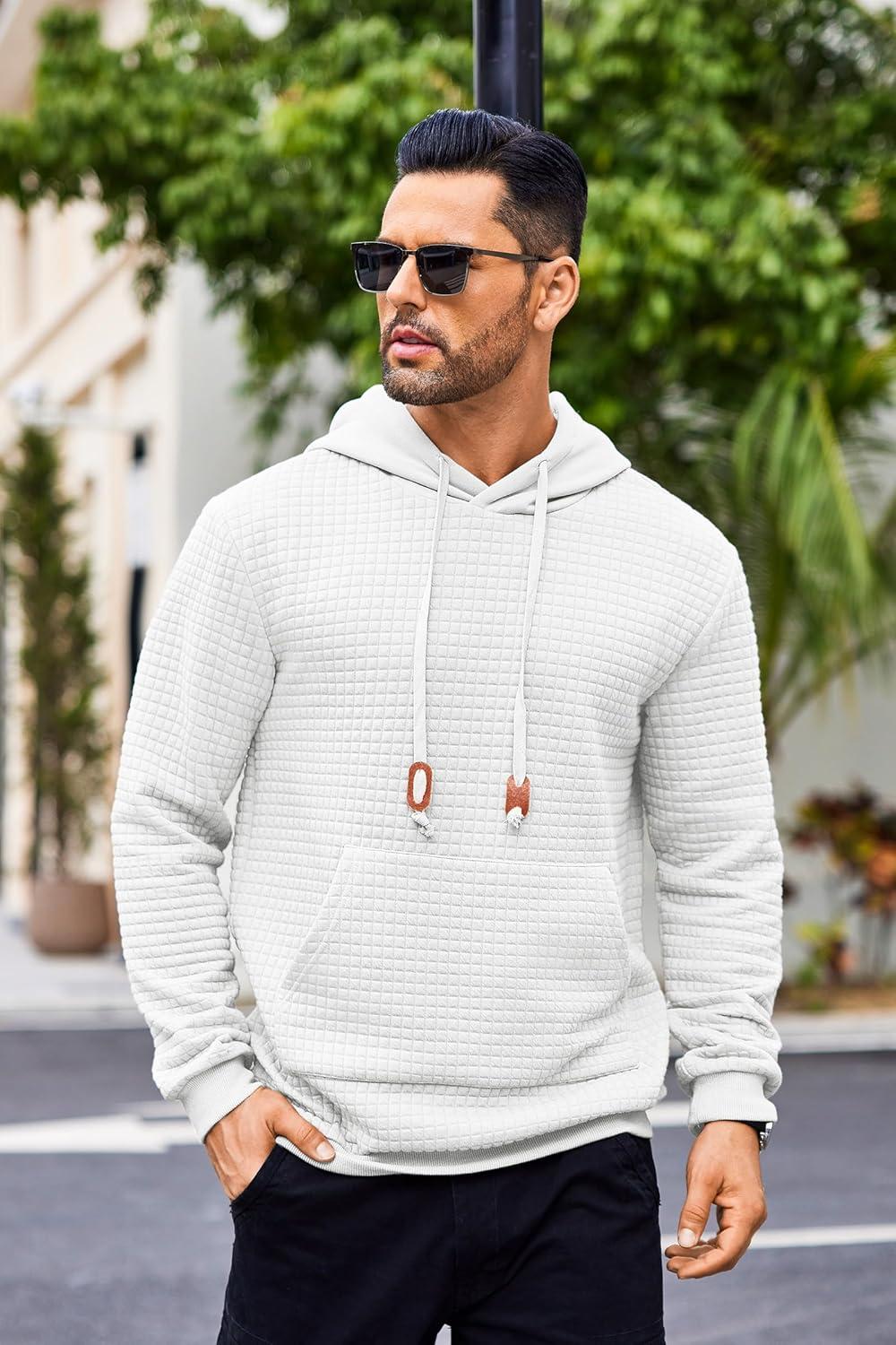 COOFANDY Mens Hoodies Sweatshirts Long Sleeve Fashion Waffle Knit Pullover Hoodie with Pocket(White)