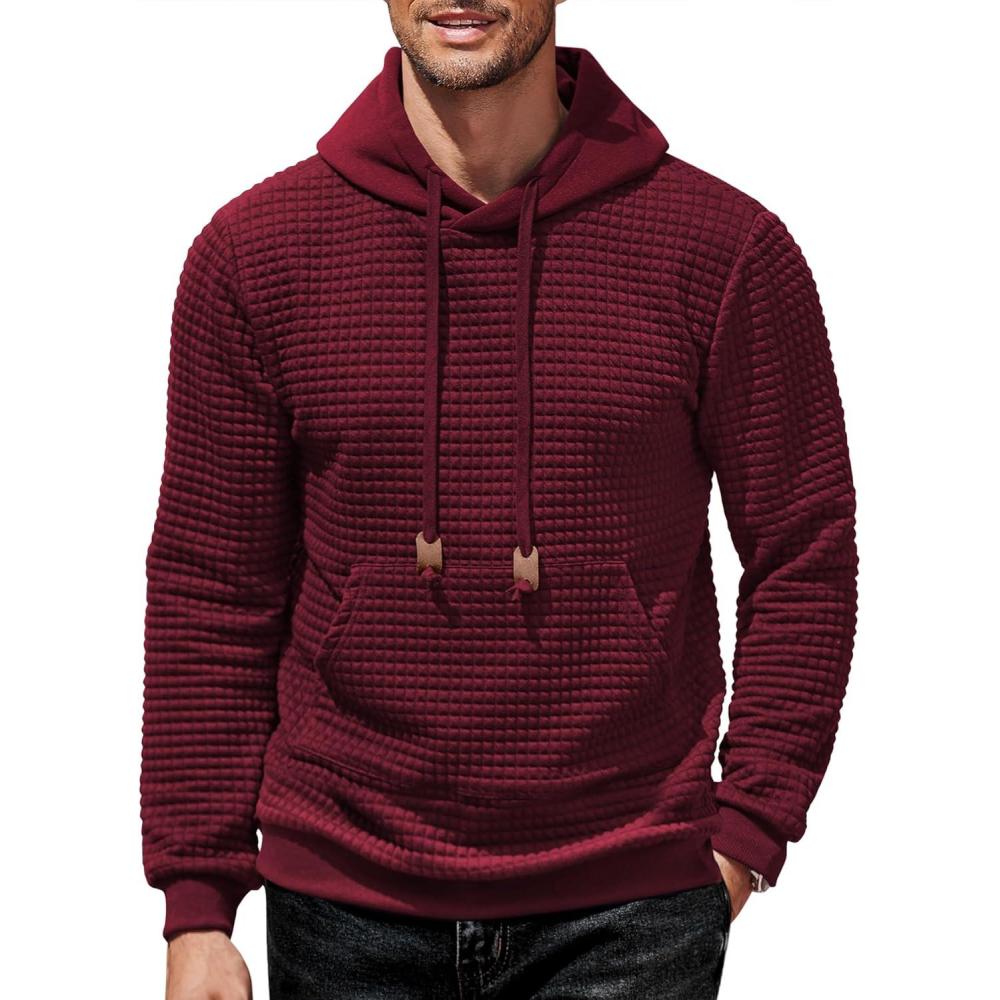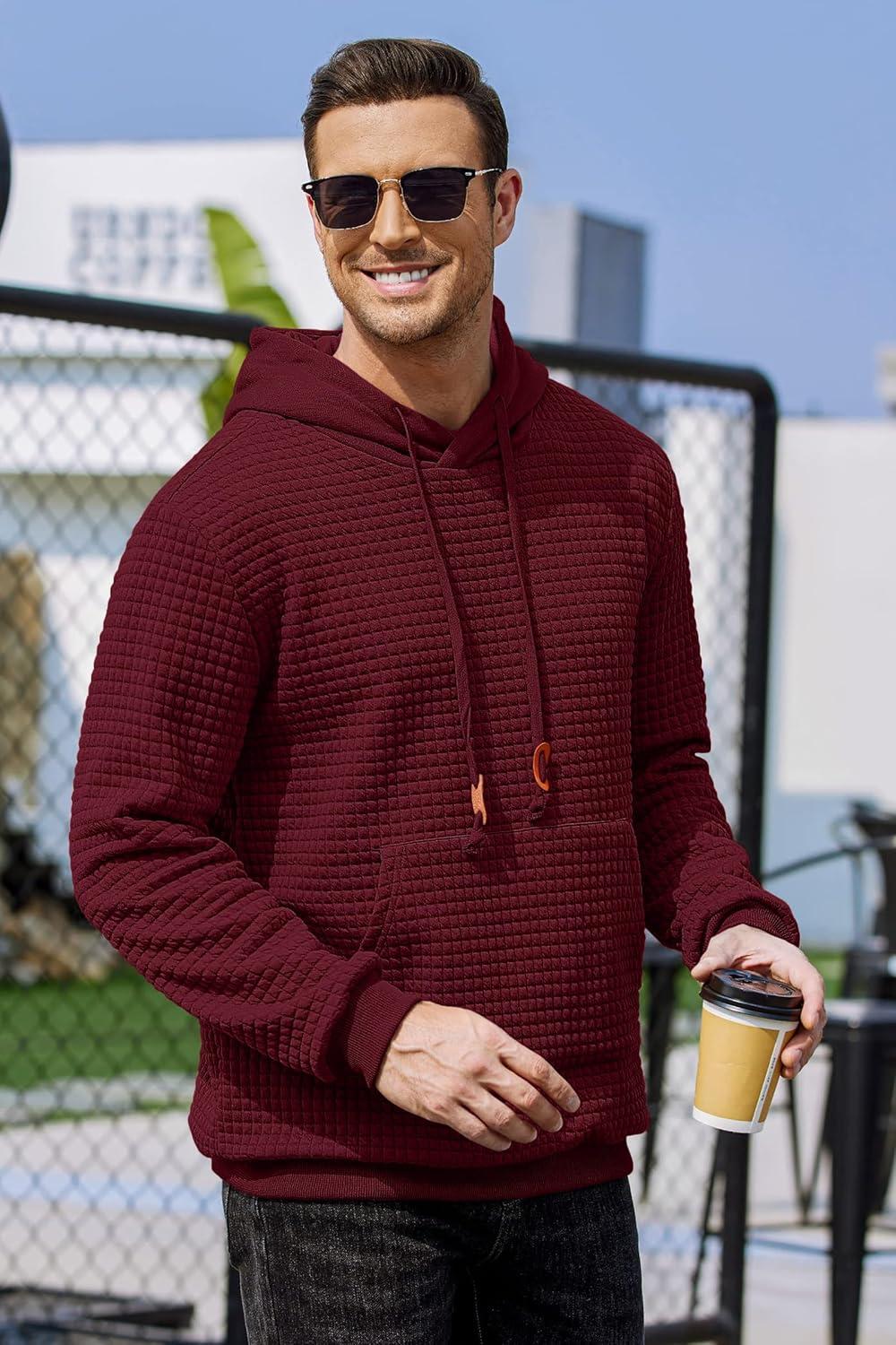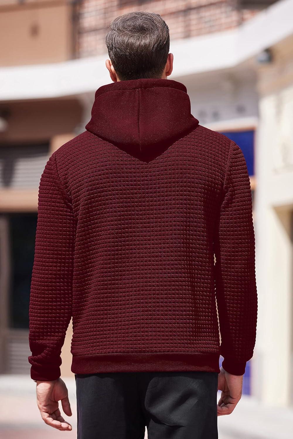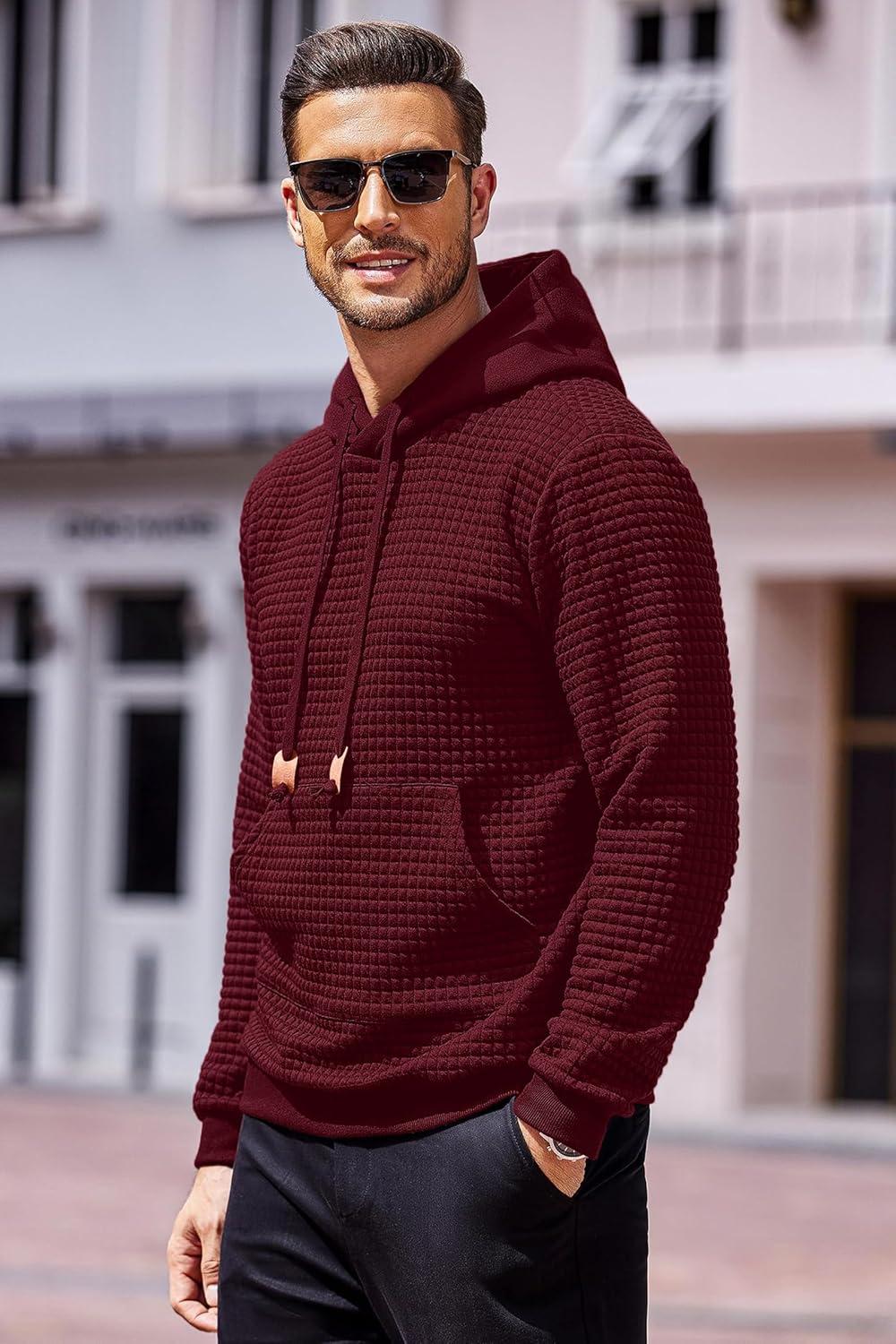 COOFANDY Mens Hoodies Sweatshirts Long Sleeve Fashion Waffle Knit Pullover Hoodie with Pocket(Wine Red)