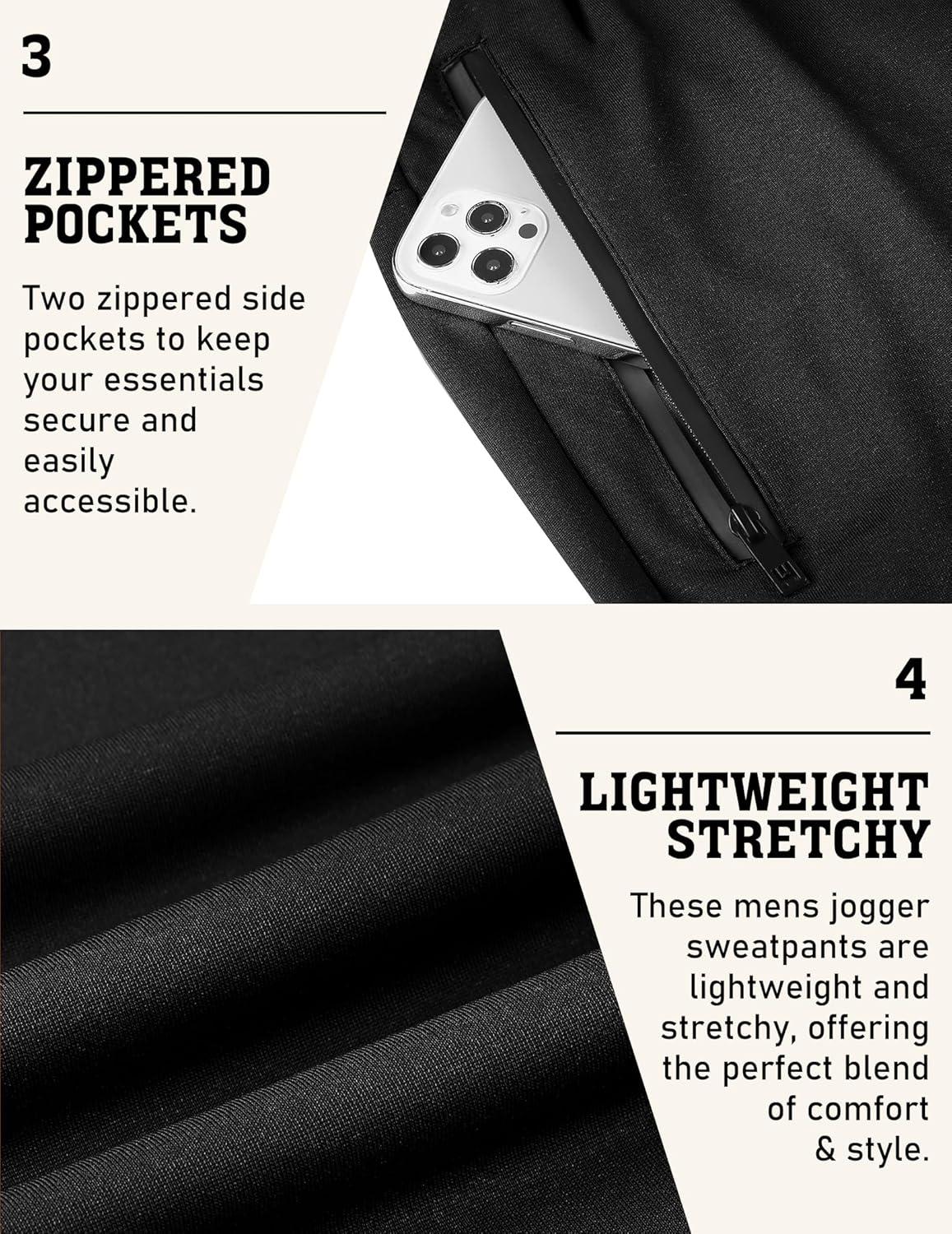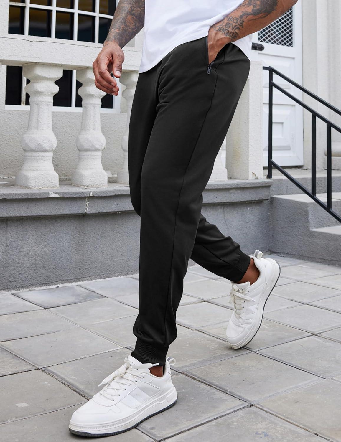 COOFANDY Men's Joggers Drawstring Jogger Sweatpants with Zipper Pockets Lightweight Slim Fit Athletic Track Pants(Black)