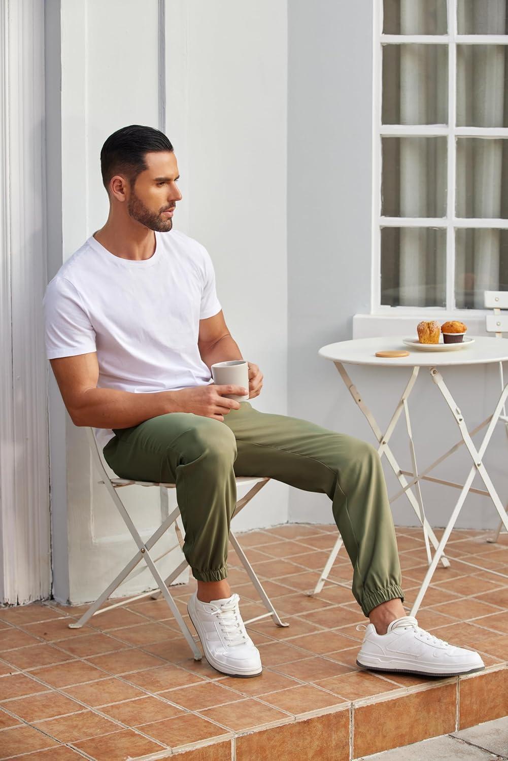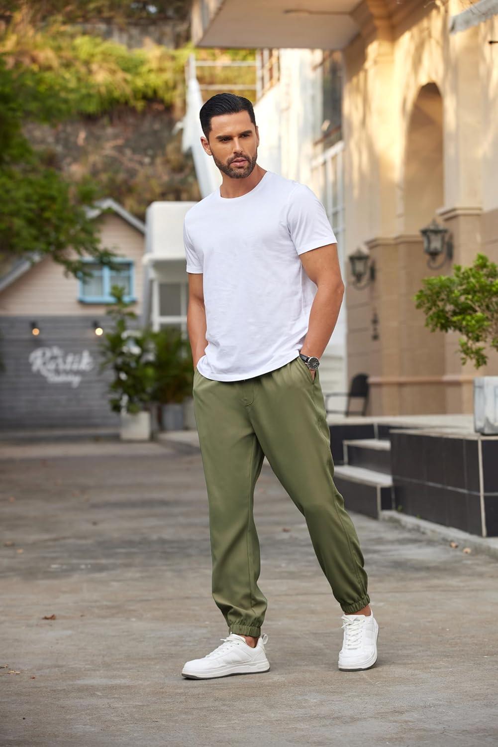 COOFANDY Mens Joggers Pants Regular Fit Casual Pants Lightweight Elastic Waistband Pants with Pockets(Army Green)